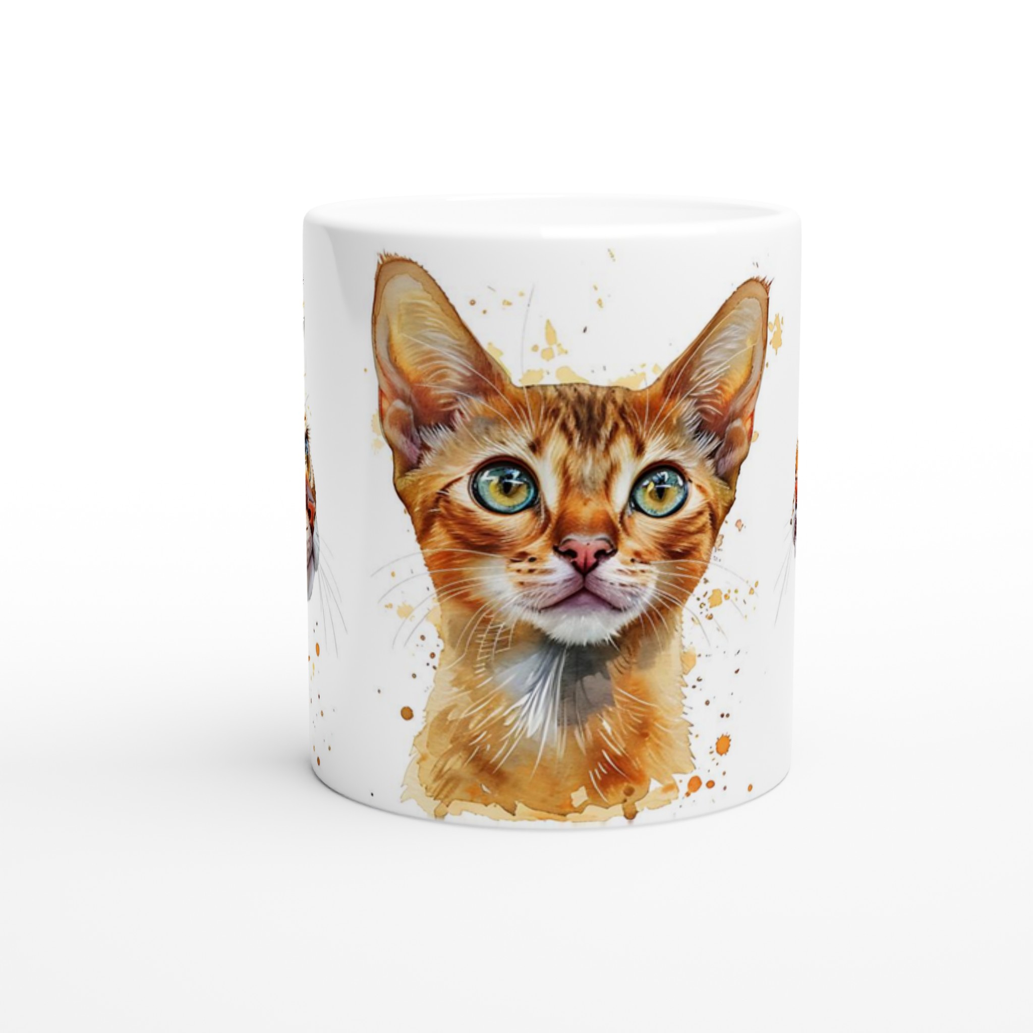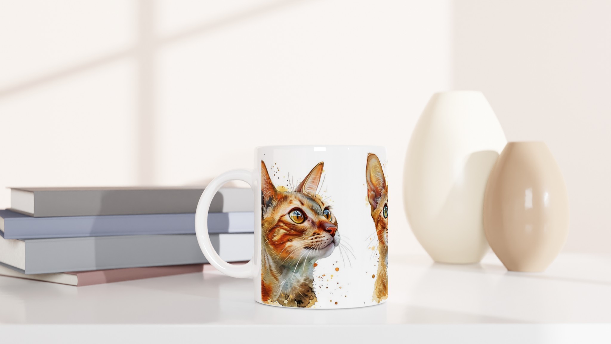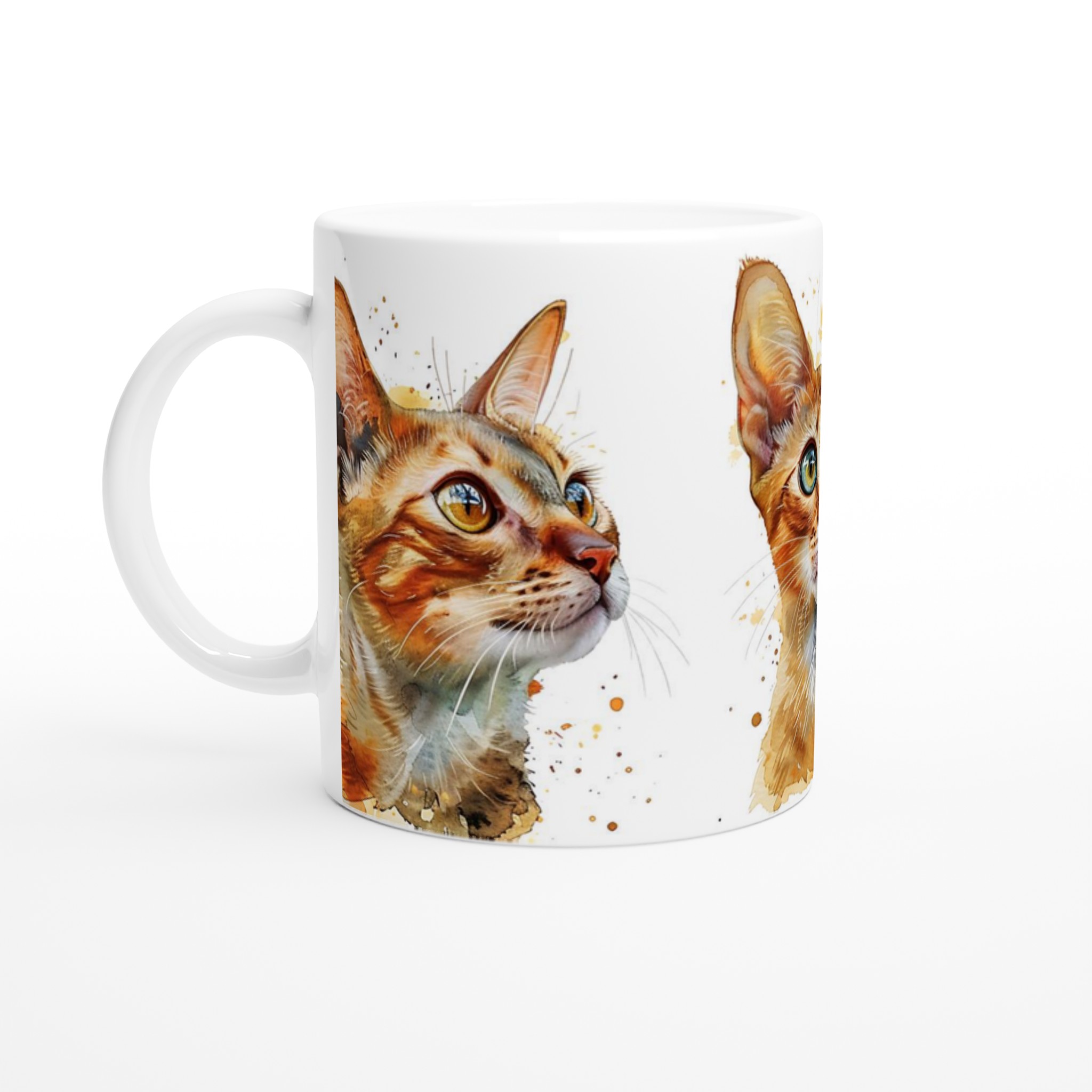 Den här stilrena keramiska muggen blir snabbt en vardagsfavorit. Perfekt för morgonkaffet, kvällens varma choklad eller när du bara vill njuta av en kopp te. Med sitt unika och charmiga akvarellmotiv av tre nyfikna katter i varma toner, kompletterat med lekfulla stänk, ger denna mugg en konstnärlig och personlig touch till din dryckesstund. De livfulla kattporträtten fångar essensen av våra älskade husdjur med en konstnärlig finess som förgyller varje sip.