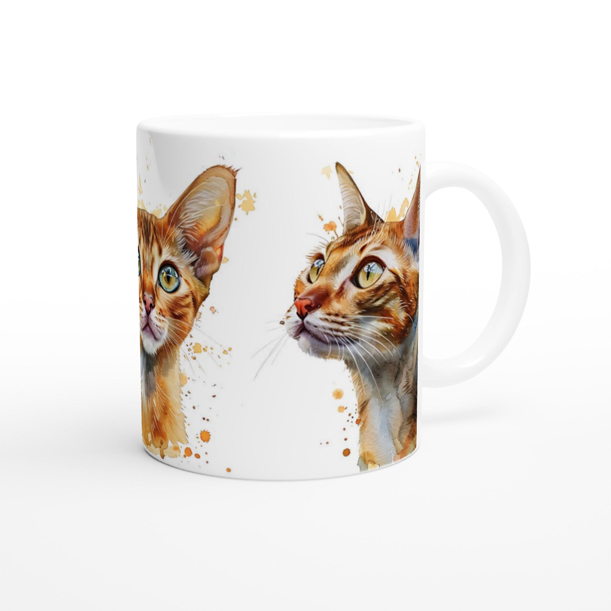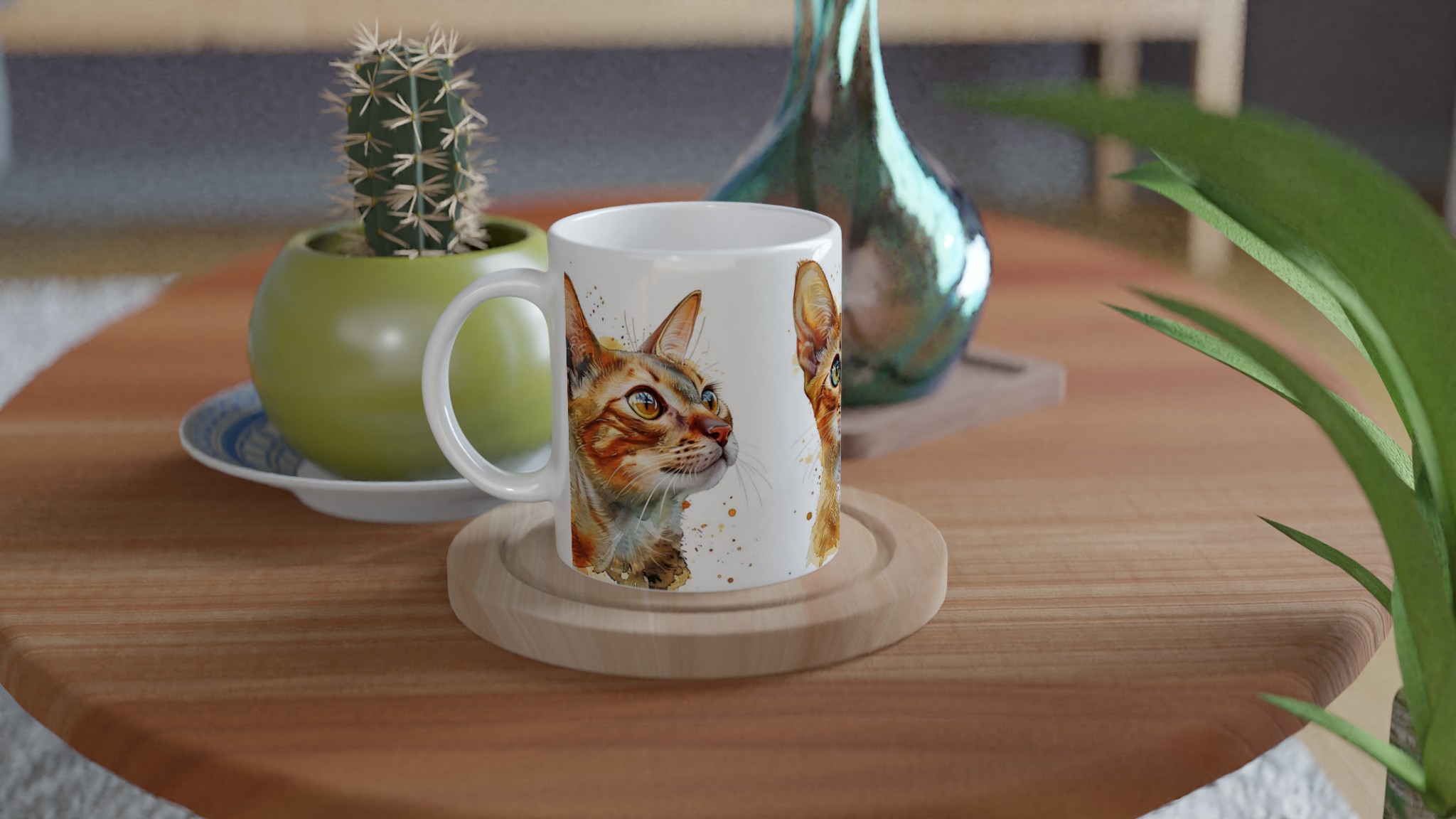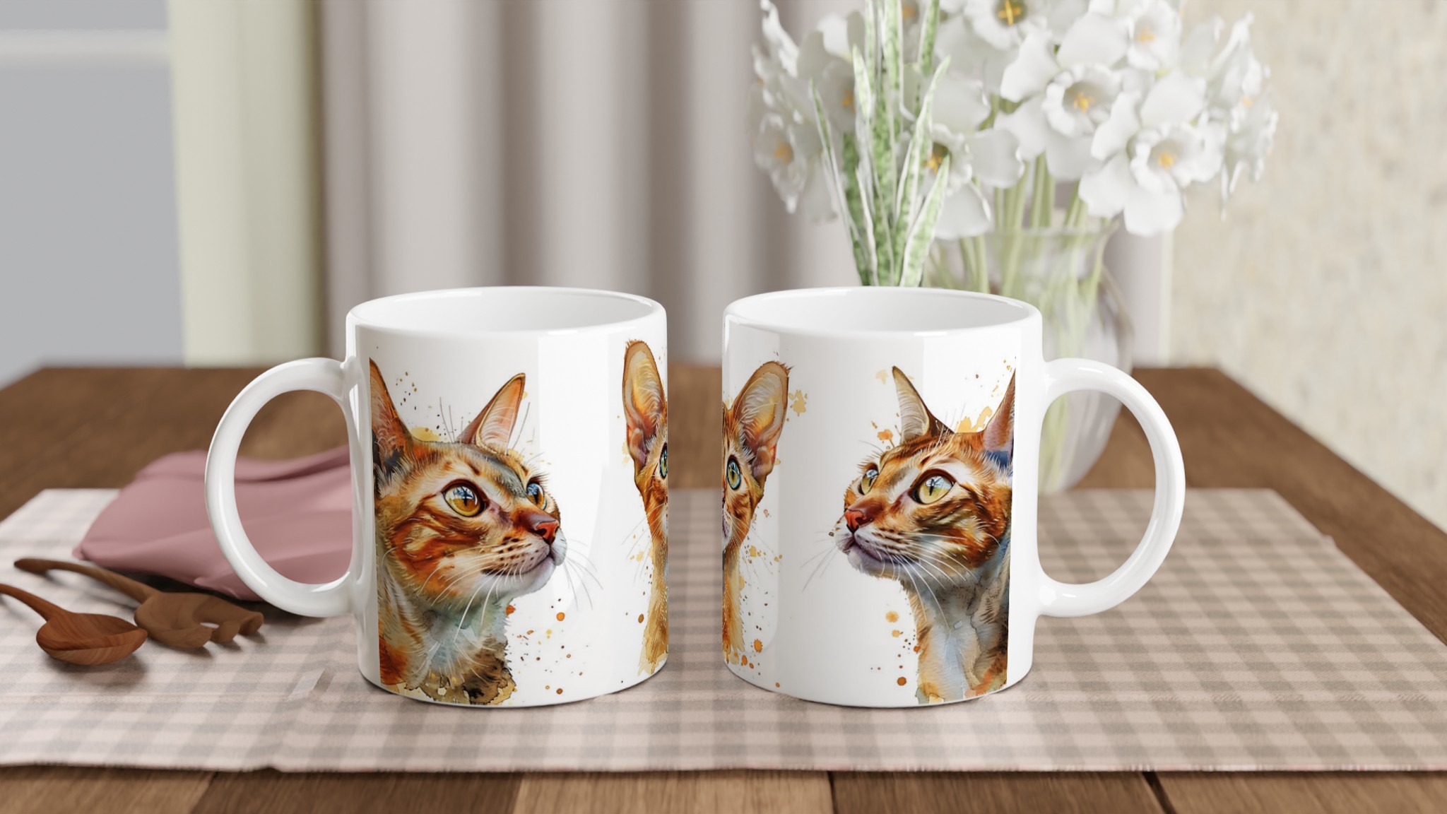 Den här stilrena keramiska muggen blir snabbt en vardagsfavorit. Perfekt för morgonkaffet, kvällens varma choklad eller när du bara vill njuta av en kopp te. Med sitt unika och charmiga akvarellmotiv av tre nyfikna katter i varma toner, kompletterat med lekfulla stänk, ger denna mugg en konstnärlig och personlig touch till din dryckesstund. De livfulla kattporträtten fångar essensen av våra älskade husdjur med en konstnärlig finess som förgyller varje sip.