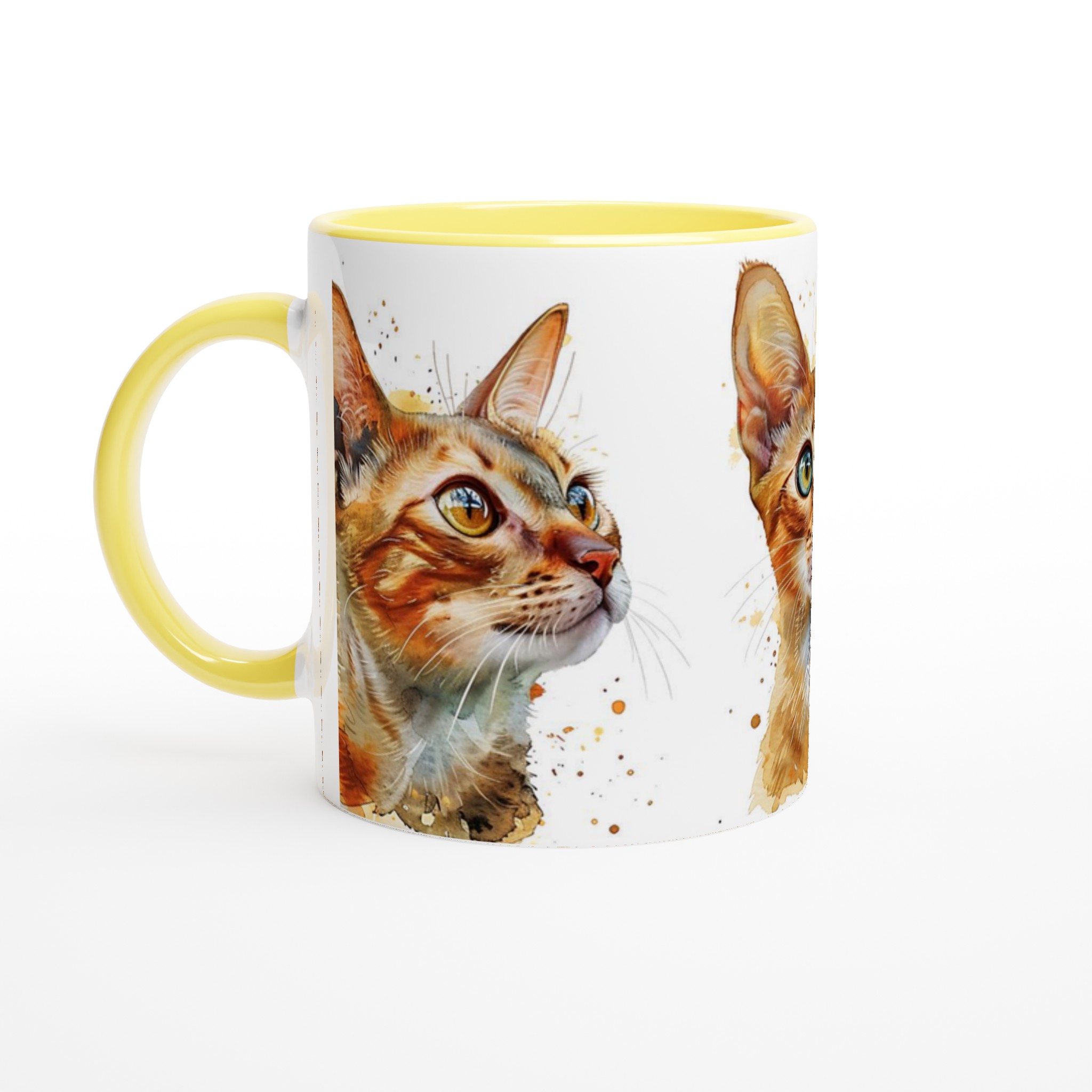 Välj din favoritfärg för muggen för att ytterligare matcha din stil eller personlighet. Vi erbjuder en palett av sju attraktiva färger: Ceramic White, Ceramic Yellow, Ceramic Pink, Ceramic Green, Ceramic Red, Ceramic Black, eller Ceramic Blue. Hitta den perfekta nyansen som kompletterar det bedårande kattmotivet och gör din mugg helt unik!