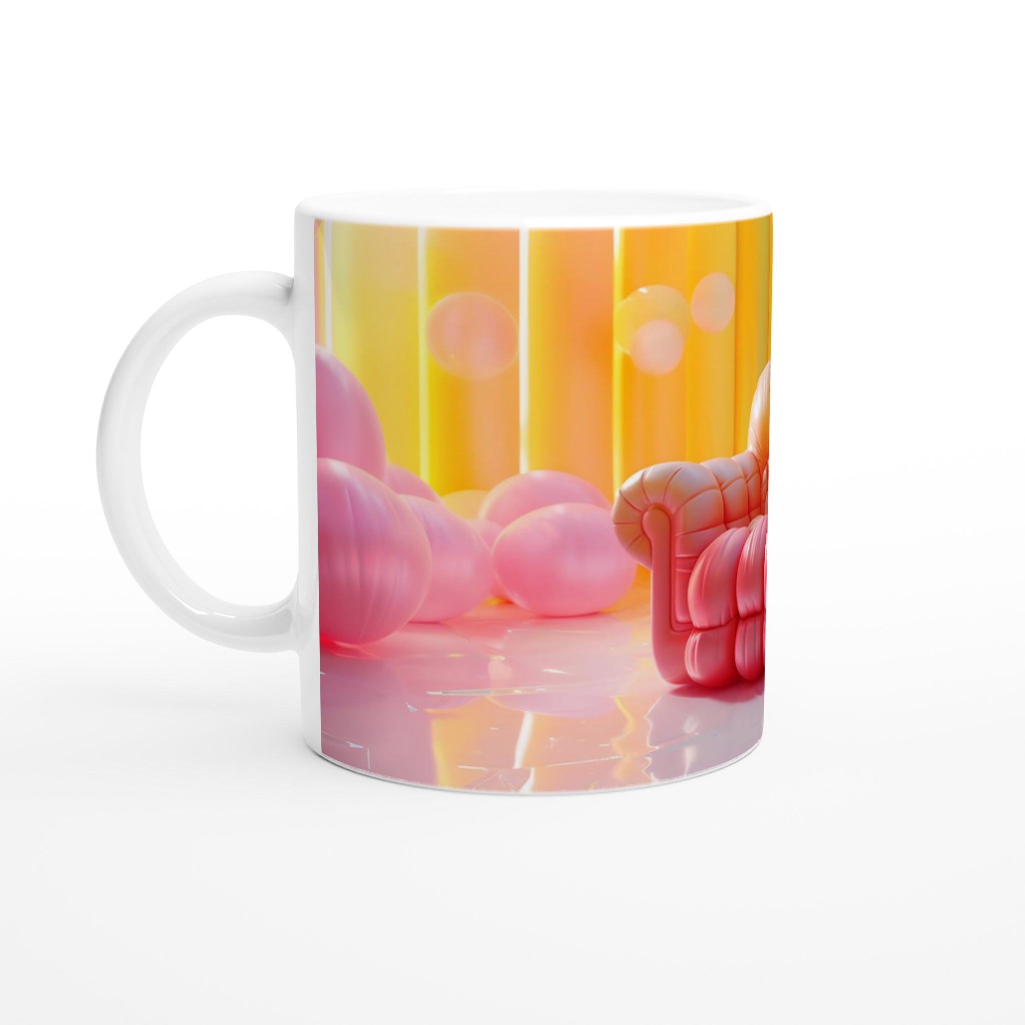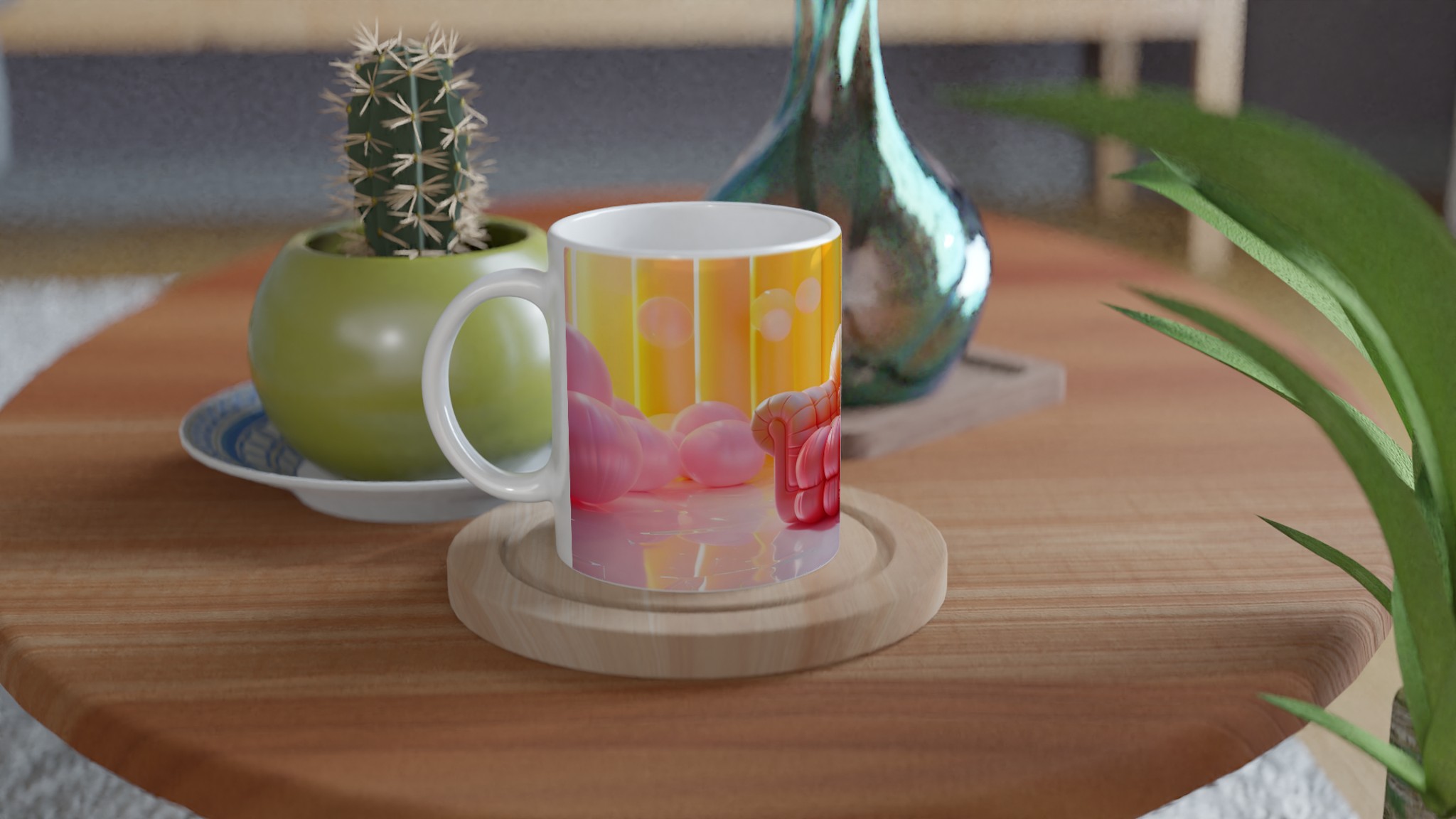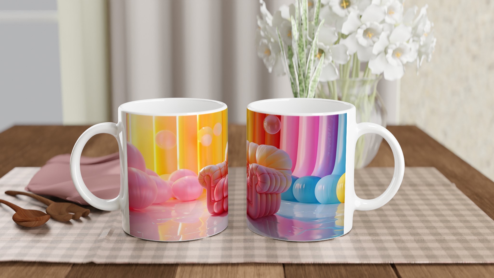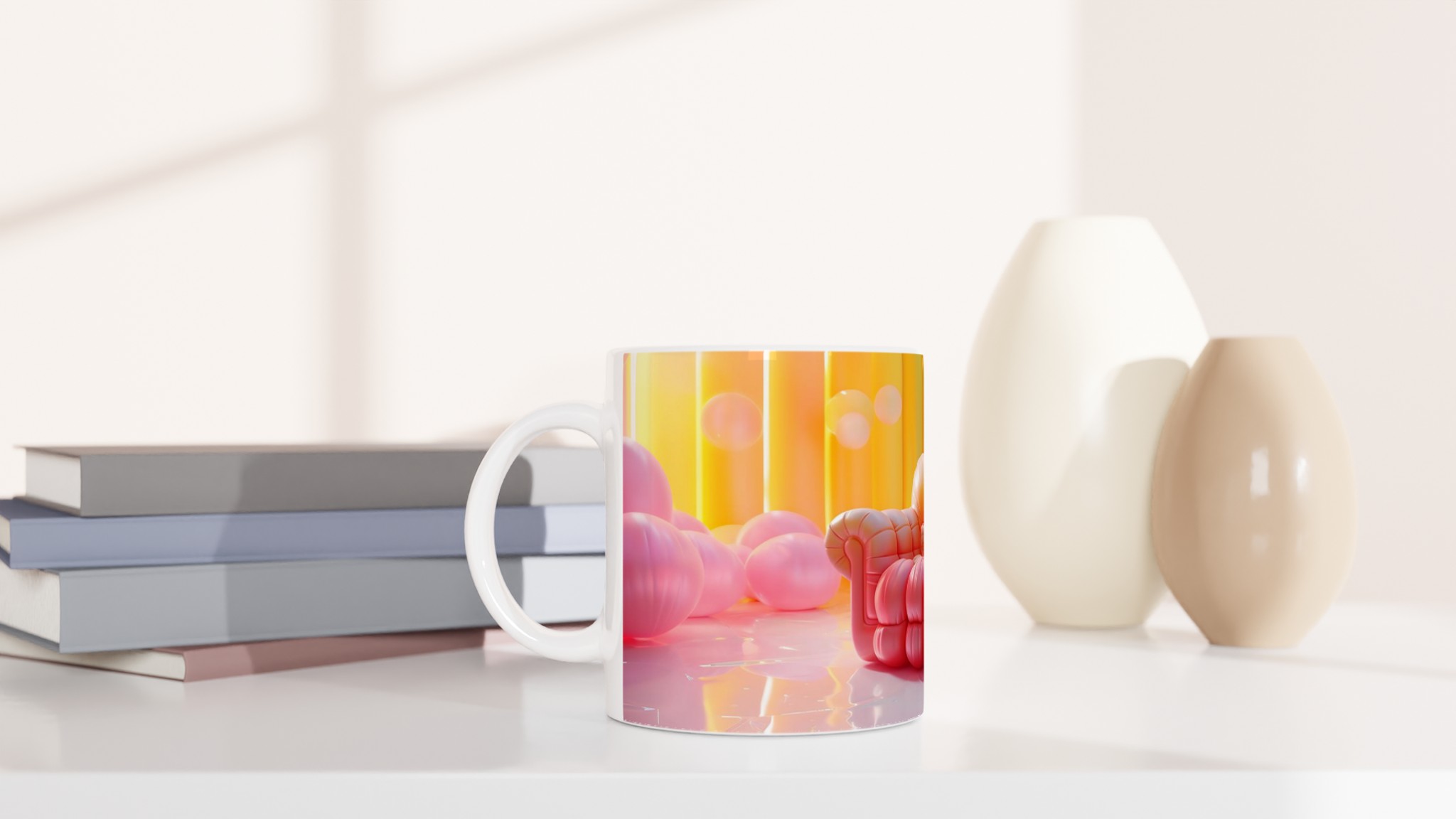 Den här stilrena keramiska muggen blir snabbt en vardagsfavorit. Perfekt för morgonkaffet, kvällens varma choklad eller när du bara vill njuta av en kopp te. Inspirerad av en värld av mjuka pasteller och lekfulla former, framhäver den blanka ytan trycken med klara och levande färger. Dessa håller sig fina även efter många turer i mikron och diskmaskinen, vilket gör varje klunk till en liten glädjestund.