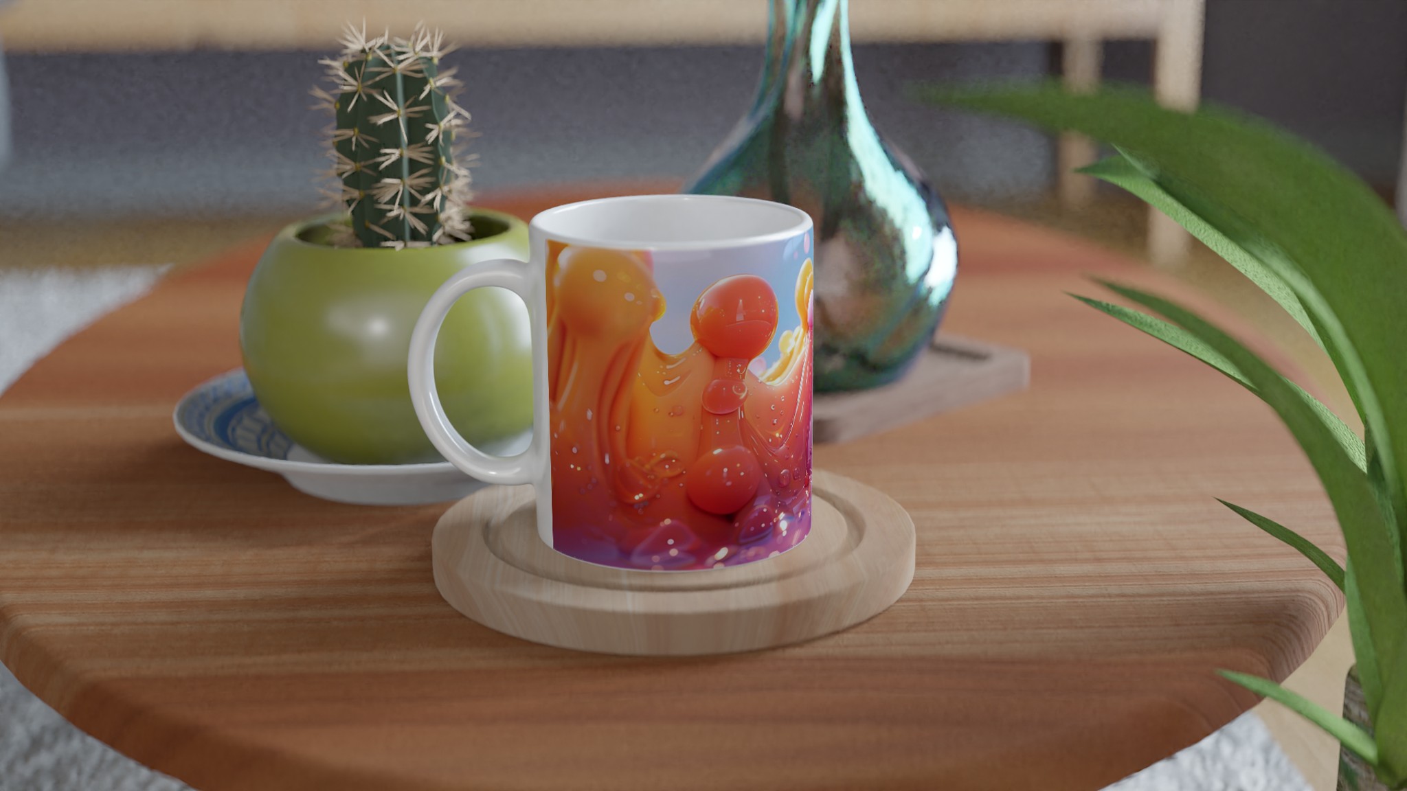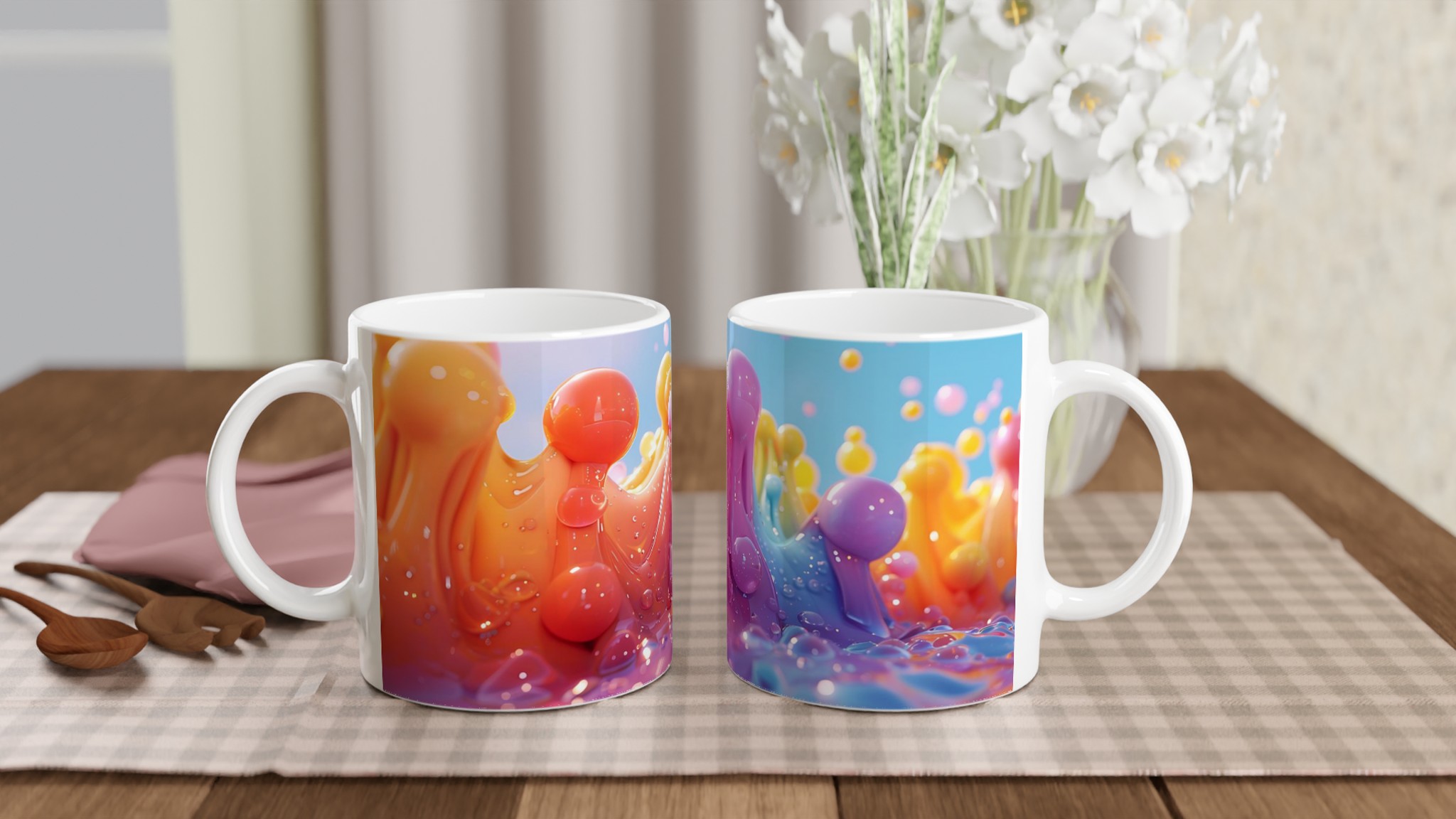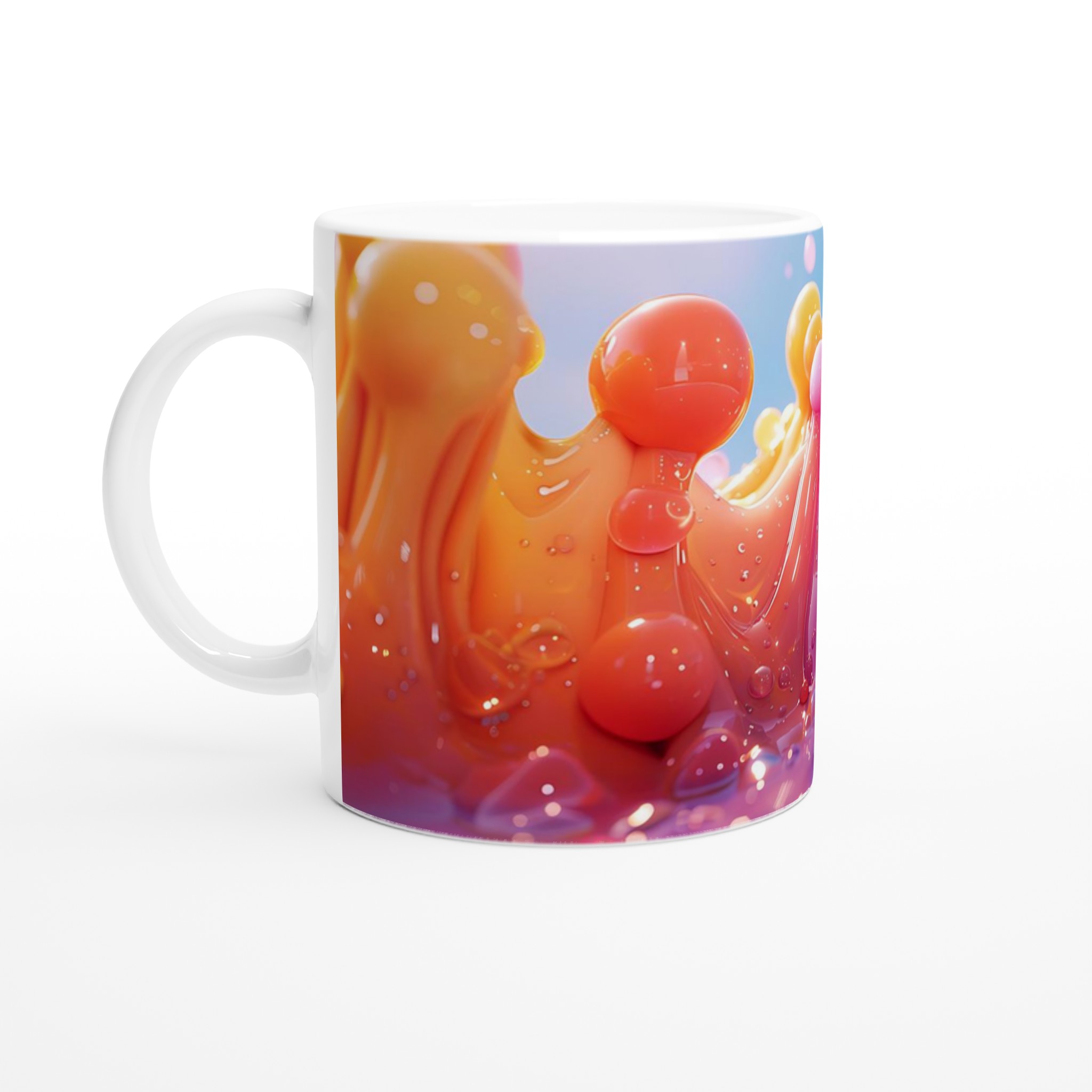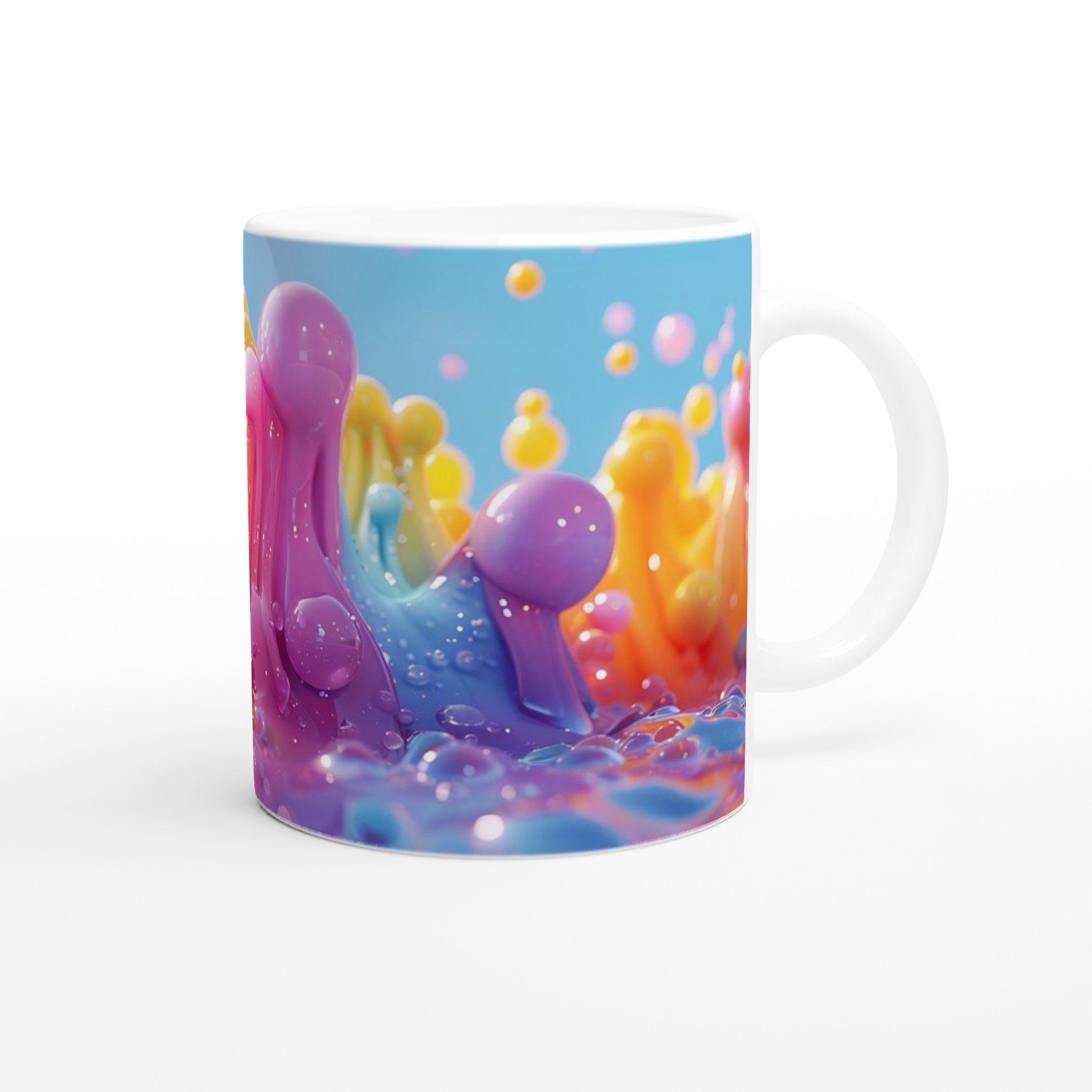 Lyft din fikastund till nya höjder med vår stilrena keramiska mugg, inspirerad av glädjen i levande färger! Denna mugg blir snabbt en favorit, perfekt för morgonkaffet, kvällens varma choklad eller när du bara vill njuta av en kopp te. Den blanka ytan får trycken att framhävas med klara och levande färger, som håller sig fina även efter många turer i mikron och diskmaskinen. En explosion av färg och form för din vardag!