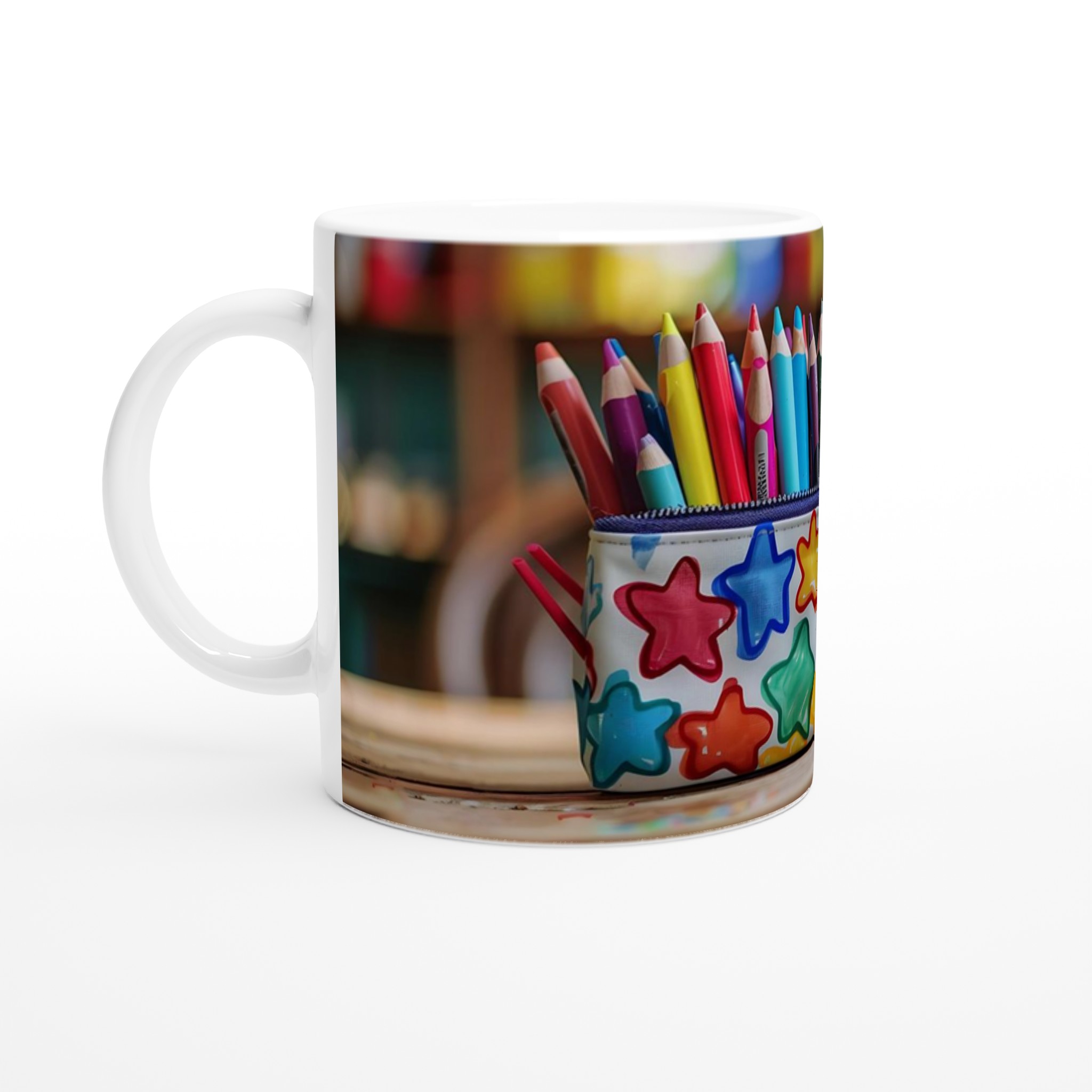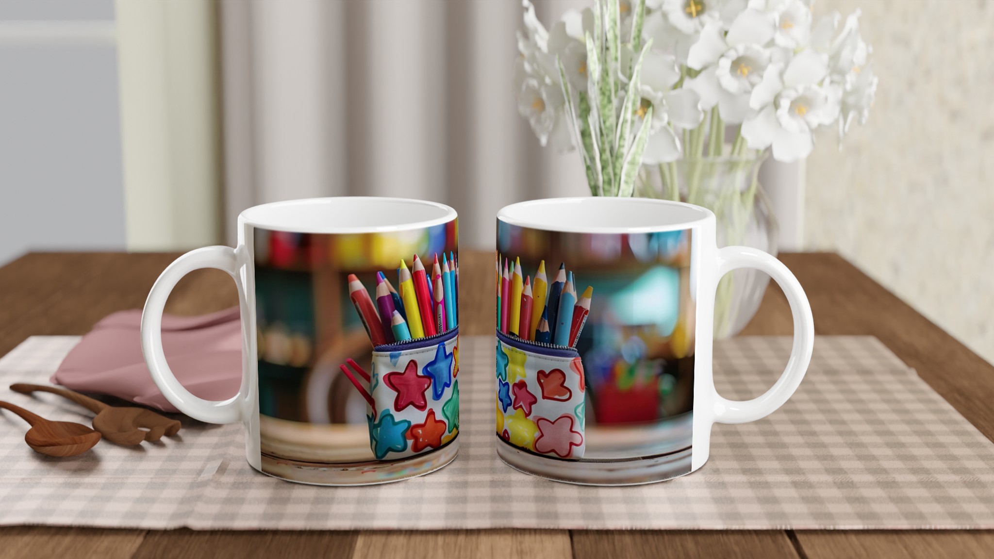 Lys upp din dag med vår Keramiska Mugg, en sann vardagsfavorit som kombinerar funktion med lekfull design. Den här stilrena keramiska muggen, prydd med ett charmigt mönster av färgglada stjärnor, blir snabbt en favorit i ditt kök. Perfekt för morgonkaffet, kvällens varma choklad, eller när du bara vill njuta av en kopp te – den är designad för att sprida glädje med varje klunk. Den blanka vita ytan gör att trycken framhävs med klara och levande färger, som håller sig fina även efter många turer i mikron och diskmaskinen.