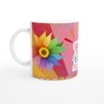 Lyft din fikastund med denna livfulla keramiska mugg, dekorerad med ett härligt motiv som sprudlar av regnbågsglädje och färg. Denna mugg blir snabbt en favorit för allt från morgonkaffet till kvällens mysiga te, och sprider glädje med sina klara, levande färger inspirerade av en lekfull cupcake och färgglada rosor.