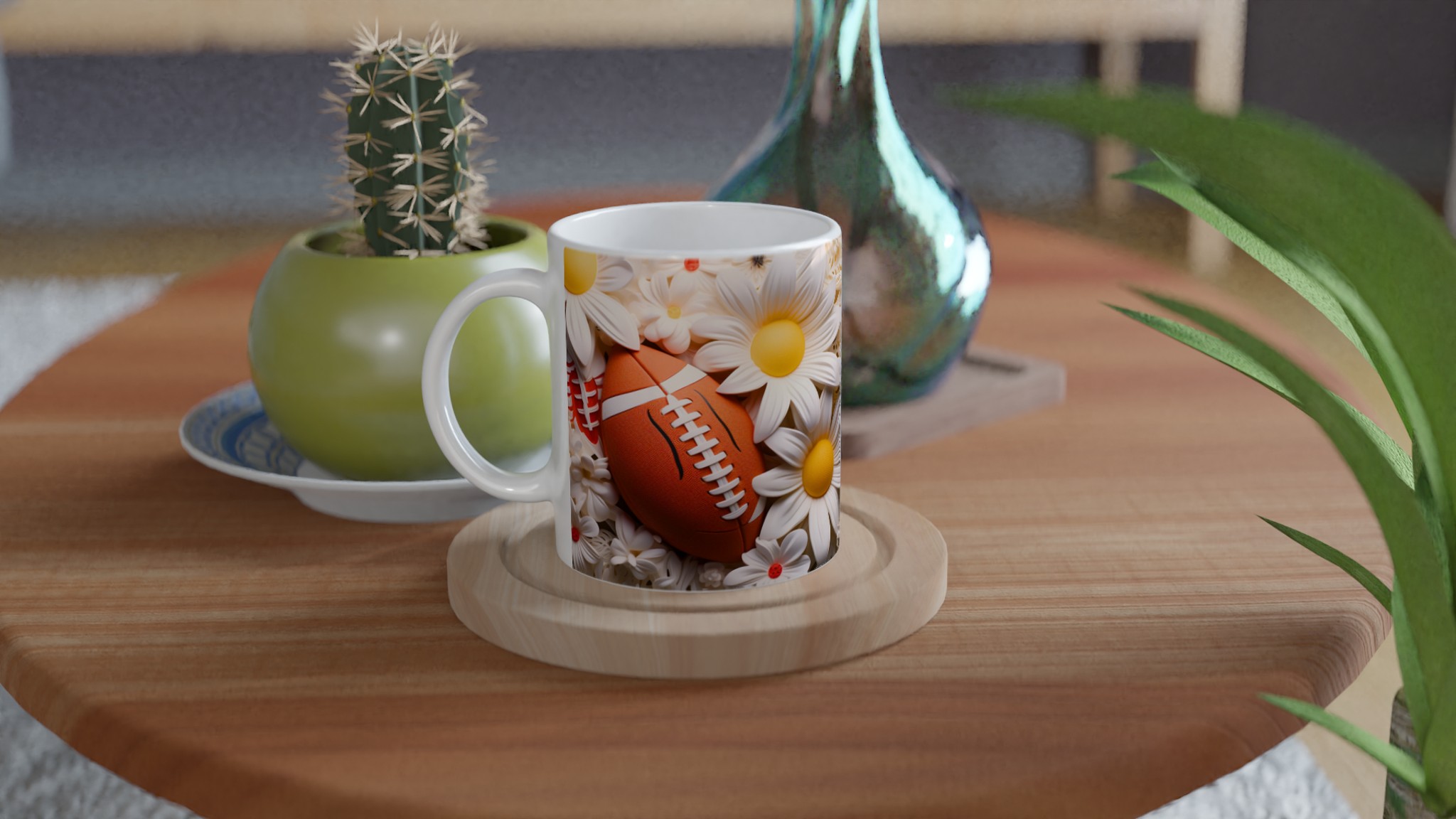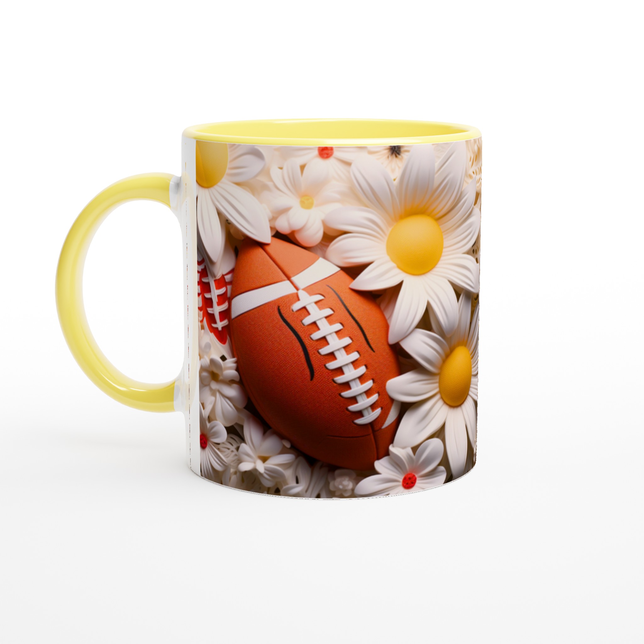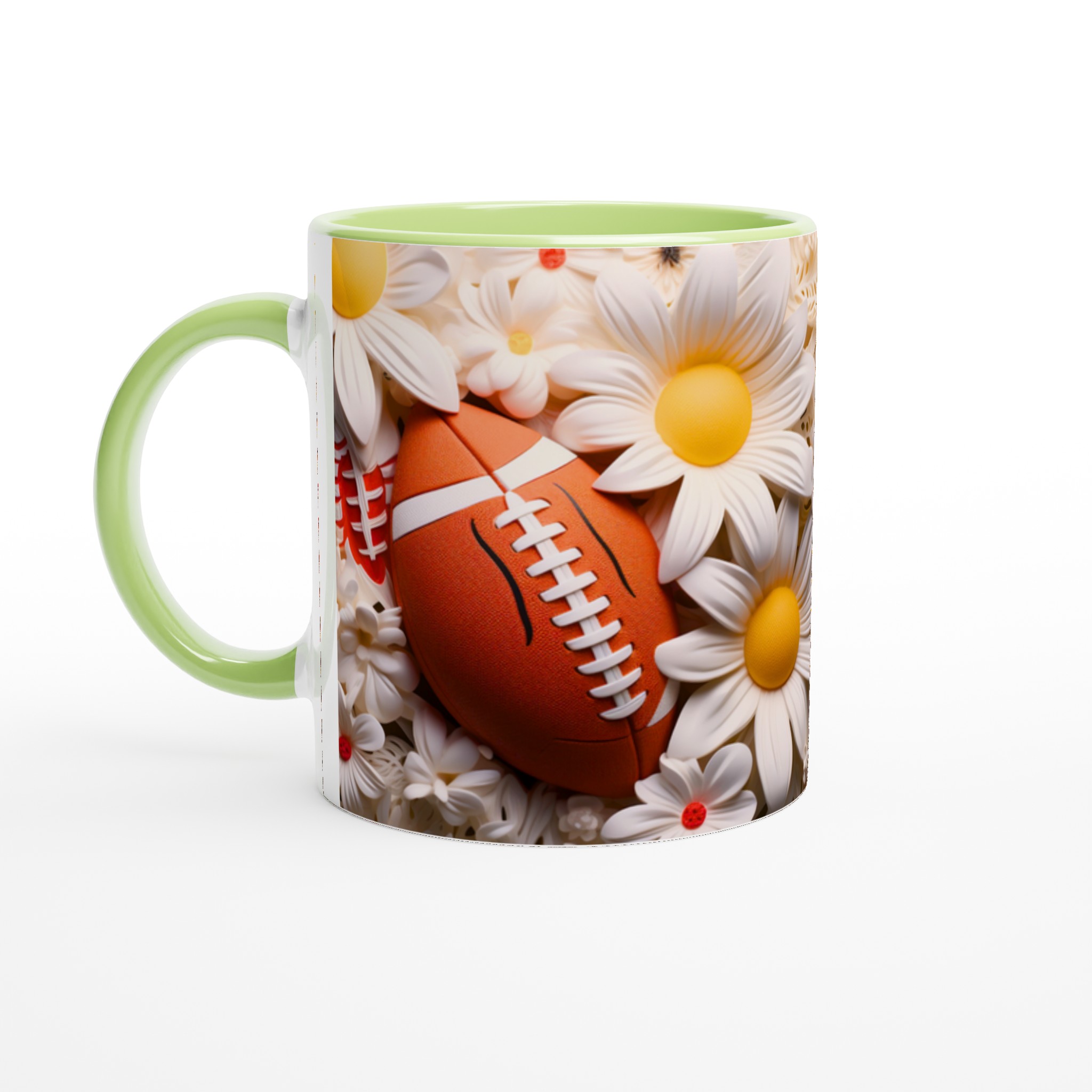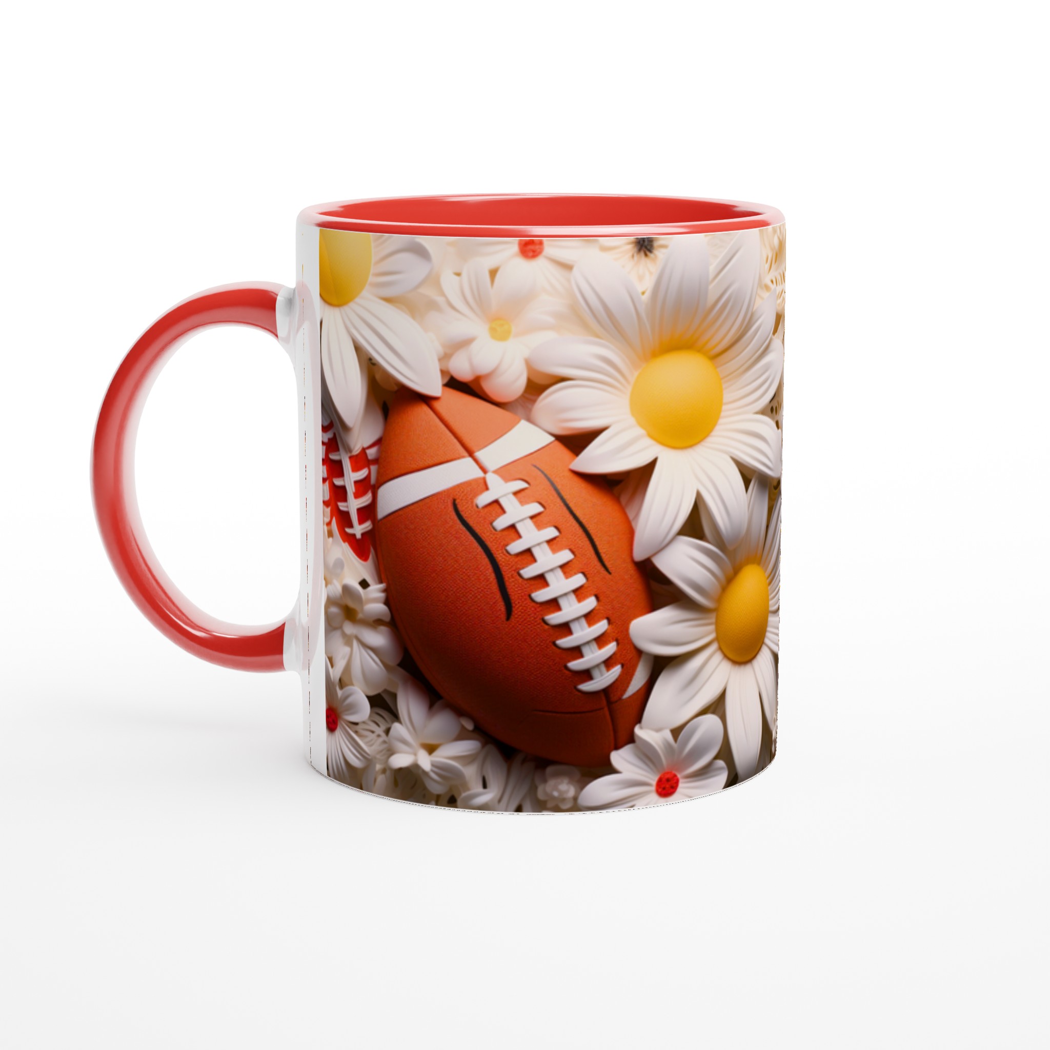 Den här stilrena keramiska muggen blir snabbt en vardagsfavorit, perfekt för dig som uppskattar en lekfull och sportig estetik. Med sin unika design som kombinerar charmiga blomdetaljer med en amerikansk fotboll, ger den varje fika en oväntad och glad känsla. Perfekt för morgonkaffet, kvällens varma choklad eller när du bara vill njuta av en kopp te. Den blanka vita ytan gör att trycken framhävs med klara och levande färger, som håller sig fina även efter många turer i mikron och diskmaskinen.