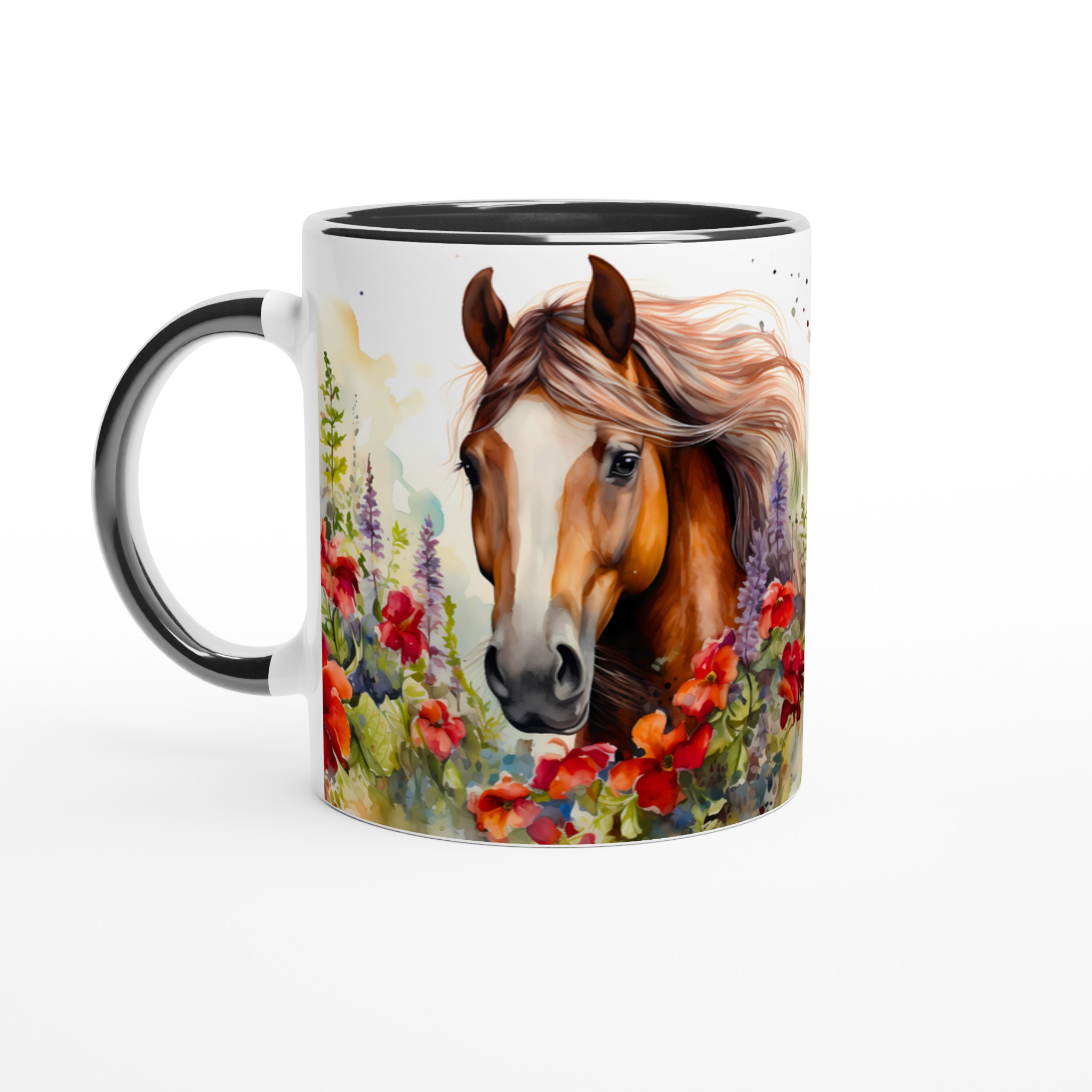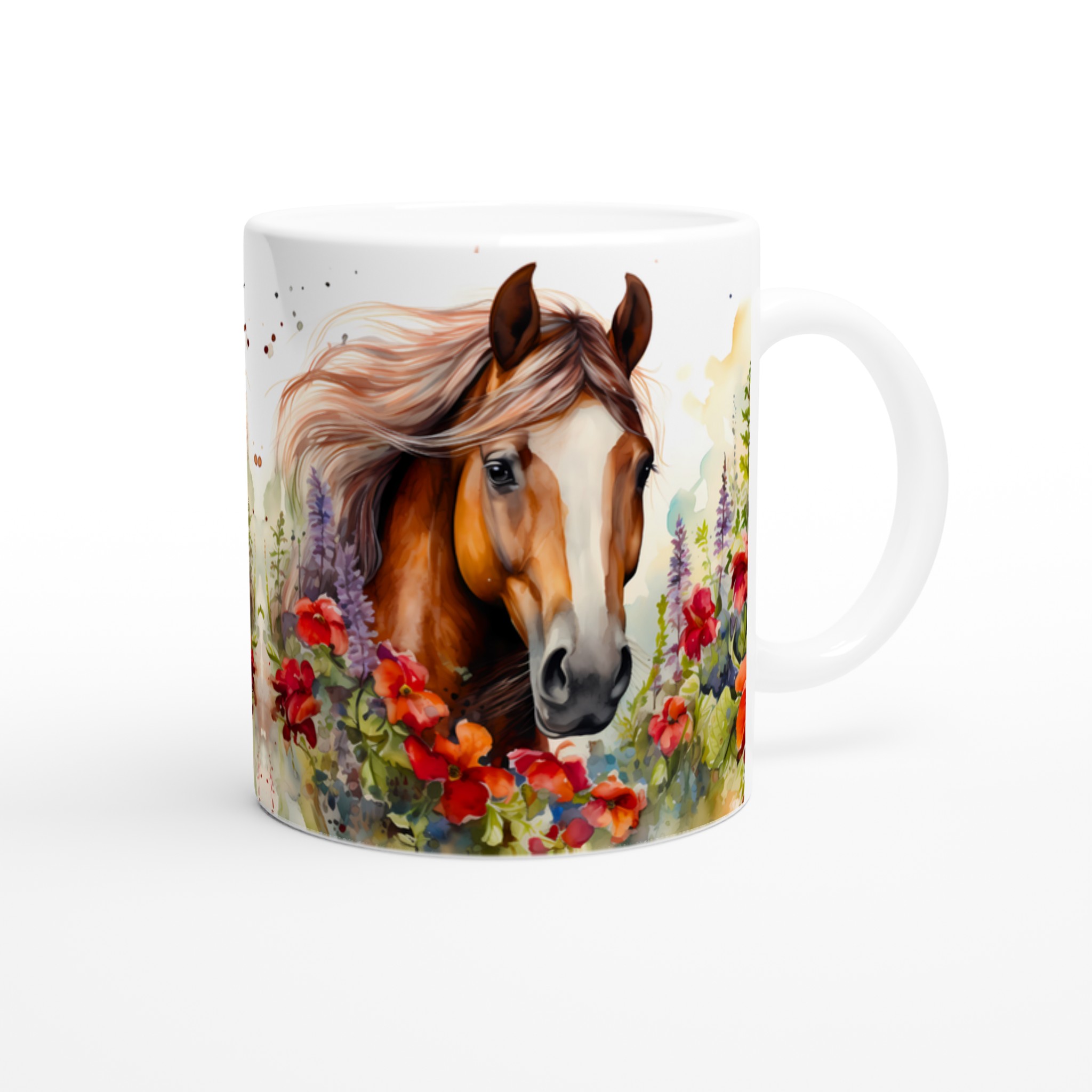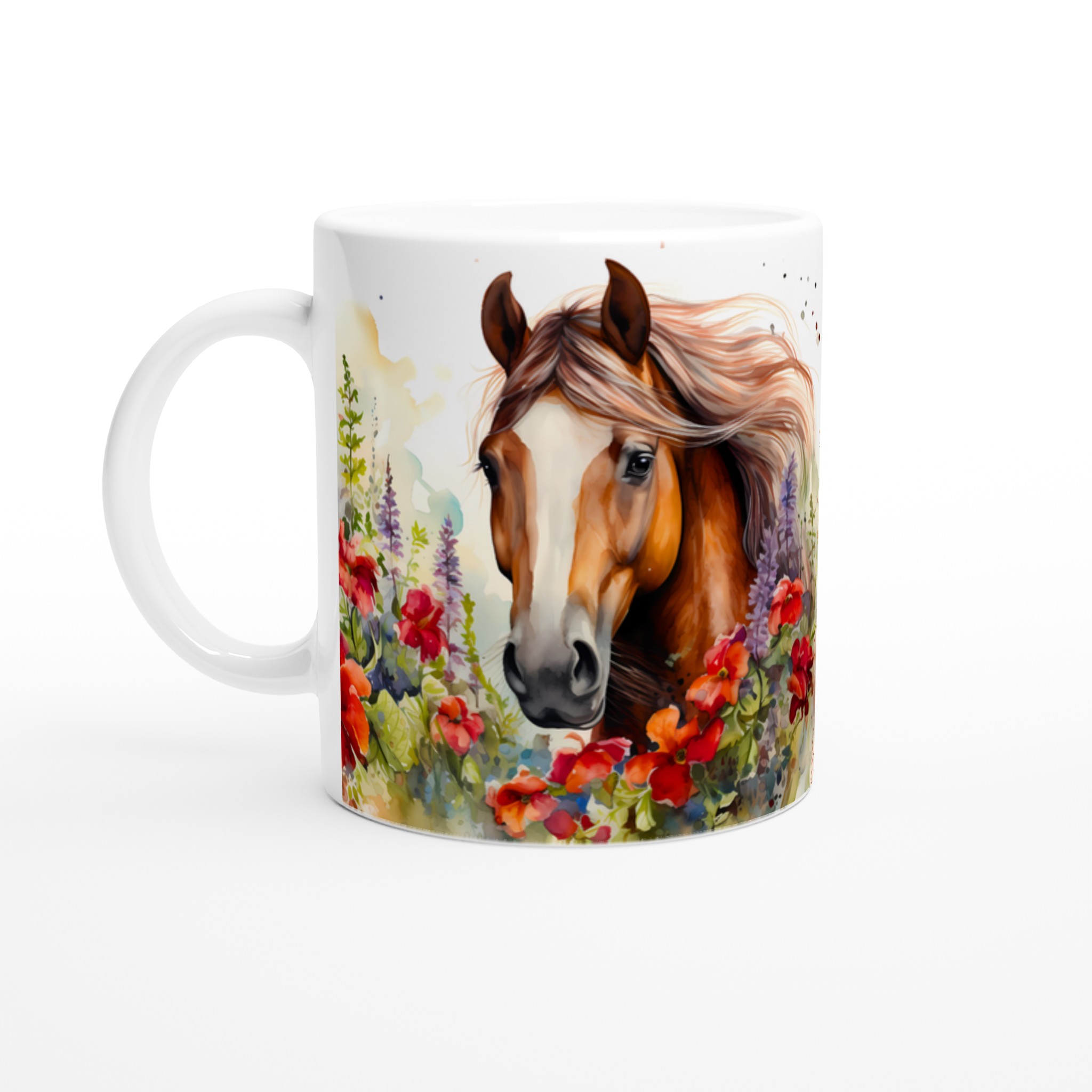 Fånga den fria andan med vår Keramiska Mugg ”Vild Häst i Blomsterprakt”. Denna mugg förvandlar varje paus till en stund av lugn och skönhet, med sin akvarellinspirerade design av majestätiska hästar omgivna av livfulla blommor. Det är den perfekta följeslagaren för morgonkaffet, kvällens avkopplande te, eller när du bara vill drömma dig bort till en blomstrande äng.