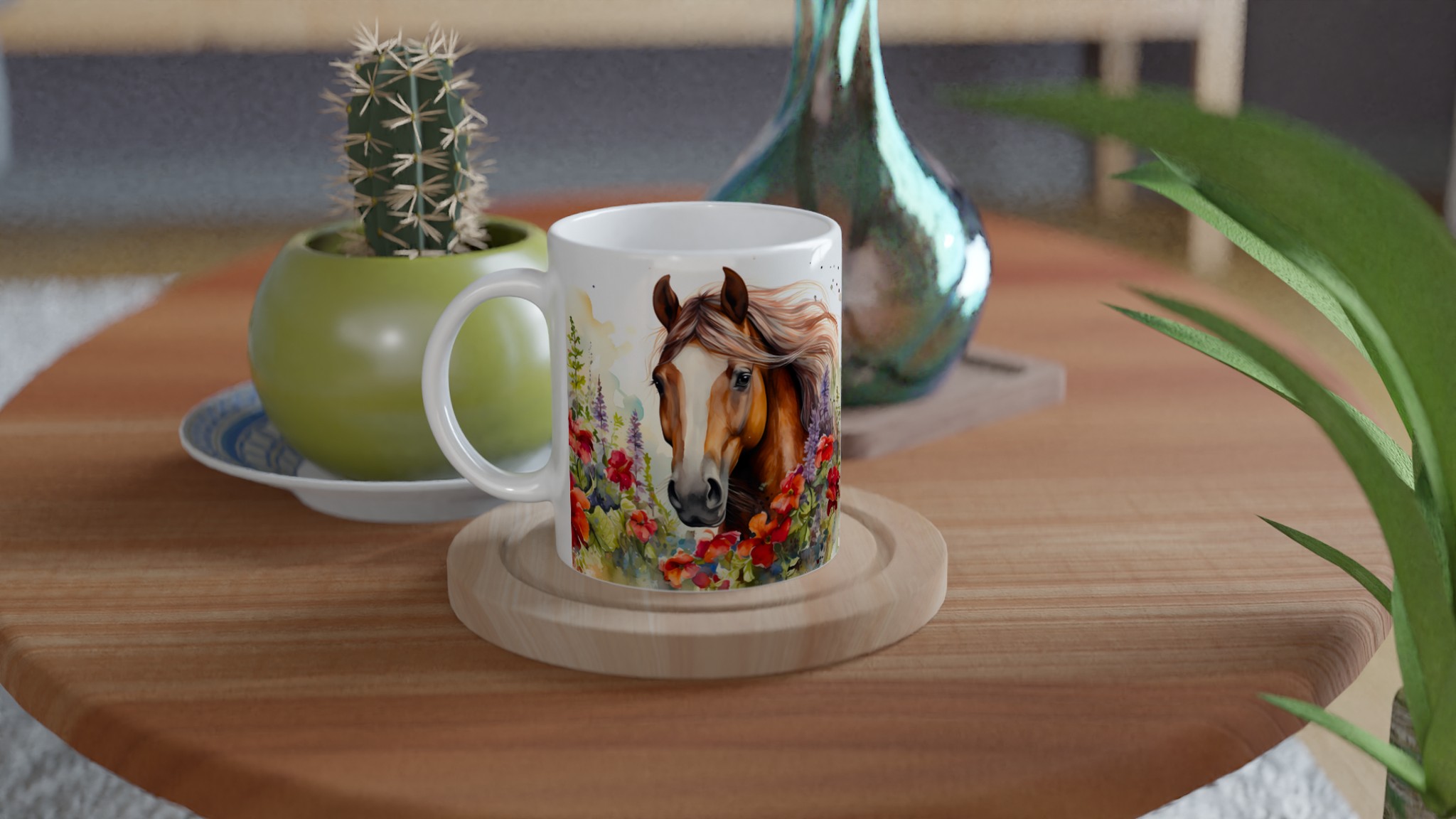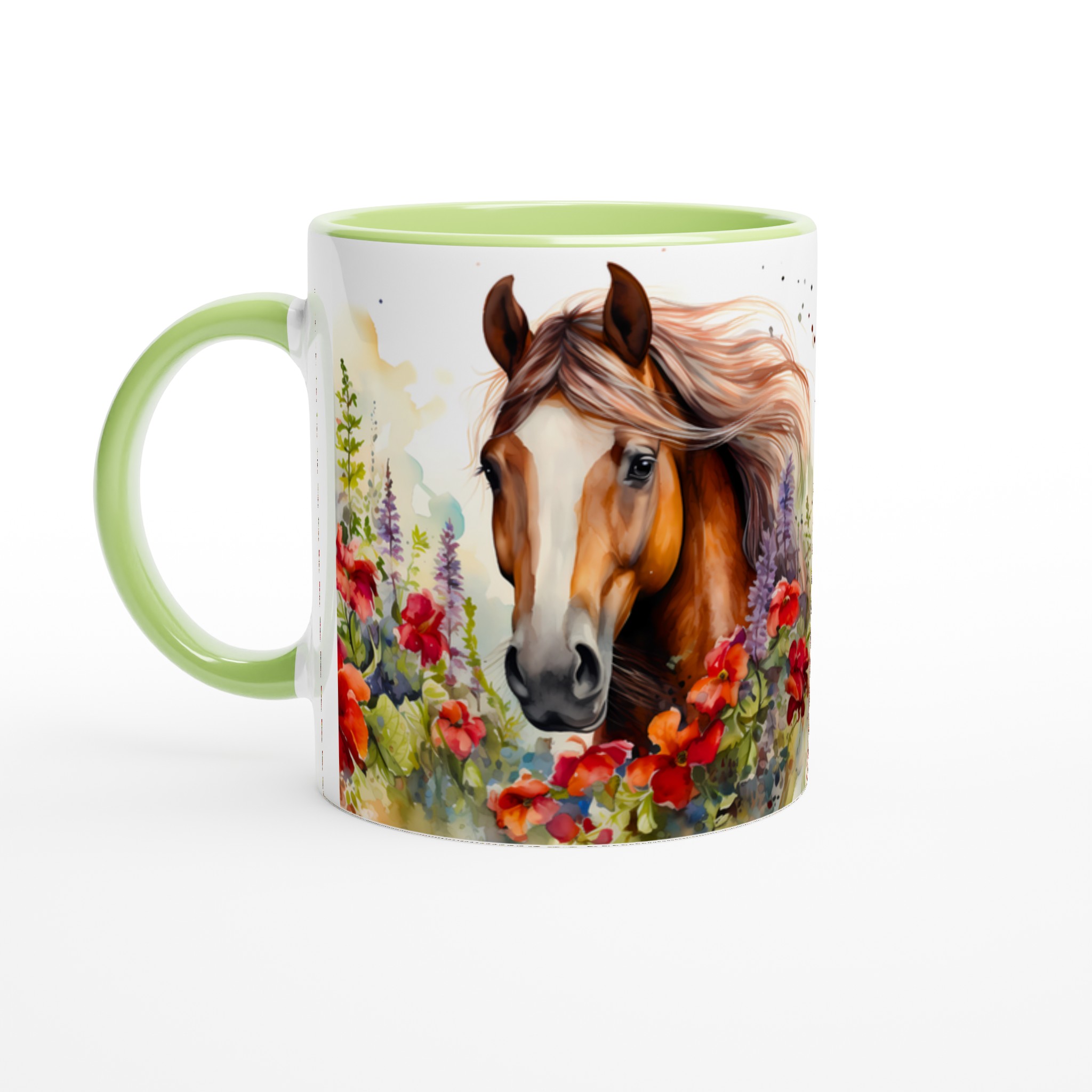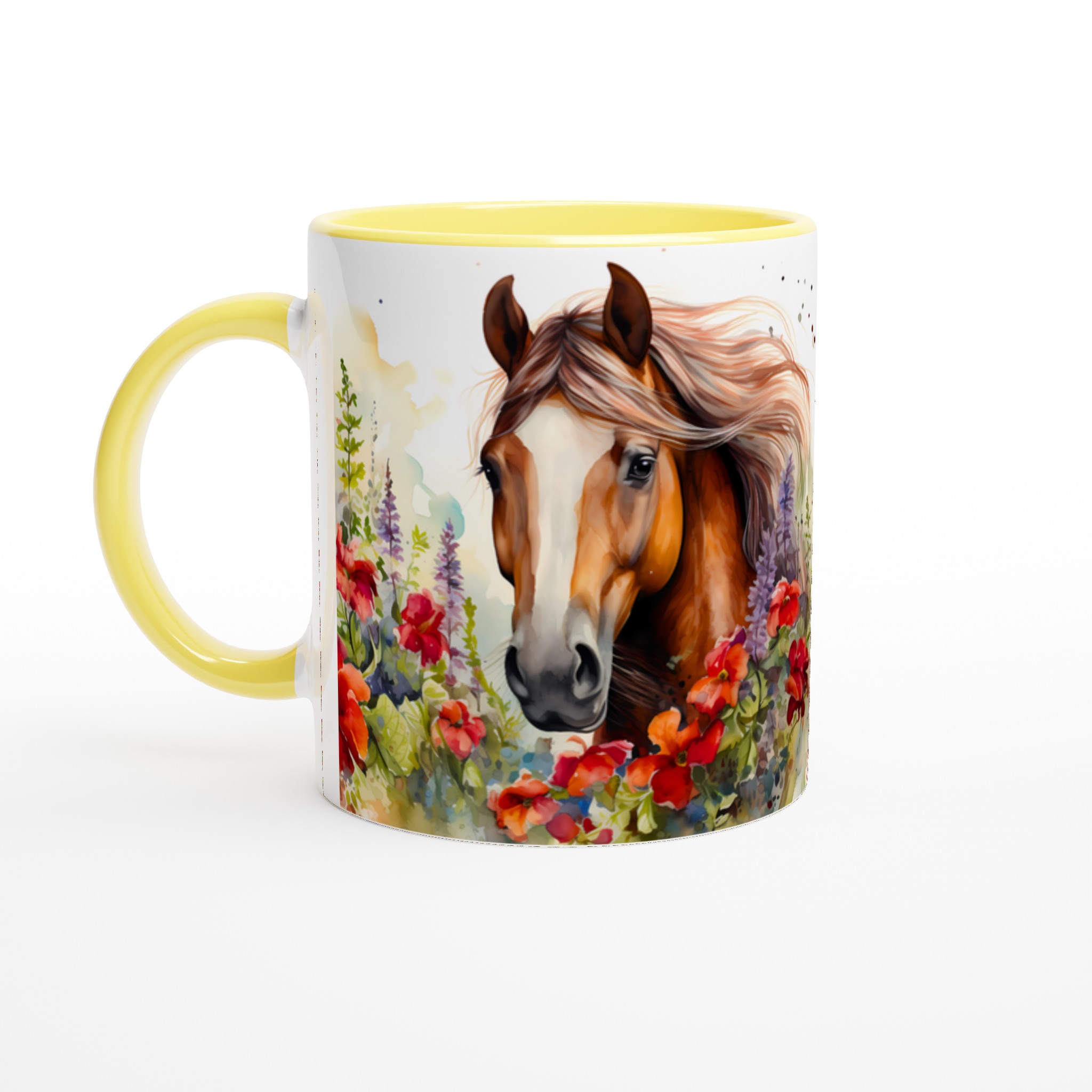 Fånga den fria andan med vår Keramiska Mugg ”Vild Häst i Blomsterprakt”. Denna mugg förvandlar varje paus till en stund av lugn och skönhet, med sin akvarellinspirerade design av majestätiska hästar omgivna av livfulla blommor. Det är den perfekta följeslagaren för morgonkaffet, kvällens avkopplande te, eller när du bara vill drömma dig bort till en blomstrande äng.