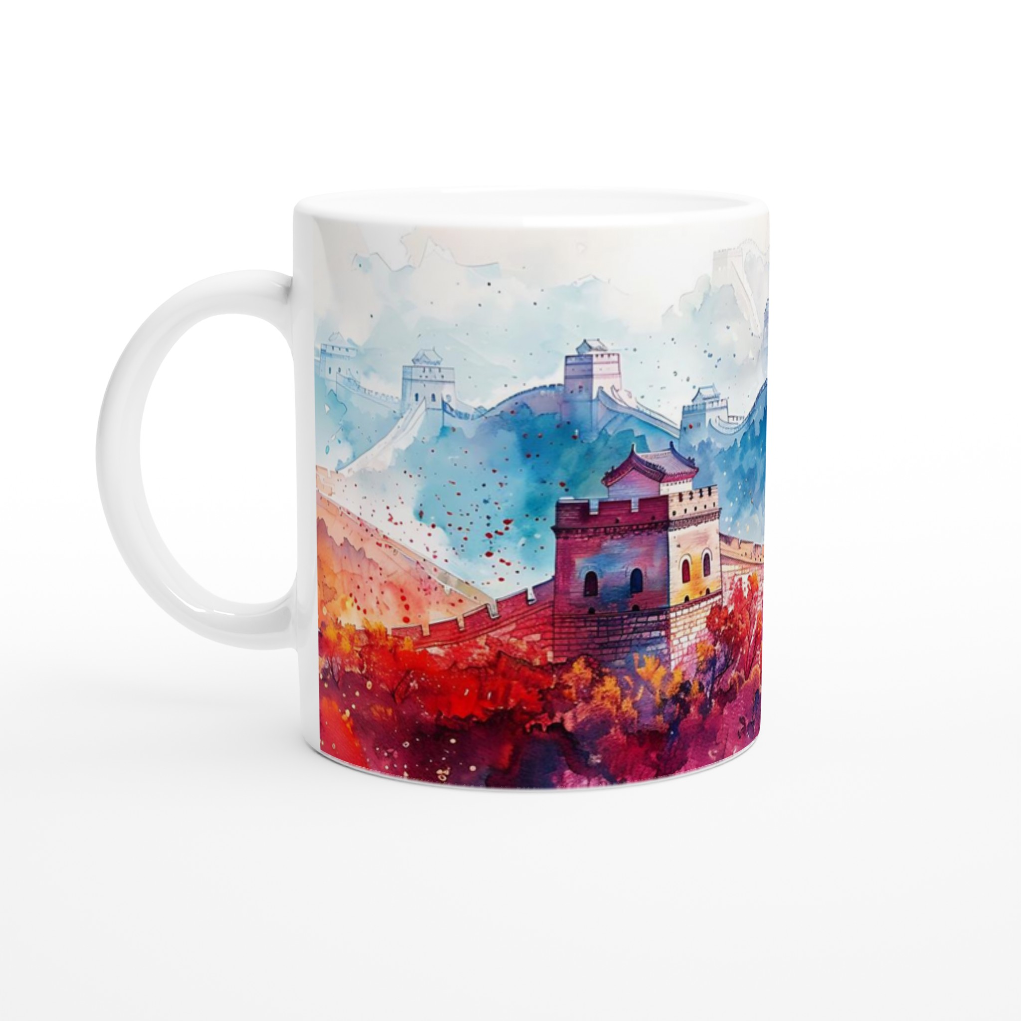 Denna exklusiva keramikmugg förvandlar din dryckesupplevelse till en konstnärlig resa med sitt fängslande akvarellmotiv av Kinesiska muren. Låt dig inspireras av de livfulla färgerna och den majestätiska skildringen, där varje penseldrag fångar skönheten i detta ikoniska landmärke. Den blanka vita ytan ger ett skarpt och levande tryck som verkligen sticker ut, oavsett om det är en personlig design, ett roligt citat eller en present till någon du tycker om.