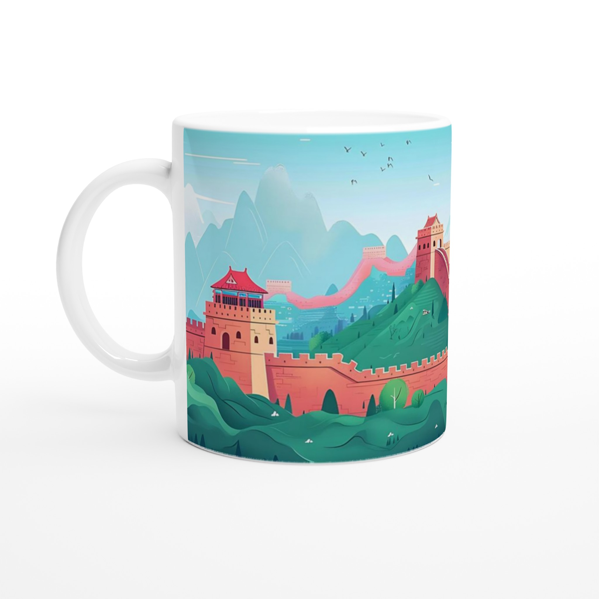 Inspirerad av det majestätiska landskapet runt Kinesiska Muren, presenterar denna mugg en lugnande palett av pastellfärger som för tankarna till avlägsna bergstoppar och gröna dalar. Det unika konstverket är tryckt på en blank yta som ger ett skarpt och levande tryck, perfekt för att lyfta fram din personliga stil eller som en tankeväckande present.