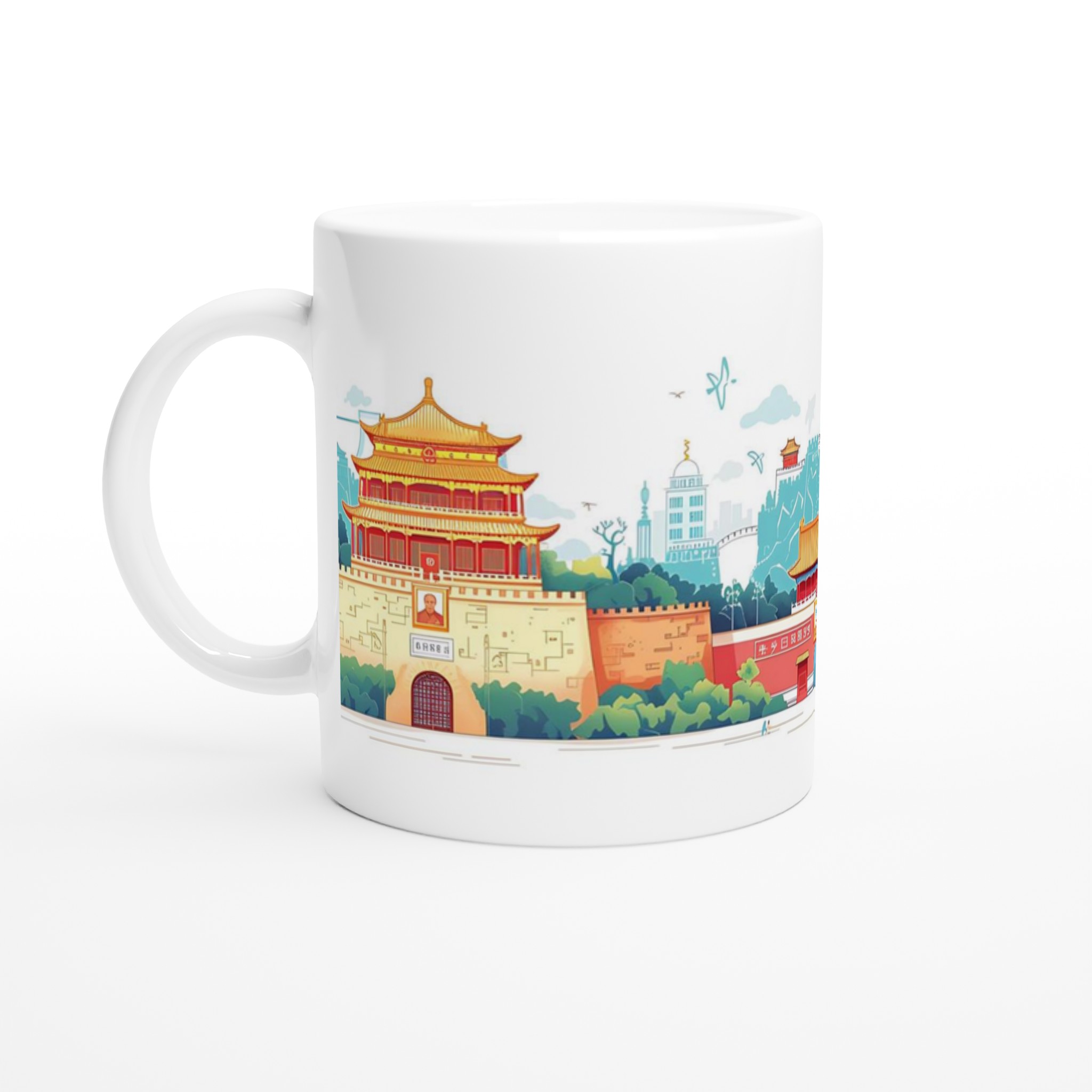 Denna unika mugg pryds av en livfull illustration som fångar den majestätiska skönheten hos kinesiska palats och arkitektur, omgiven av frodiga landskap och lugna himmelsblåa berg. Den blanka vita ytan ger ett skarpt och levande tryck som verkligen sticker ut, oavsett om det är en personlig design, ett roligt citat eller en present till någon du tycker om.