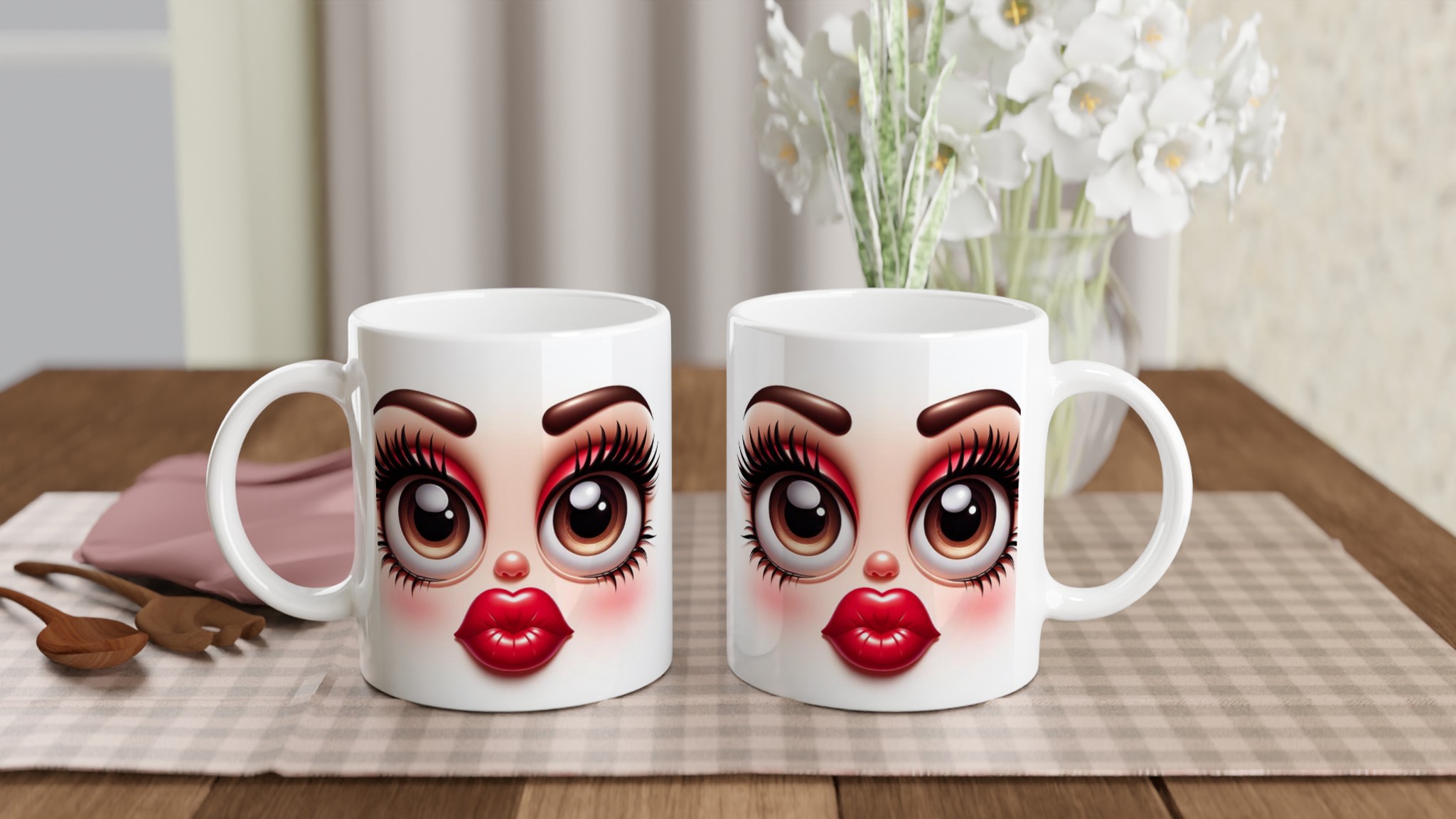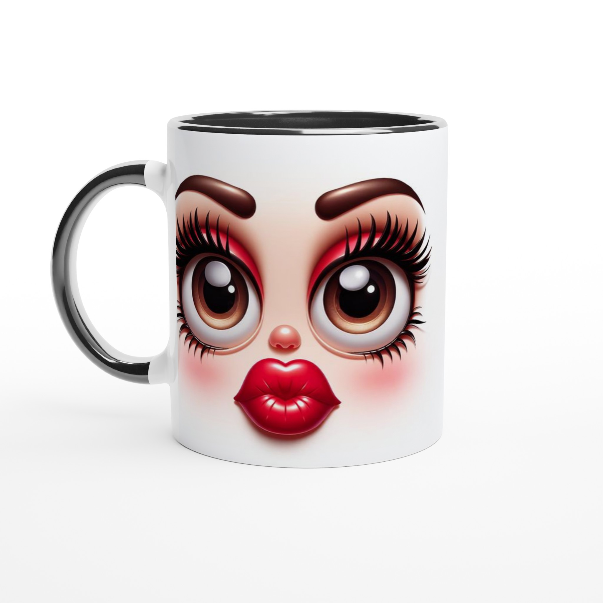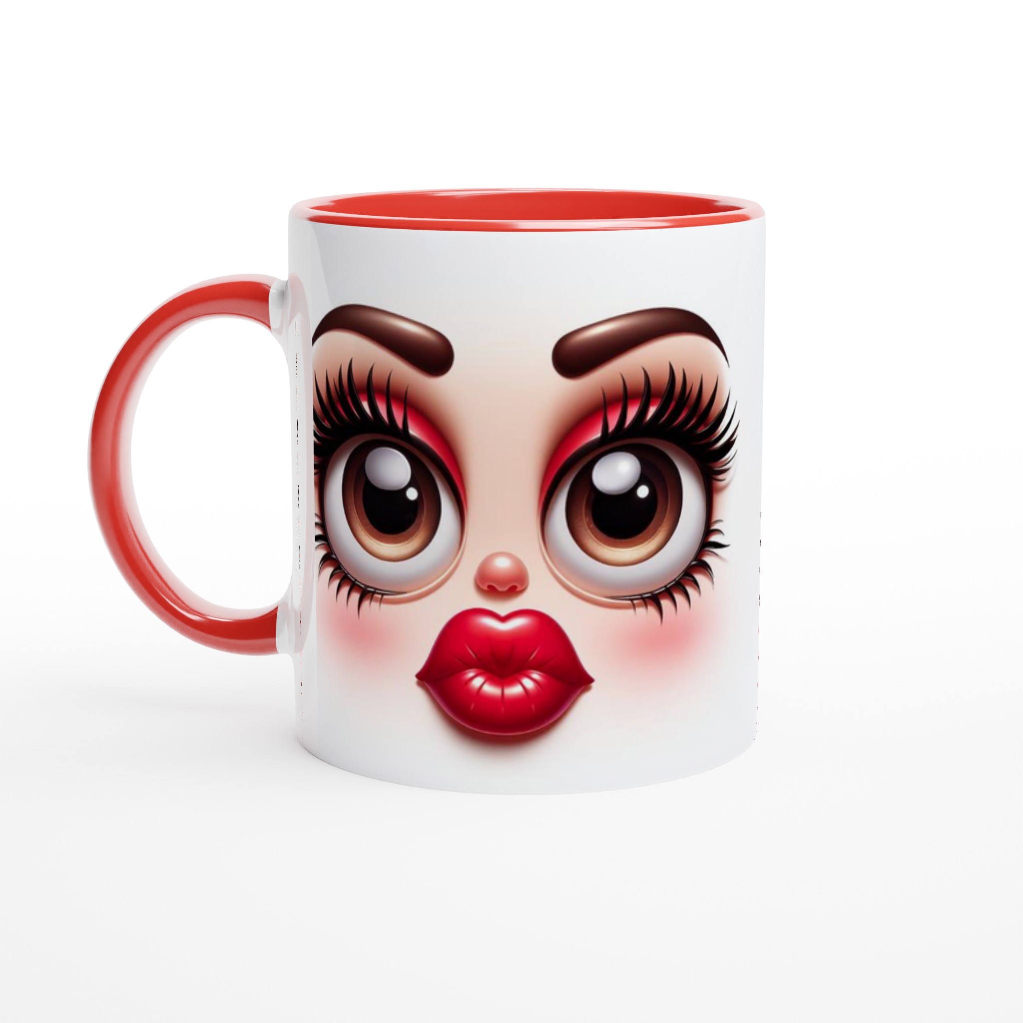 Lyft varje kaffestund med vår premium keramikmugg – stilren, hållbar och skapad för att låta ditt motiv glänsa. Denna mugg fångar den lekfulla charmen hos en kitschy tecknad figur, med stora uttrycksfulla ögon och fylliga röda läppar som ger en oemotståndlig personlighet. Perfekt för den som älskar en dos humor och karaktär i sin vardag, eller som en unik present till en vän med glimten i ögat.