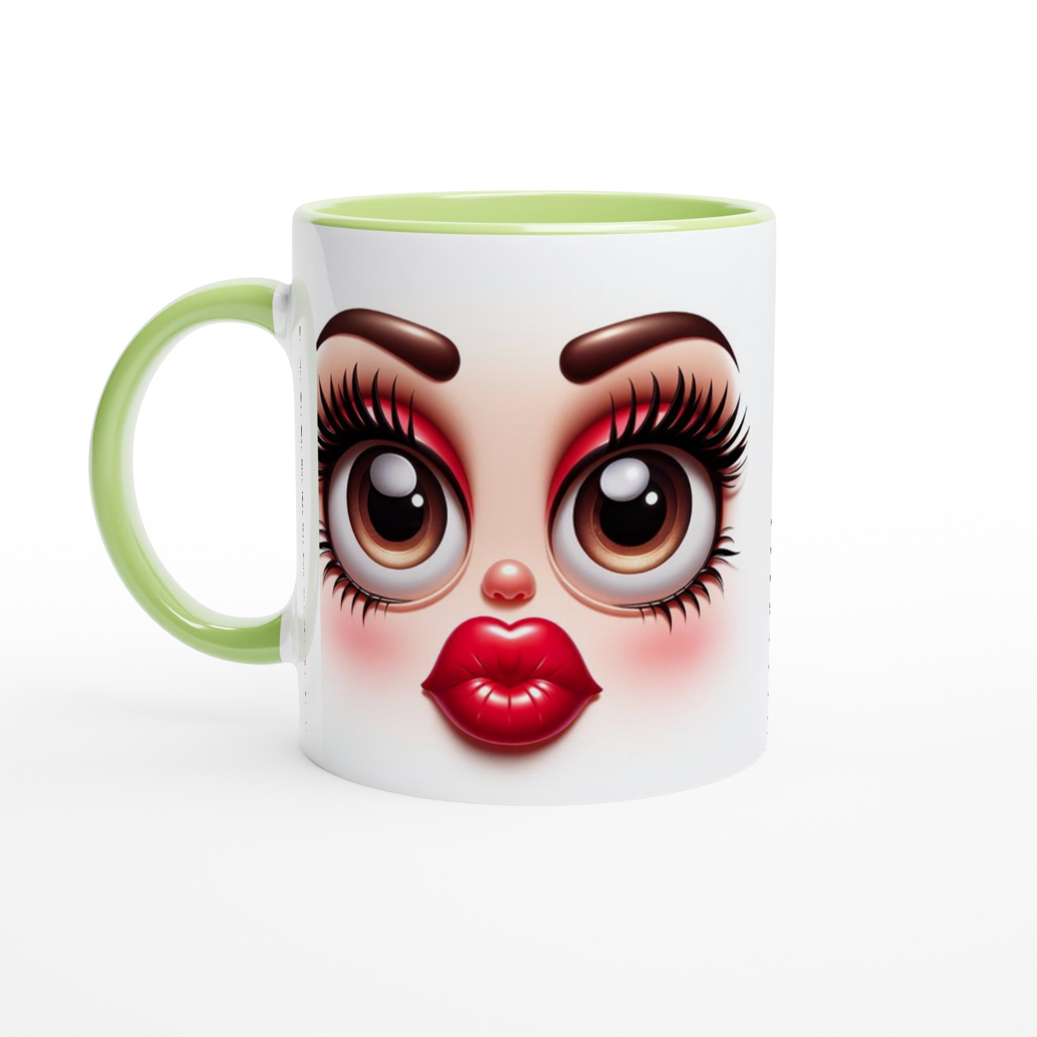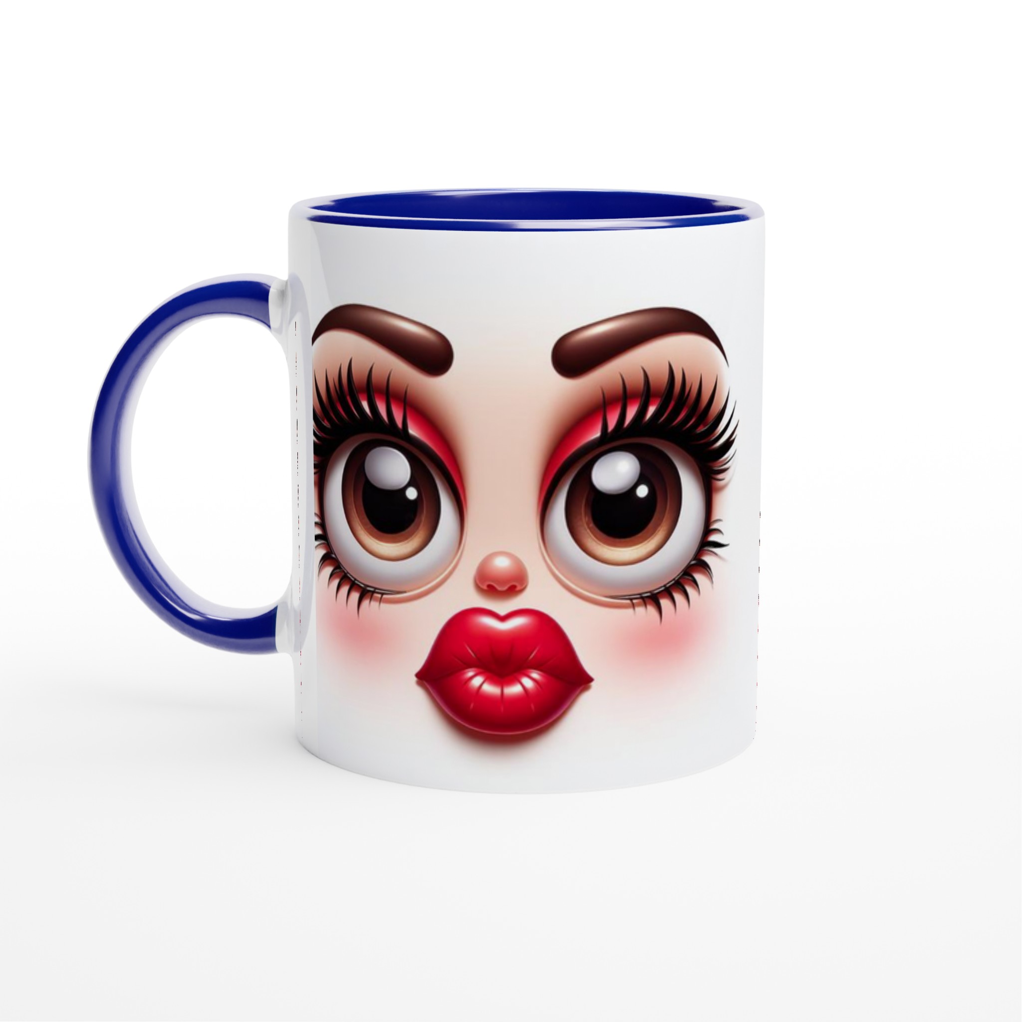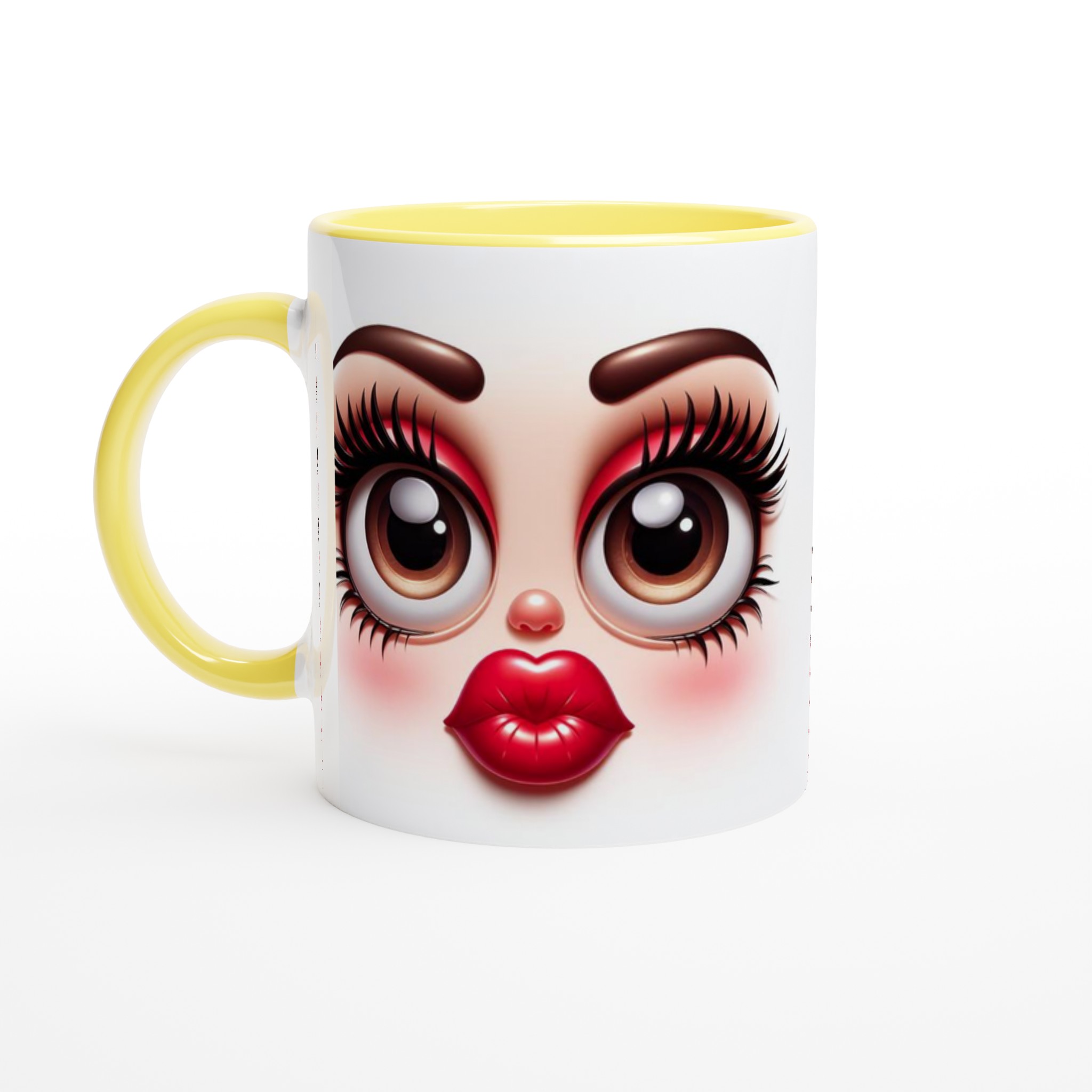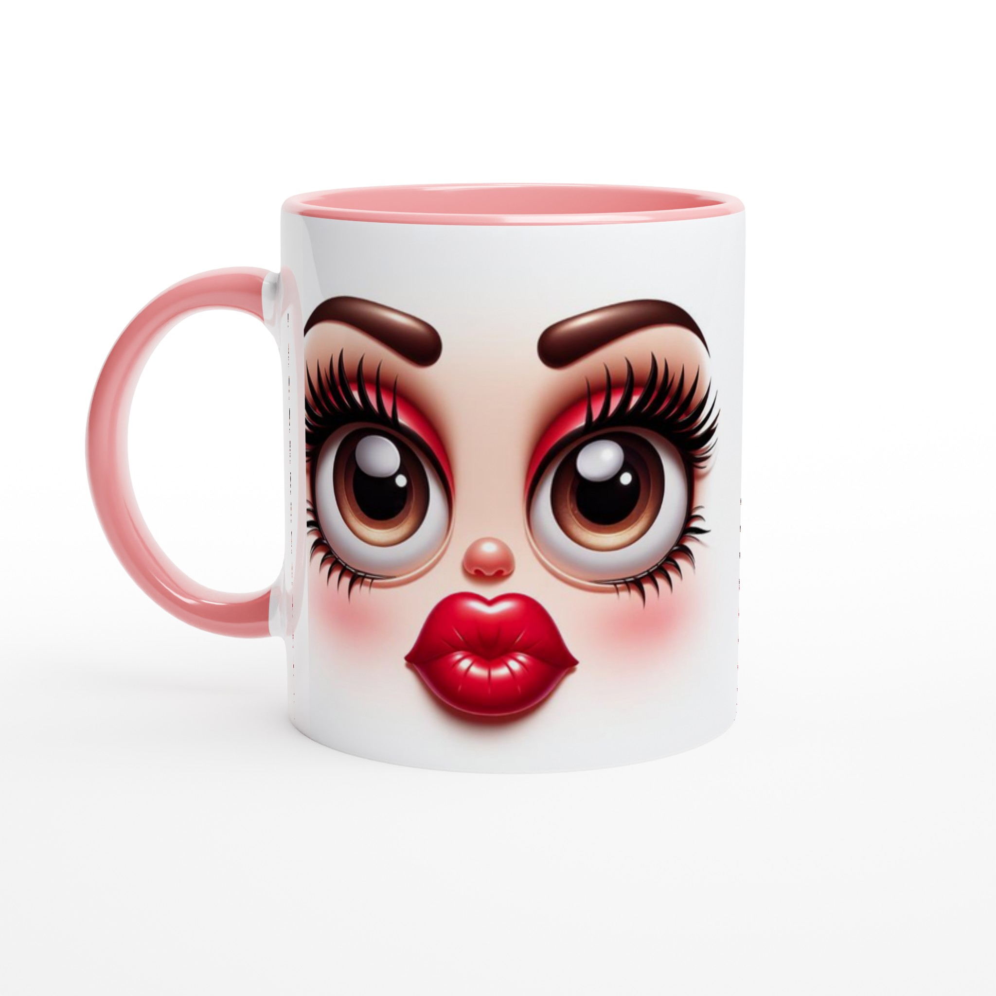 Lyft varje kaffestund med vår premium keramikmugg – stilren, hållbar och skapad för att låta ditt motiv glänsa. Denna mugg fångar den lekfulla charmen hos en kitschy tecknad figur, med stora uttrycksfulla ögon och fylliga röda läppar som ger en oemotståndlig personlighet. Perfekt för den som älskar en dos humor och karaktär i sin vardag, eller som en unik present till en vän med glimten i ögat.