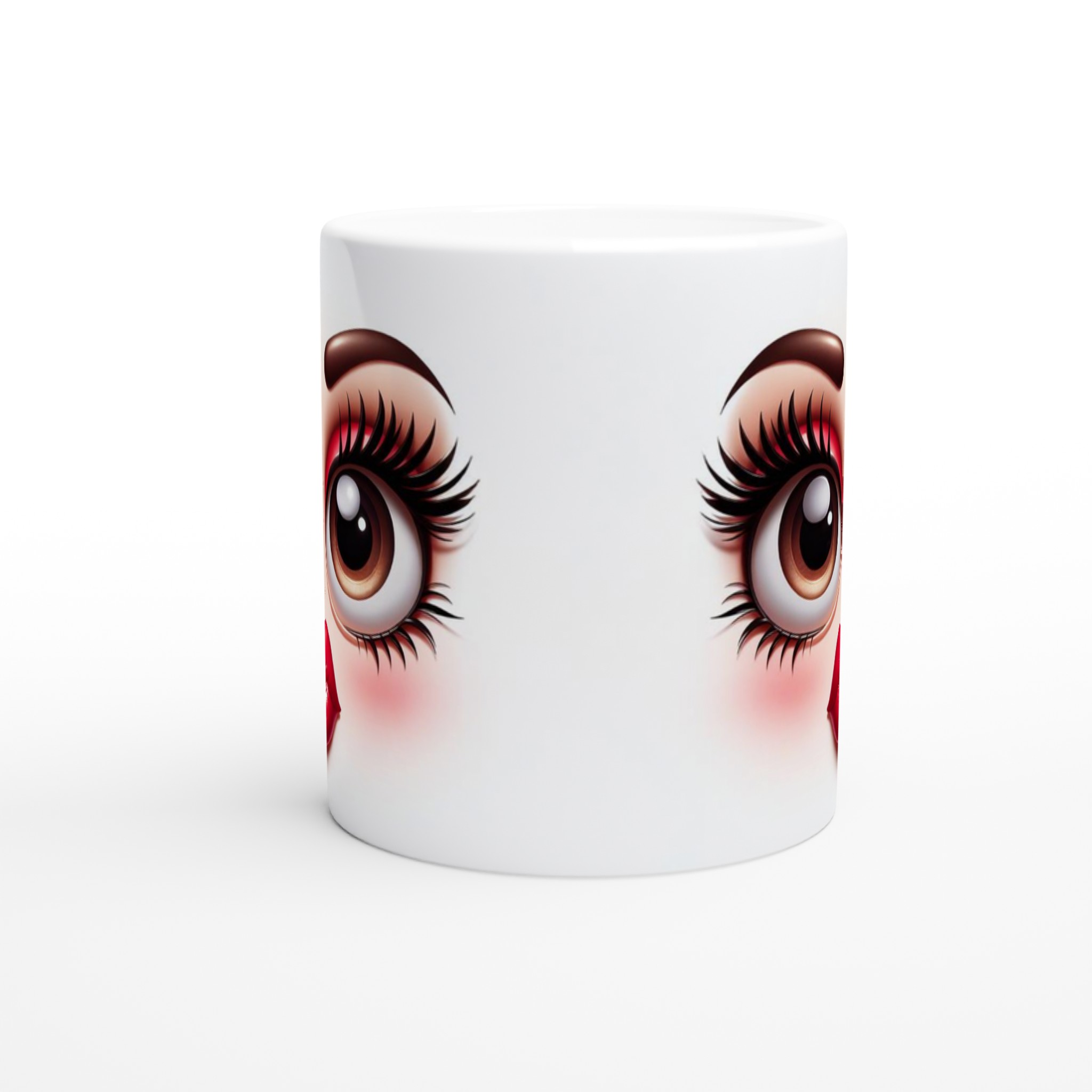 Kitschy Cartoon Face 11oz Keramisk Mugg – Uttrycksfulla Ögon & Läppar i Olika Färger