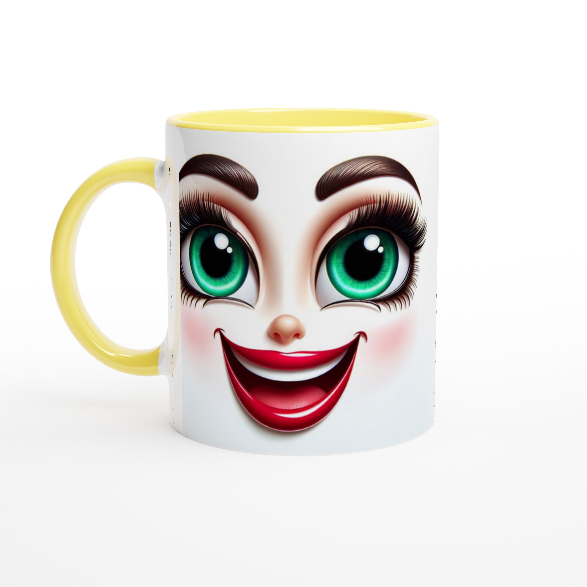 Välj din favoritfärg och låt den kitschiga charmen livfullt pryda din nya favoritmugg. Förutom den klassiska keramikvita kan du välja bland livliga nyanser som Ceramic Yellow, Ceramic Pink, Ceramic Green, Ceramic Red, Ceramic Black och Ceramic Blue för att matcha din stil eller inredning. Skapa din perfekta morgonrutin – välj din färg och beställ idag!