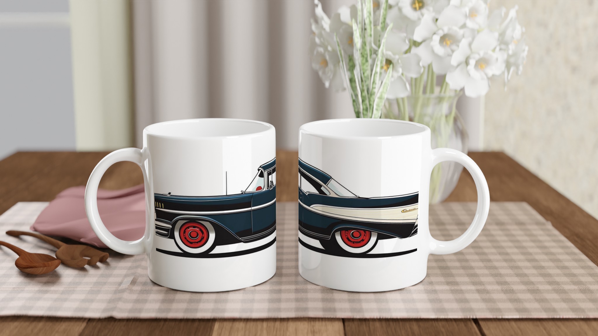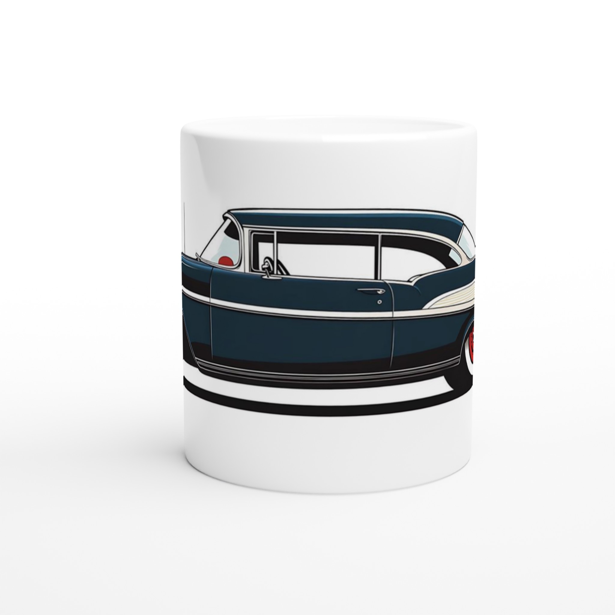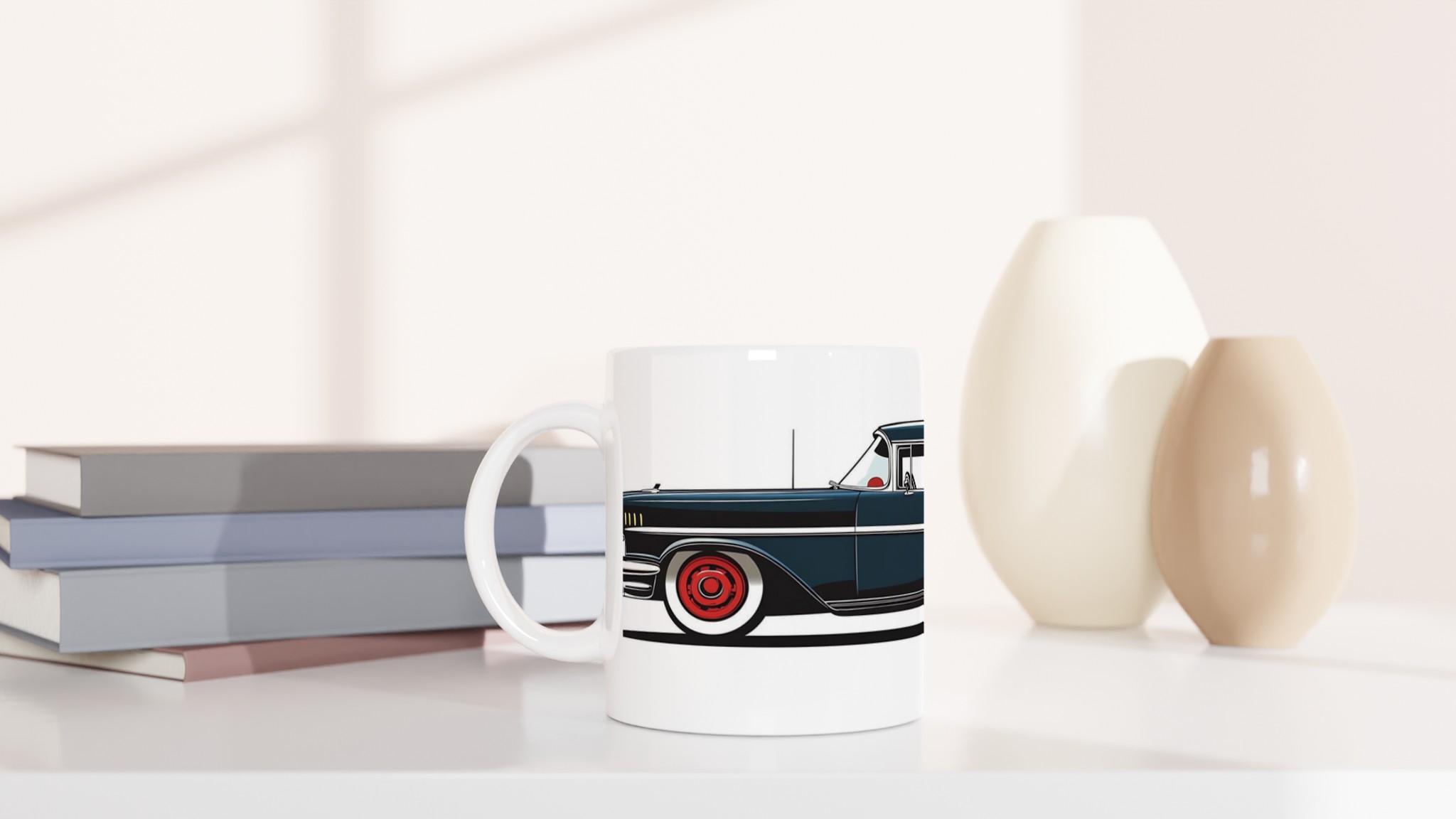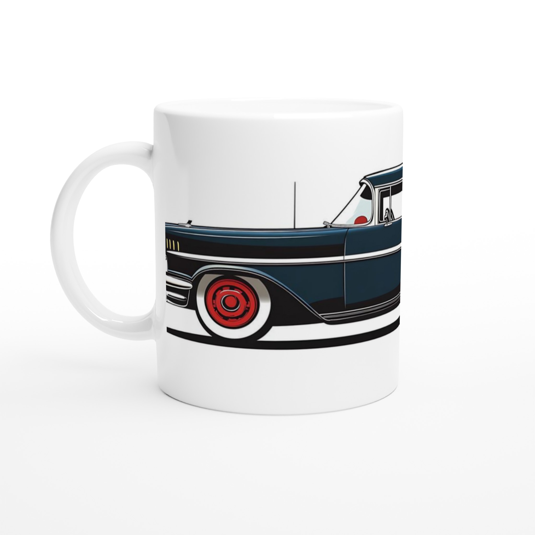 För bilentusiasten eller den som älskar tidlös design, denna mugg hyllar den ikoniska 50-tals cruisern. Den blanka vita ytan ger ett skarpt och levande tryck som verkligen sticker ut, oavsett om det är en personlig design, ett roligt citat eller en present till någon du tycker om.
