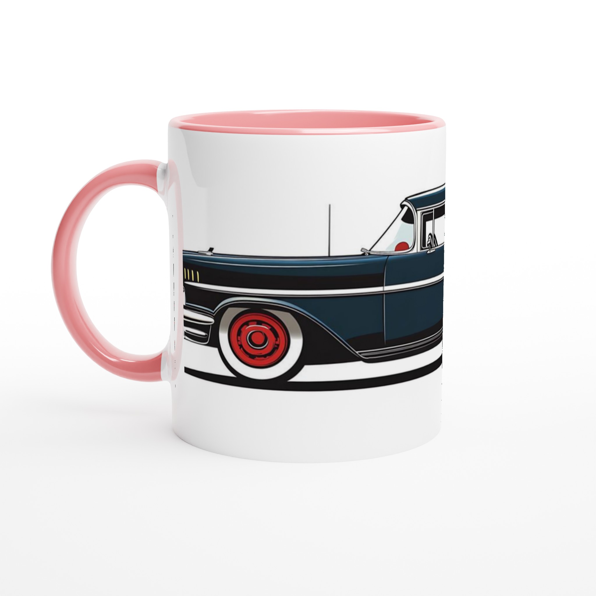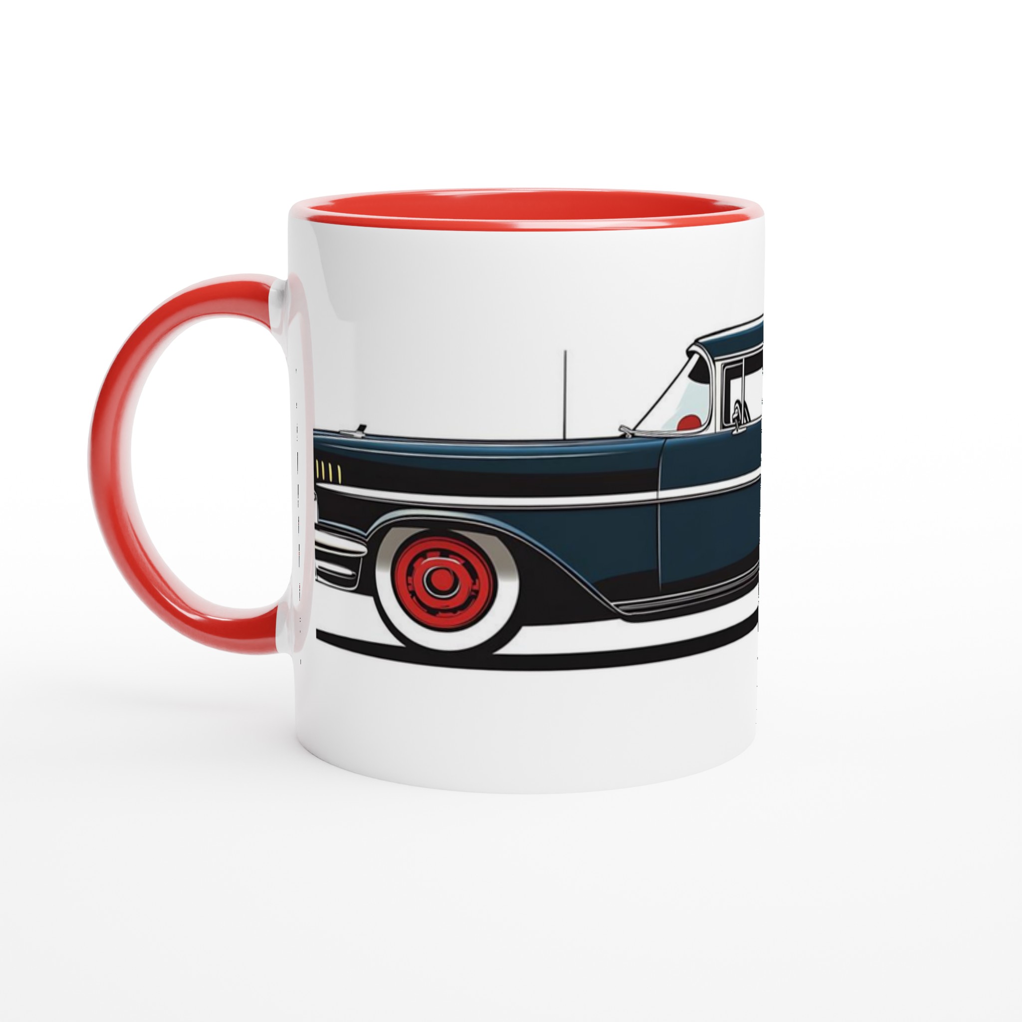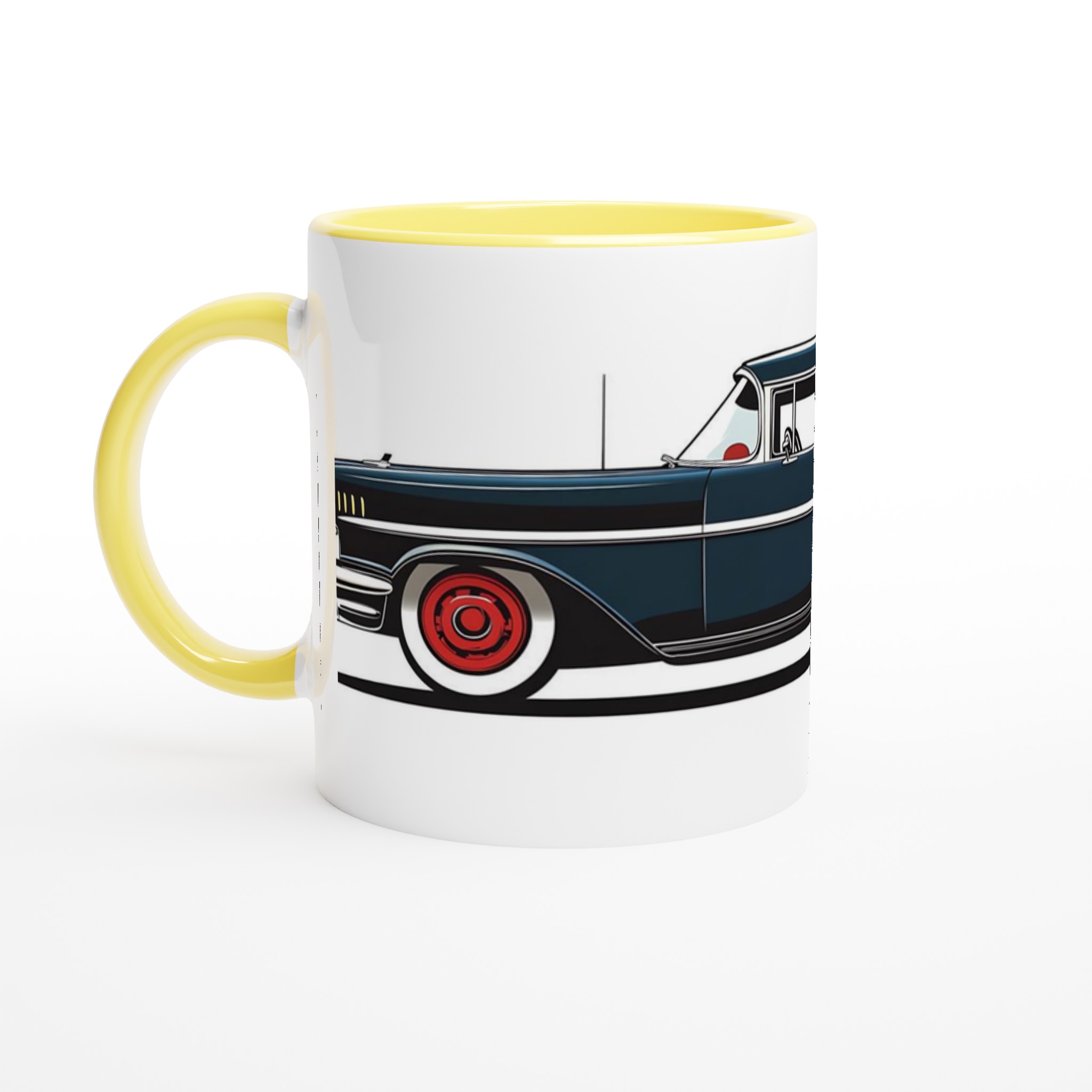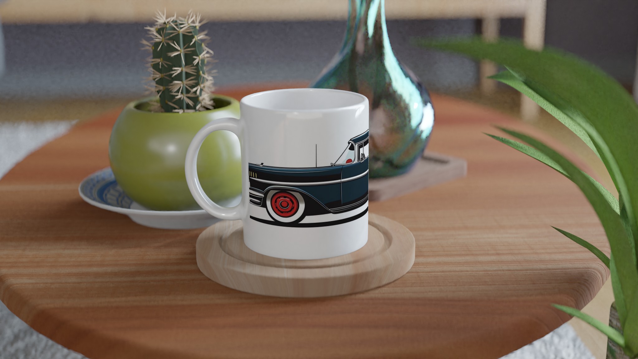 För bilentusiasten eller den som älskar tidlös design, denna mugg hyllar den ikoniska 50-tals cruisern. Den blanka vita ytan ger ett skarpt och levande tryck som verkligen sticker ut, oavsett om det är en personlig design, ett roligt citat eller en present till någon du tycker om.