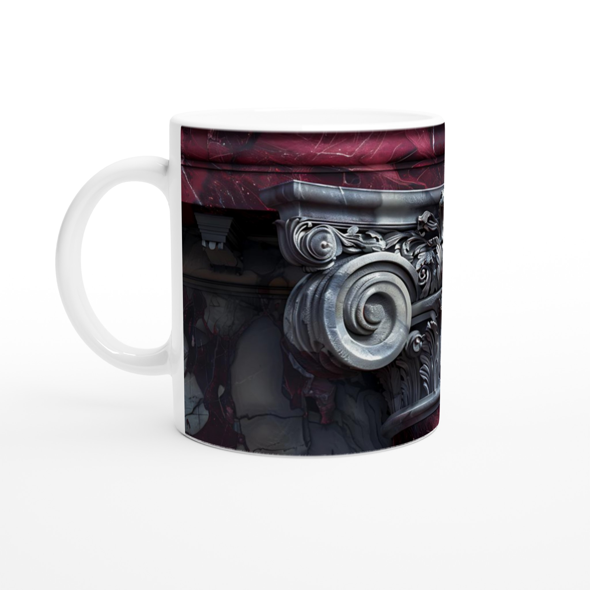 Lyft varje kaffestund med vår premium keramikmugg – stilren, hållbar och skapad för att låta ditt motiv glänsa. Inspirerad av den tidlösa skönheten hos klassiska korintiska kolonner, fångar denna mugg elegans och styrka. Dess detaljerade design och robusta känsla gör den till en perfekt blandning av konst och funktionalitet, idealisk för både hem och kontor.