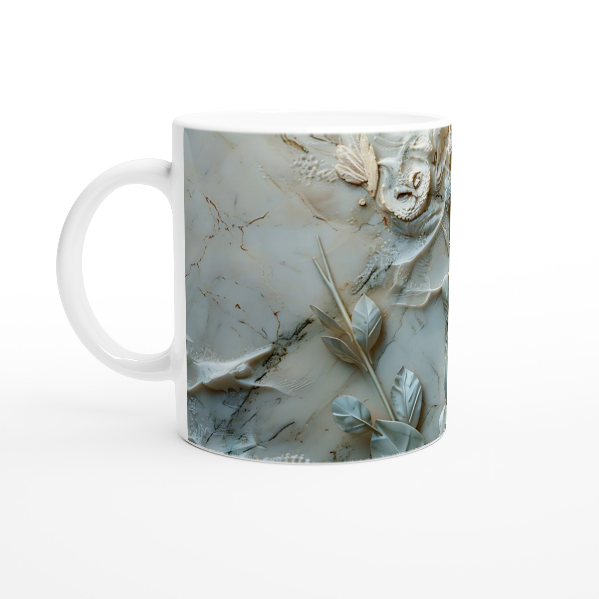 Klassisk Marmor-inspirerad Keramikmugg – 11oz Vit Mugg med Antik Relieftryck i ditt val av 7 färger