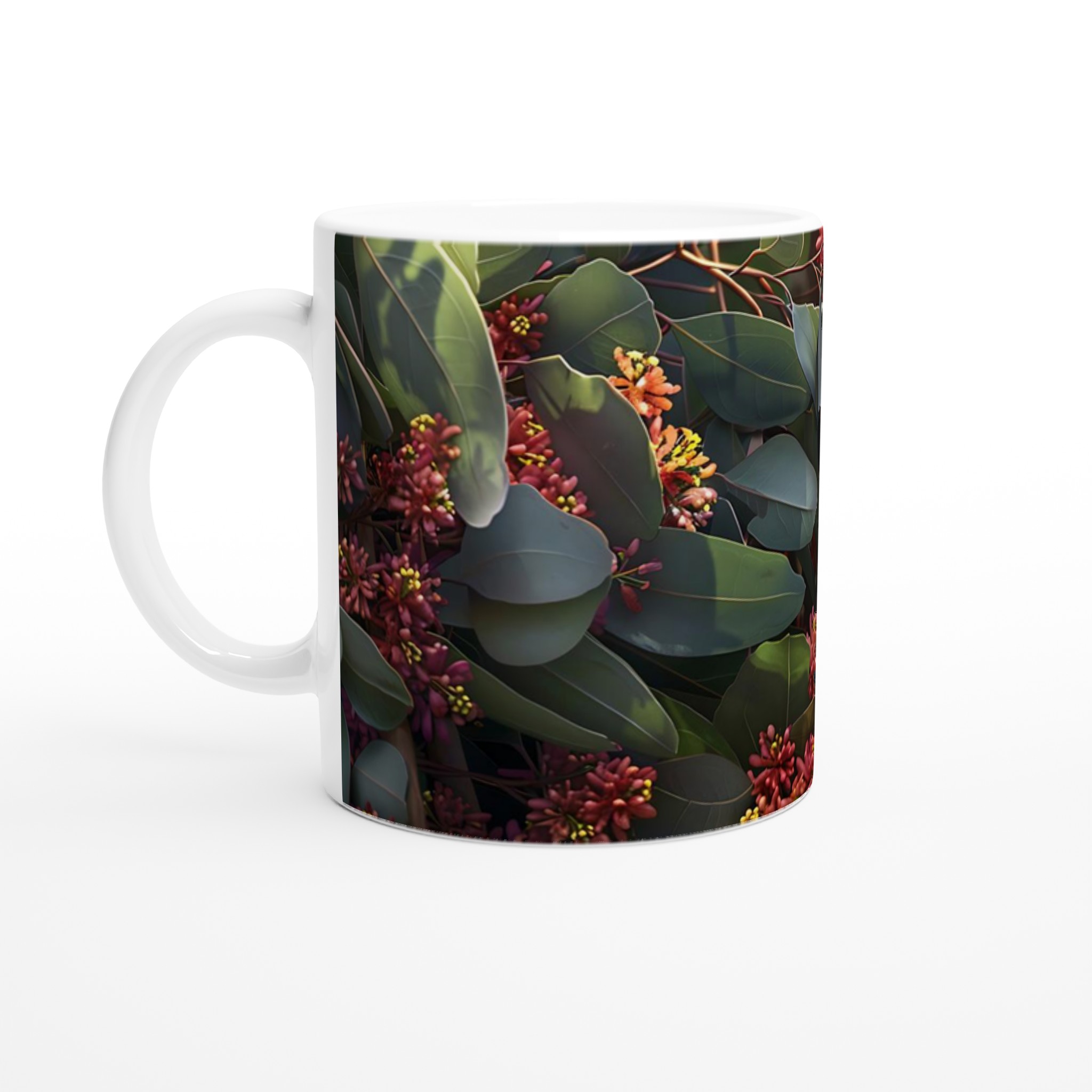 Låt dig svepas med till Australiens lummiga eukalyptusskogar varje gång du tar en klunk. Denna charmiga mugg, med sin detaljerade design av en koala omgiven av livfulla eukalyptusblommor, förvandlar din dryckesupplevelse till en rofylld stund. Den blanka vita ytan ger ett skarpt och levande tryck som verkligen sticker ut, oavsett om det är en personlig design, ett roligt citat eller en present till någon du tycker om.