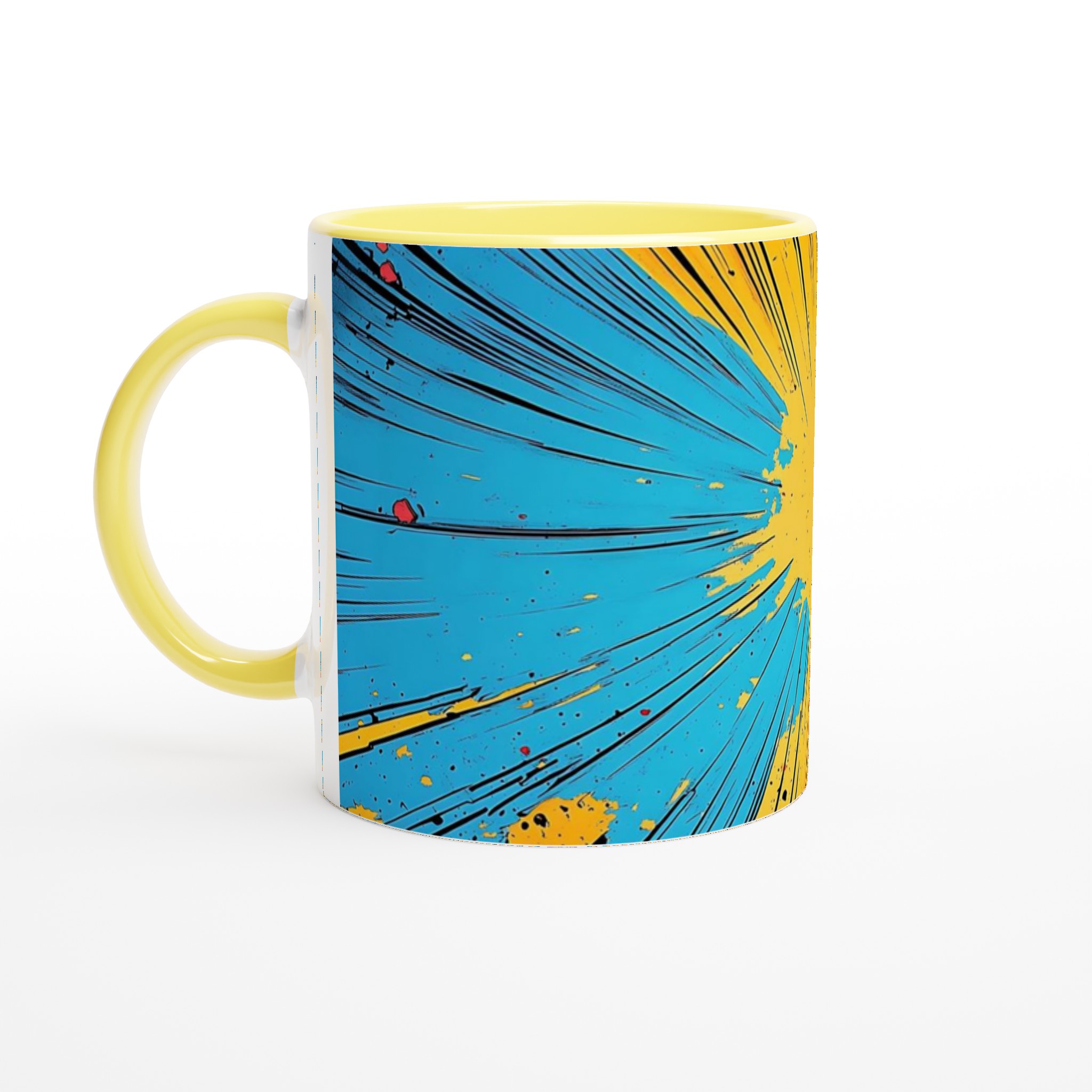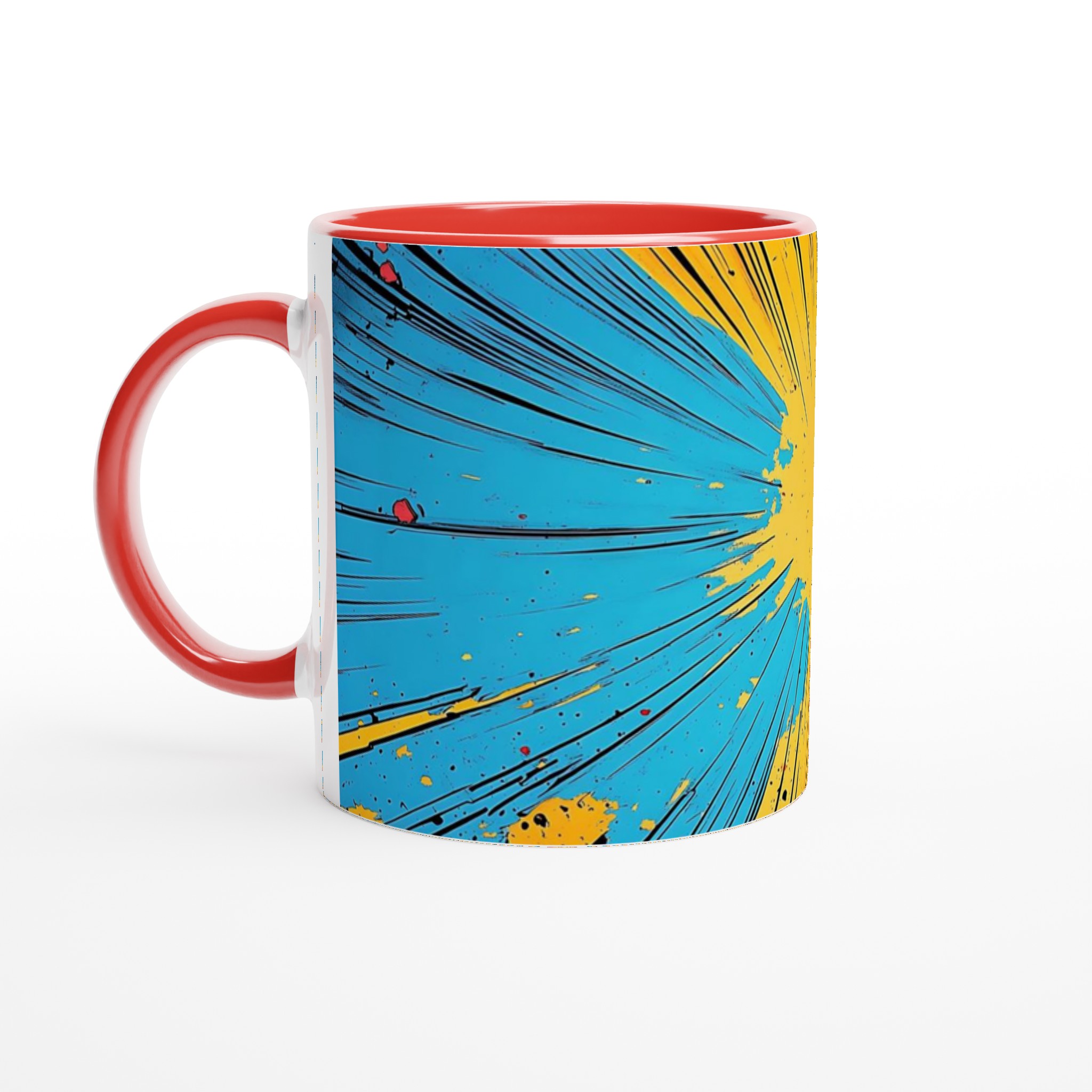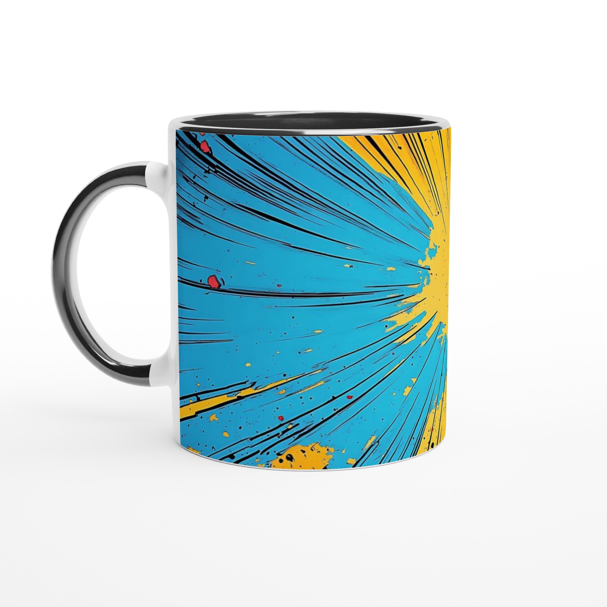 Inspirerad av den dynamiska energin från popkonst och serietidningar, är denna mugg en explosion av färg och karaktär. Föreställ dig en explosion av glädje och kreativitet varje gång du tar en klunk! Den är mer än bara en mugg; det är en daglig dos av inspiration som garanterat sätter färg på din rutin. Välj bland en palett av sju livfulla färger – Ceramic White, Yellow, Pink, Green, Red, Black, eller Blue – för att matcha din personliga stil eller din inredning.