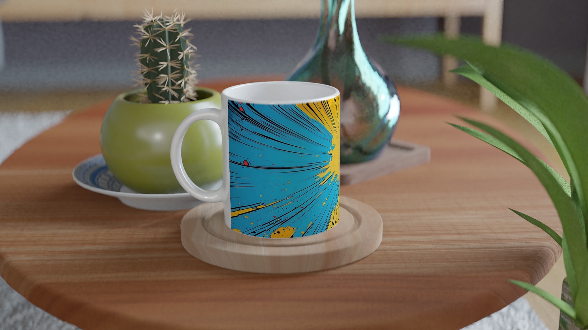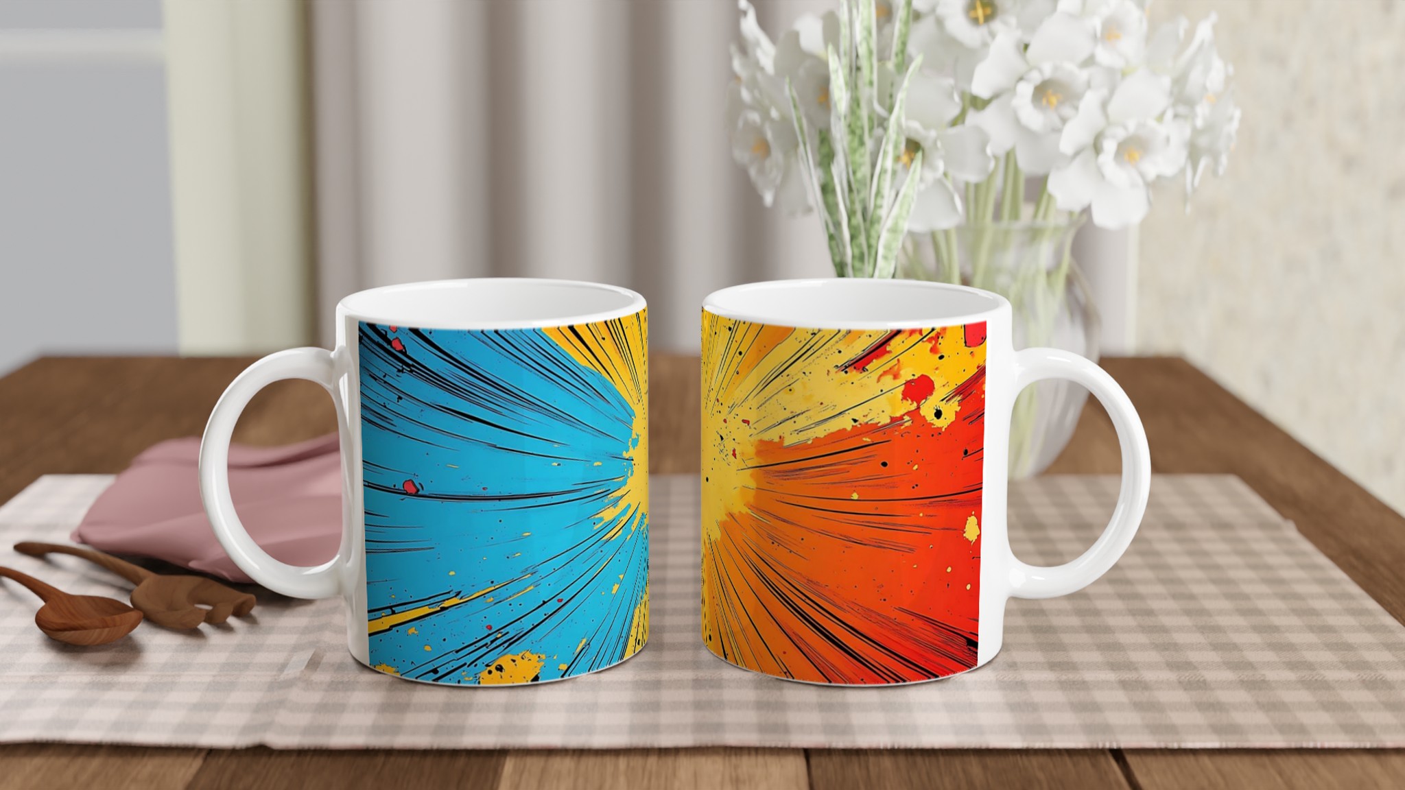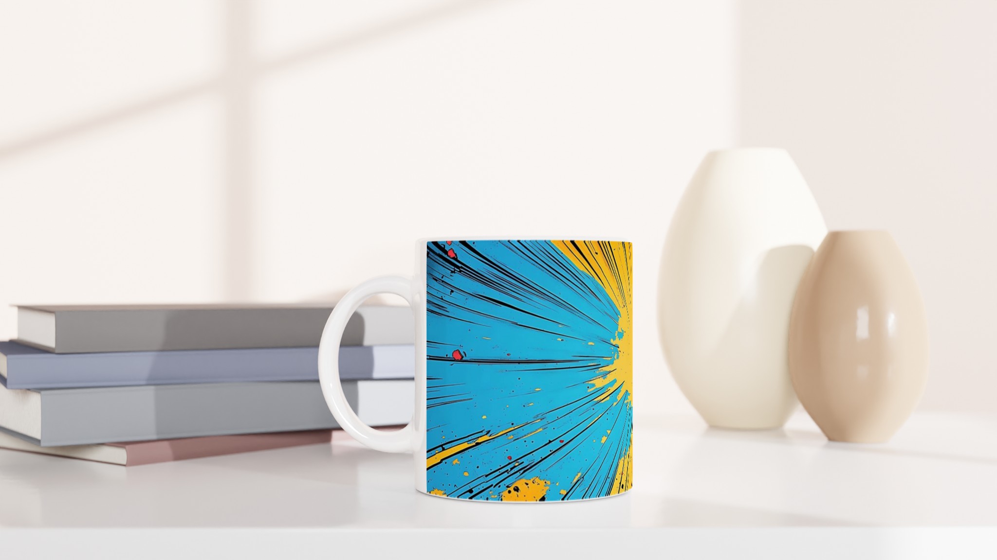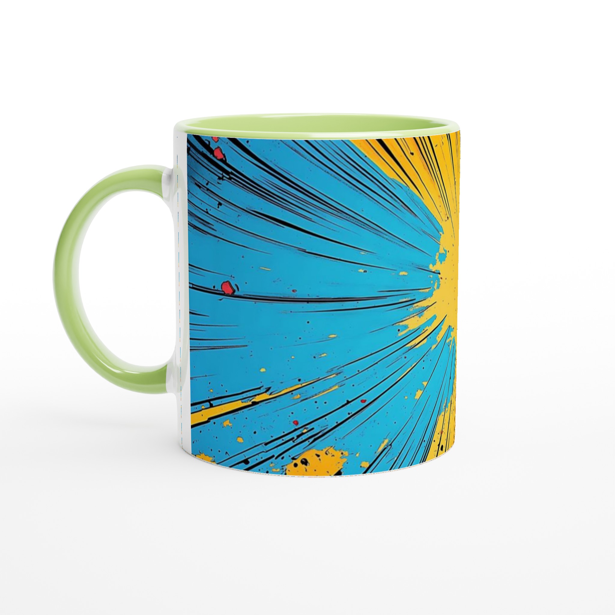Inspirerad av den dynamiska energin från popkonst och serietidningar, är denna mugg en explosion av färg och karaktär. Föreställ dig en explosion av glädje och kreativitet varje gång du tar en klunk! Den är mer än bara en mugg; det är en daglig dos av inspiration som garanterat sätter färg på din rutin. Välj bland en palett av sju livfulla färger – Ceramic White, Yellow, Pink, Green, Red, Black, eller Blue – för att matcha din personliga stil eller din inredning.
