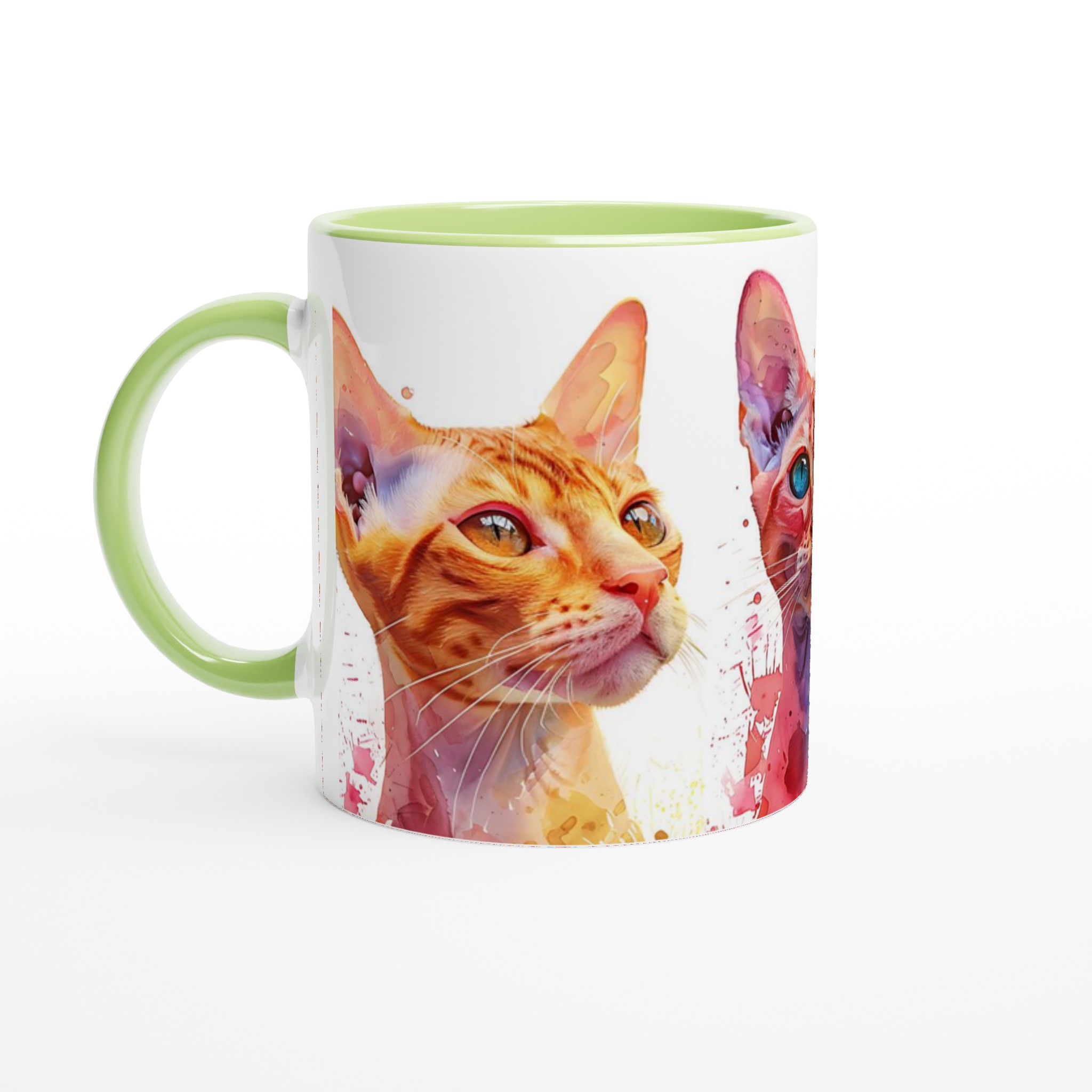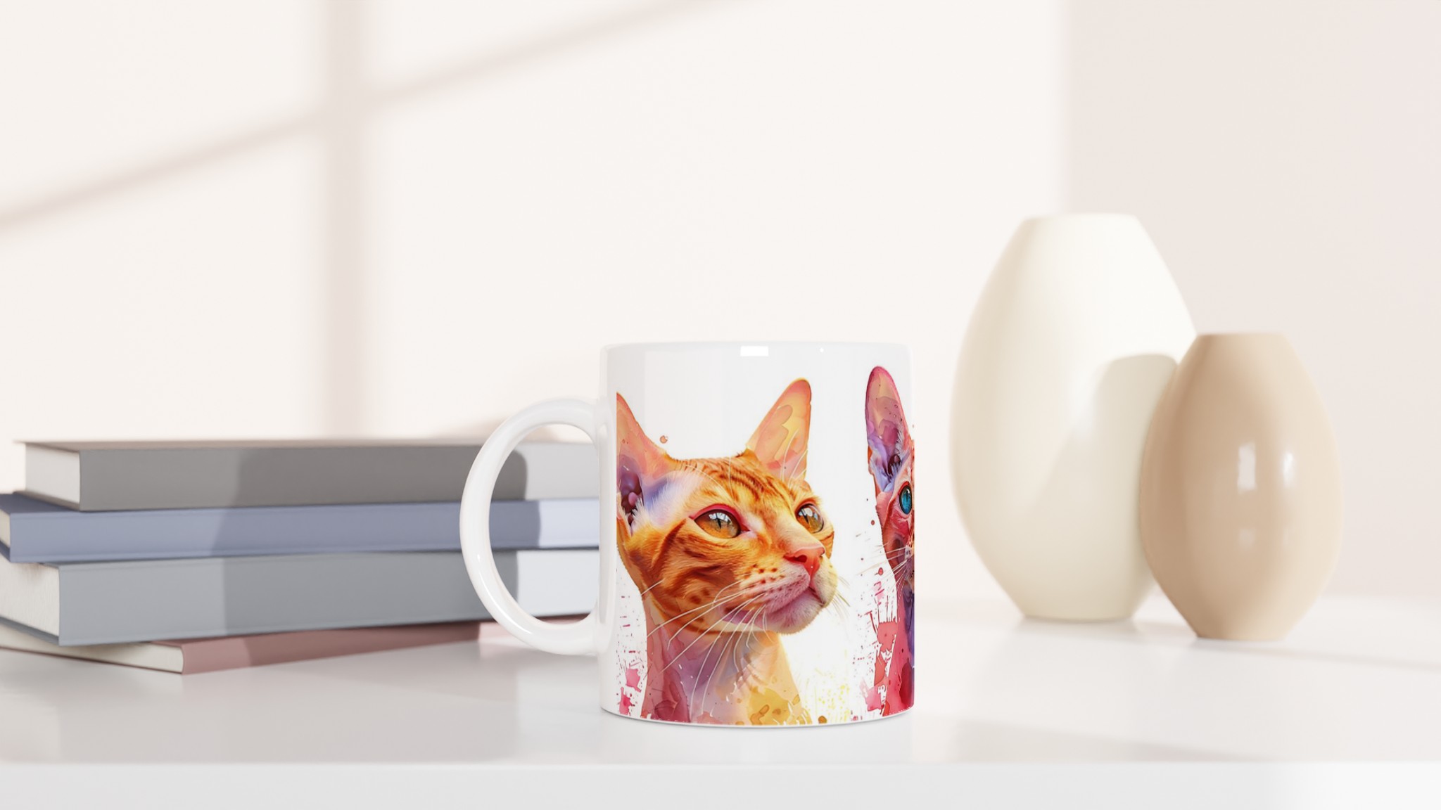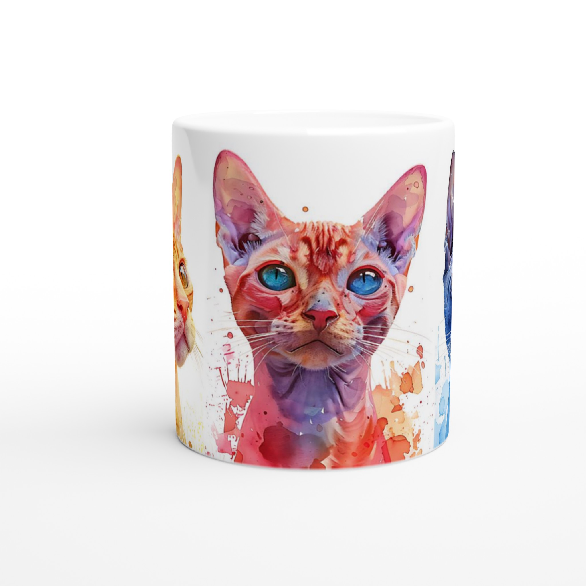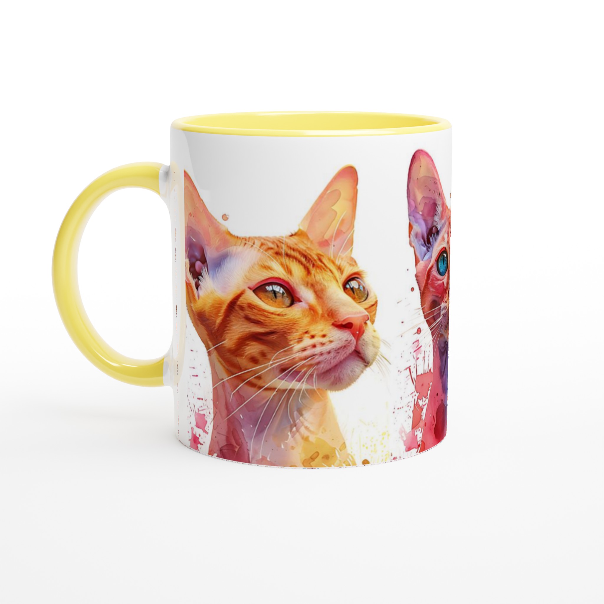 Den här stilrena keramiska muggen blir snabbt en vardagsfavorit. Perfekt för morgonkaffet, kvällens varma choklad eller när du bara vill njuta av en kopp te. Den blanka vita ytan gör att trycken framhävs med klara och levande färger, som håller sig fina även efter många turer i mikron och diskmaskinen. Välj den katt som speglar din personlighet eller samla alla tre för en färgstark uppsättning. Med ett urval av färger för muggen – Ceramic White, Ceramic Yellow, Ceramic Pink, Ceramic Green, Ceramic Red, Ceramic Black, eller Ceramic Blue – kan du anpassa din mugg helt efter din stil.