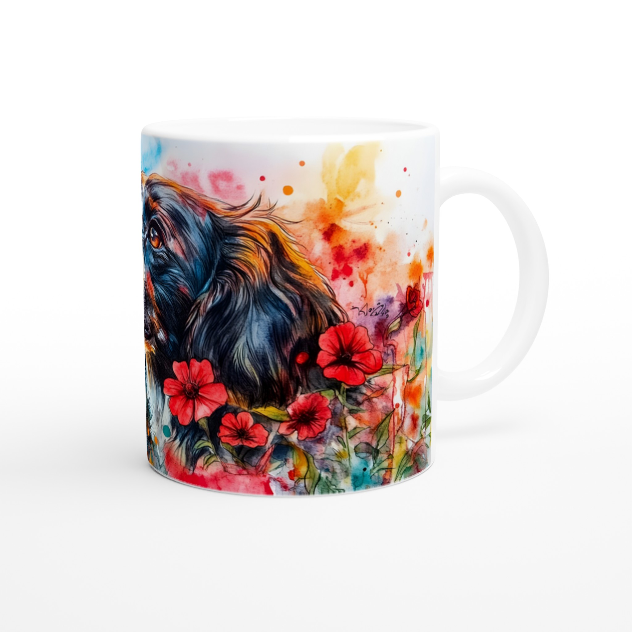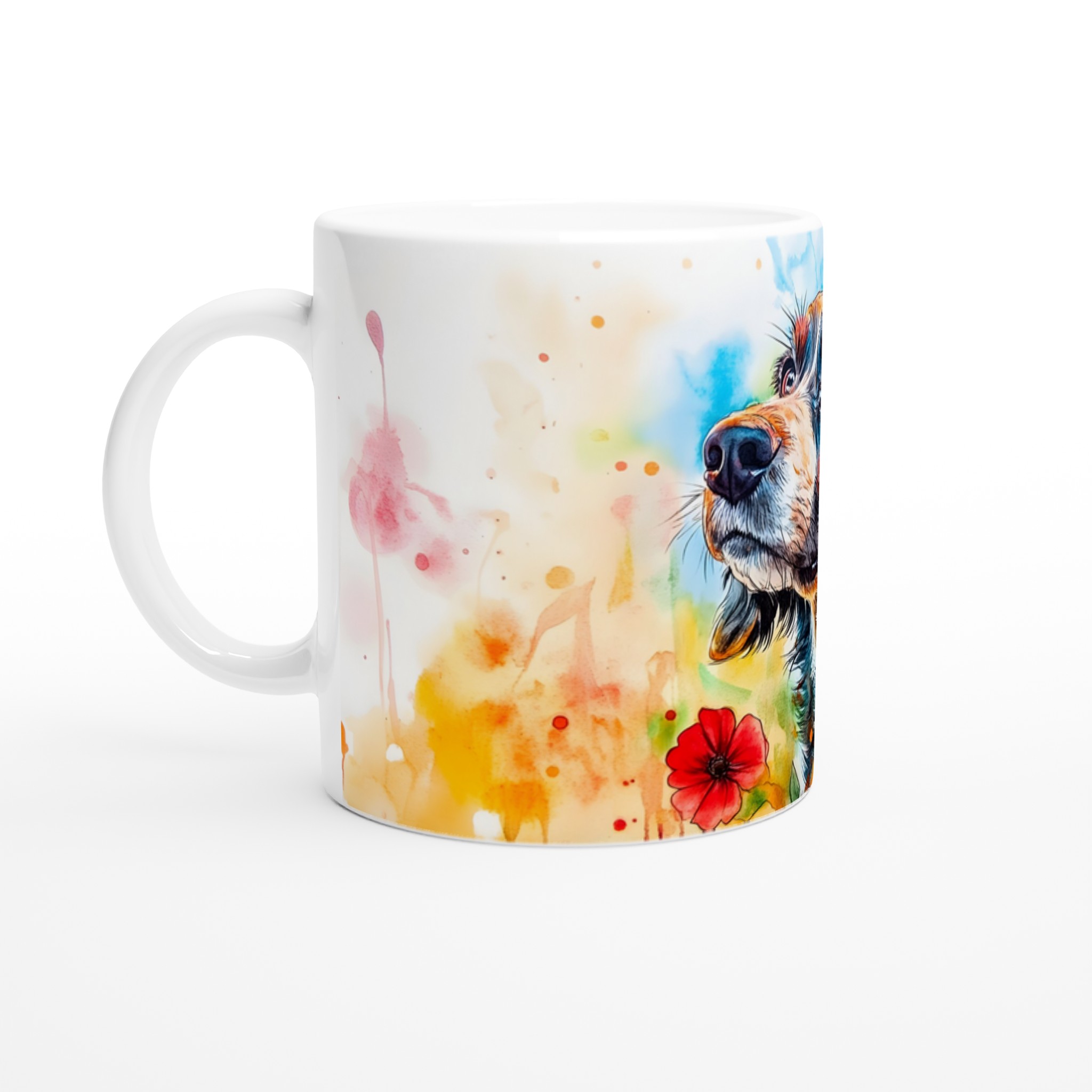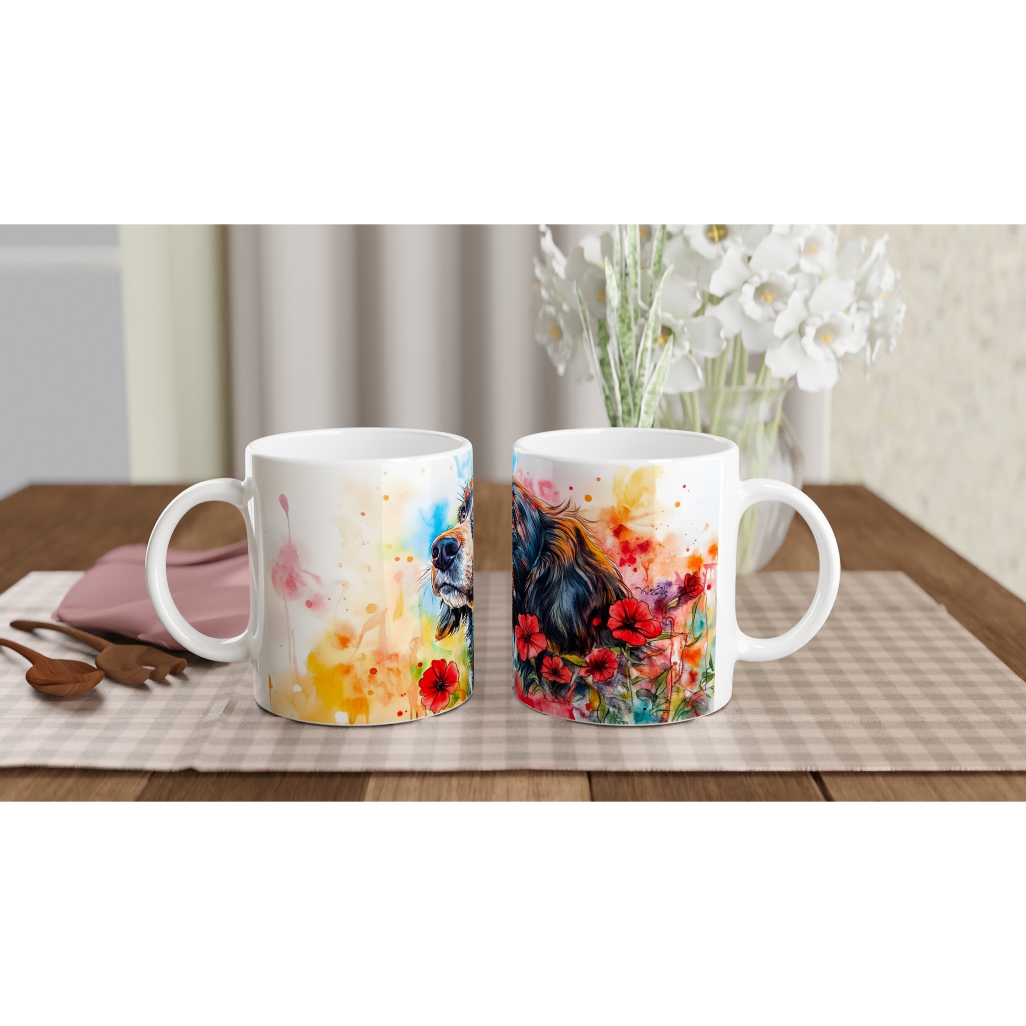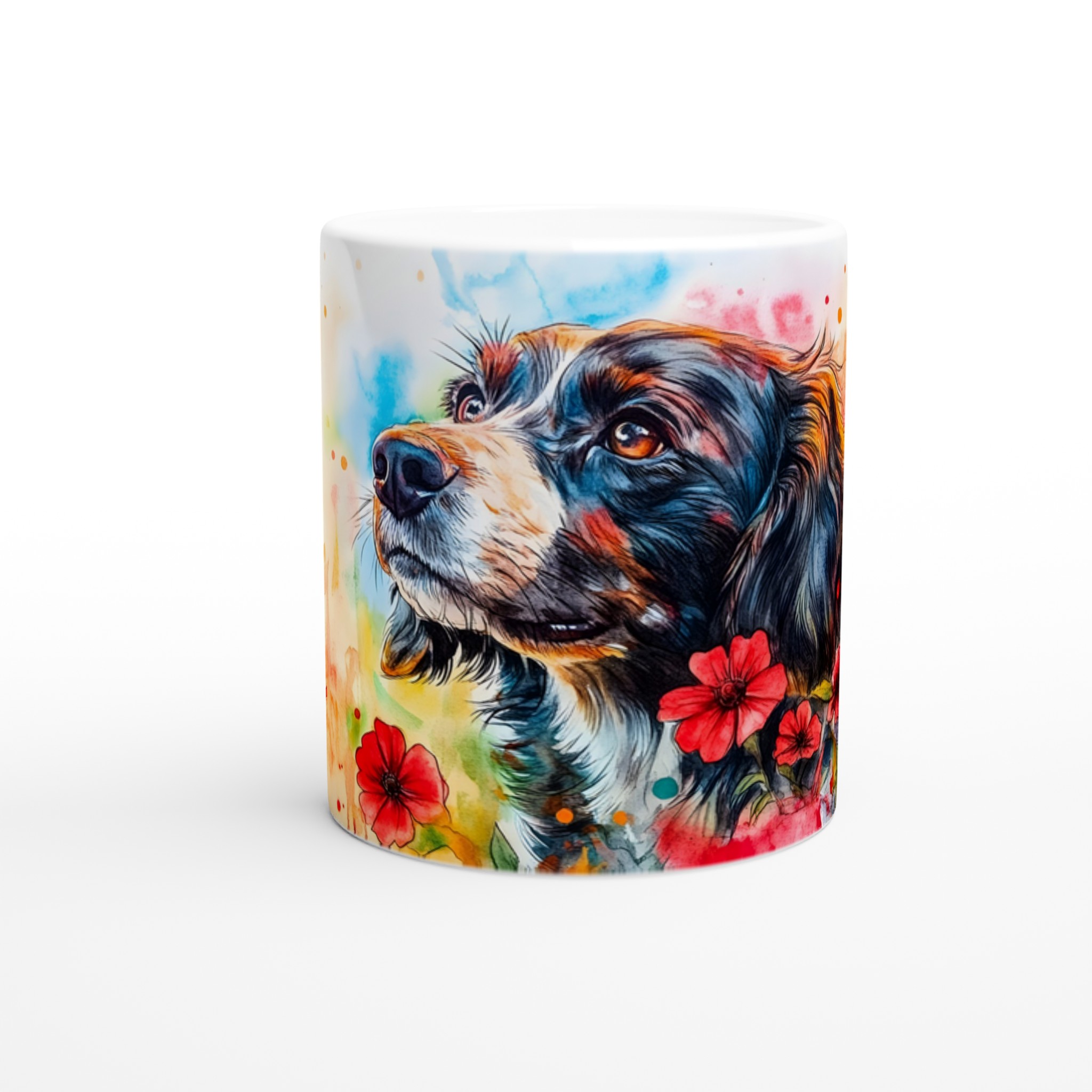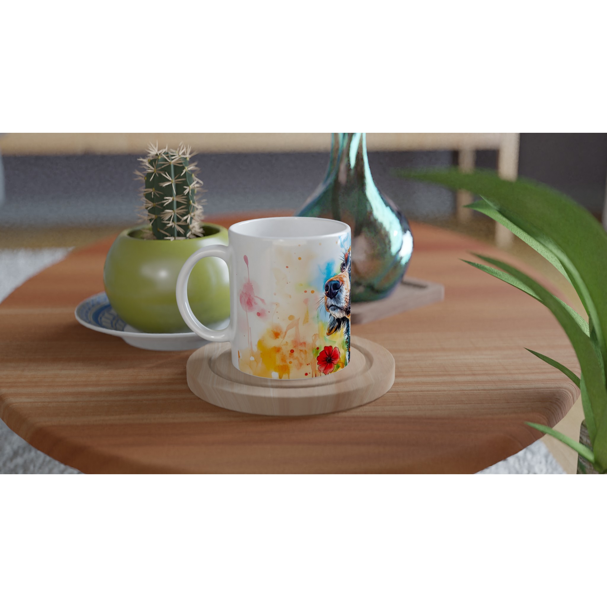 Förgyll din dag med en explosion av färg och charm! Denna keramiska mugg pryds av ett livfullt akvarellkonstverk föreställande en kärleksfull hund, omgiven av röda blommor och lekfulla färgstänk. Varje klunk blir en upplevelse, perfekt för att starta morgonen med en kopp kaffe, njuta av en lugn te-stund, eller värma dig med en krämig varm choklad. Den blanka vita ytan låter det konstnärliga trycket framträda med exceptionell klarhet och färgintensitet, vilket gör denna mugg till en riktig höjdpunkt i ditt kök.