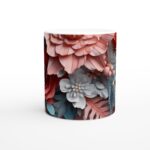 Lyft dina fikastunder med denna unika keramikmugg, prydd med ett fantastiskt 3D-inspirerat blomstermotiv. De levande färgerna och det intrikata designen, som hämtats direkt från naturens skönhet, skapar en känsla av djup och elegans. Varje detalj i de persikofärgade, grönblå och vita blommorna framträder med en nästan taktil kvalitet, vilket förvandlar varje sip till en estetisk upplevelse. Denna mugg är inte bara ett kärl för din favoritdryck, utan ett konstverk som lyser upp din dag.