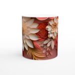 Lyft din fikastund med vår Konstnärliga Blomster Mugg, en vit keramikmugg som förvandlar varje dryckesögonblick till en liten konstupplevelse. Designen, inspirerad av bildens lugna men detaljrika blomstermotiv i dämpade turkosa och jordnära orangeröda toner mot en djup bakgrund, ger ett intryck av handgjorda lerskulpturer. Denna mugg är perfekt för alla dagens stunder – morgonkaffet, en värmande kopp te eller en härlig varm choklad. Den blanka vita ytan gör att trycken framträder klart och färgstarkt, vilket gör muggen till en riktig favorit i vardagen.