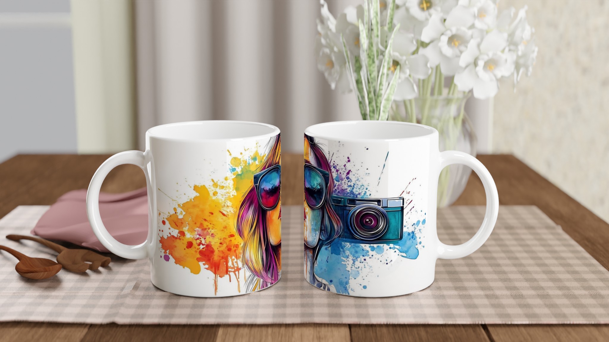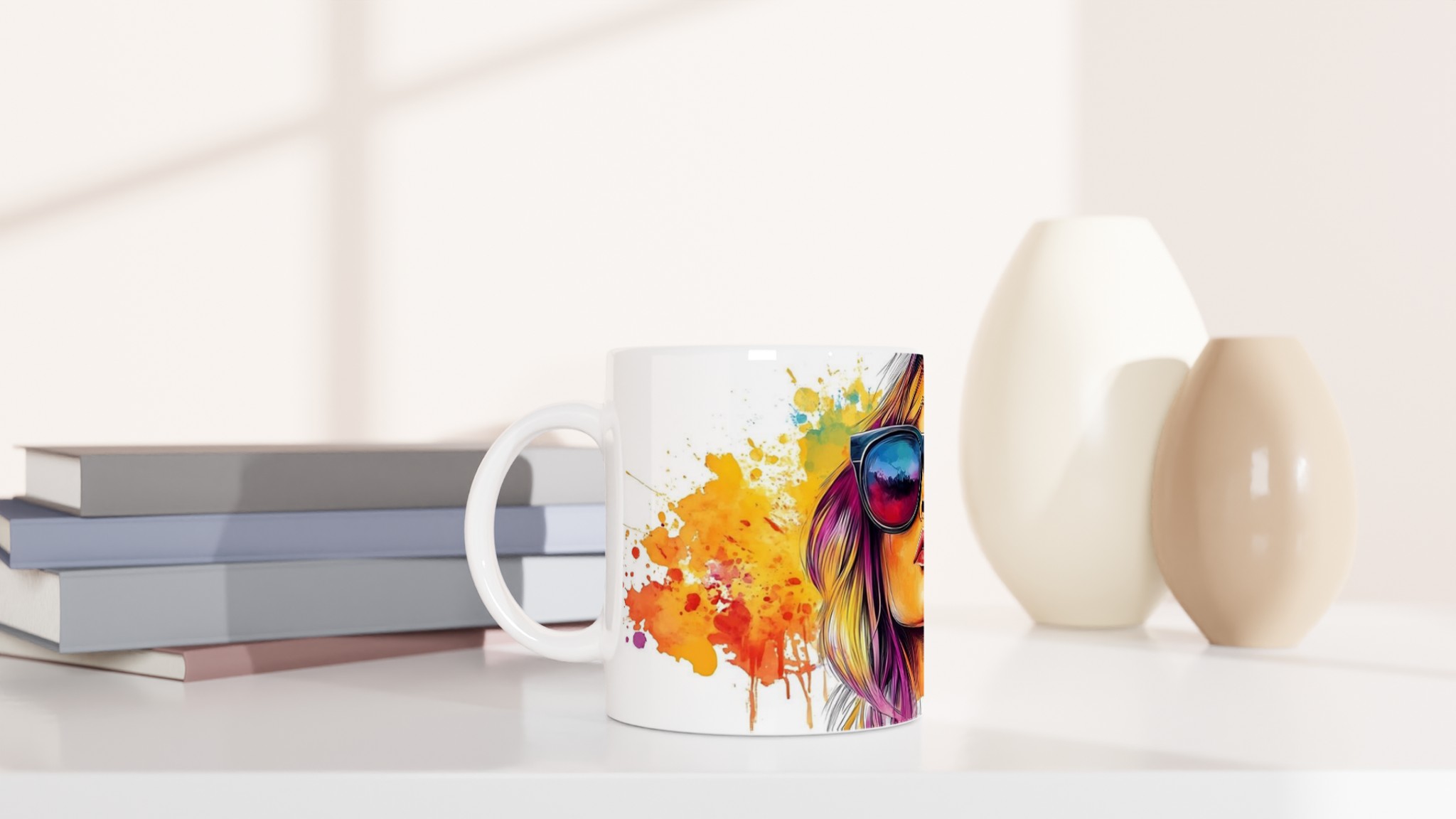 Lyft varje kaffestund med vår premium keramikmugg – stilren, hållbar och skapad för att låta ditt motiv glänsa. Den blanka vita ytan ger ett skarpt och levande tryck som verkligen sticker ut, oavsett om det är en personlig design, ett roligt citat eller en present till någon du tycker om. Inspirerad av konstnärliga uttryck med färgstarka stänk och modern attityd, är denna mugg mer än bara en kopp – den är en förlängning av din personlighet och kreativitet.