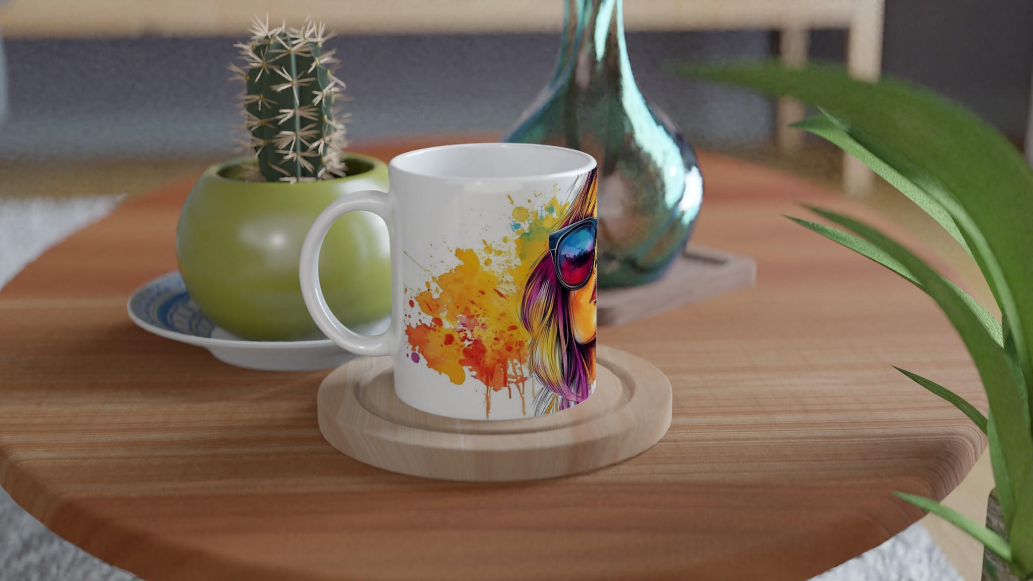 Konstnärlig Keramisk Mugg 11oz – Uttryck Din Stil med Levande Färgstänk & Personliga Motiv