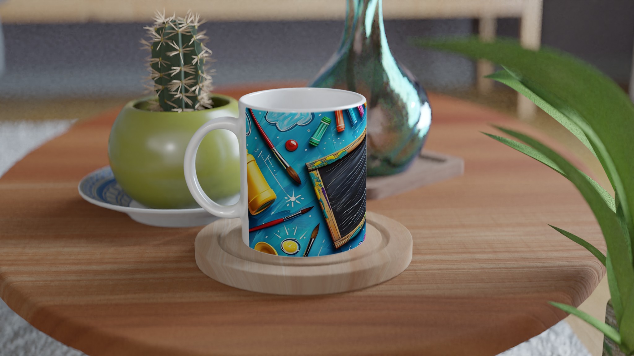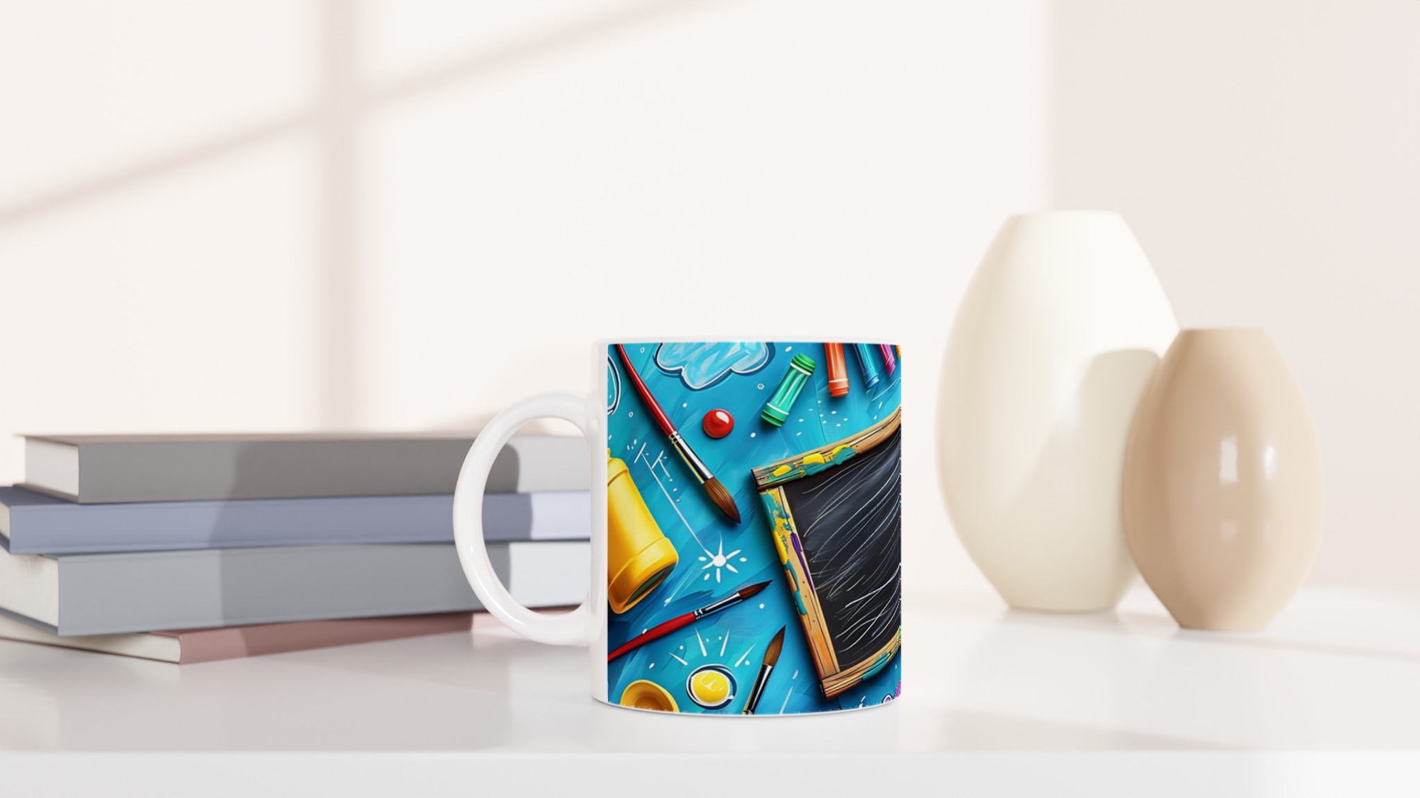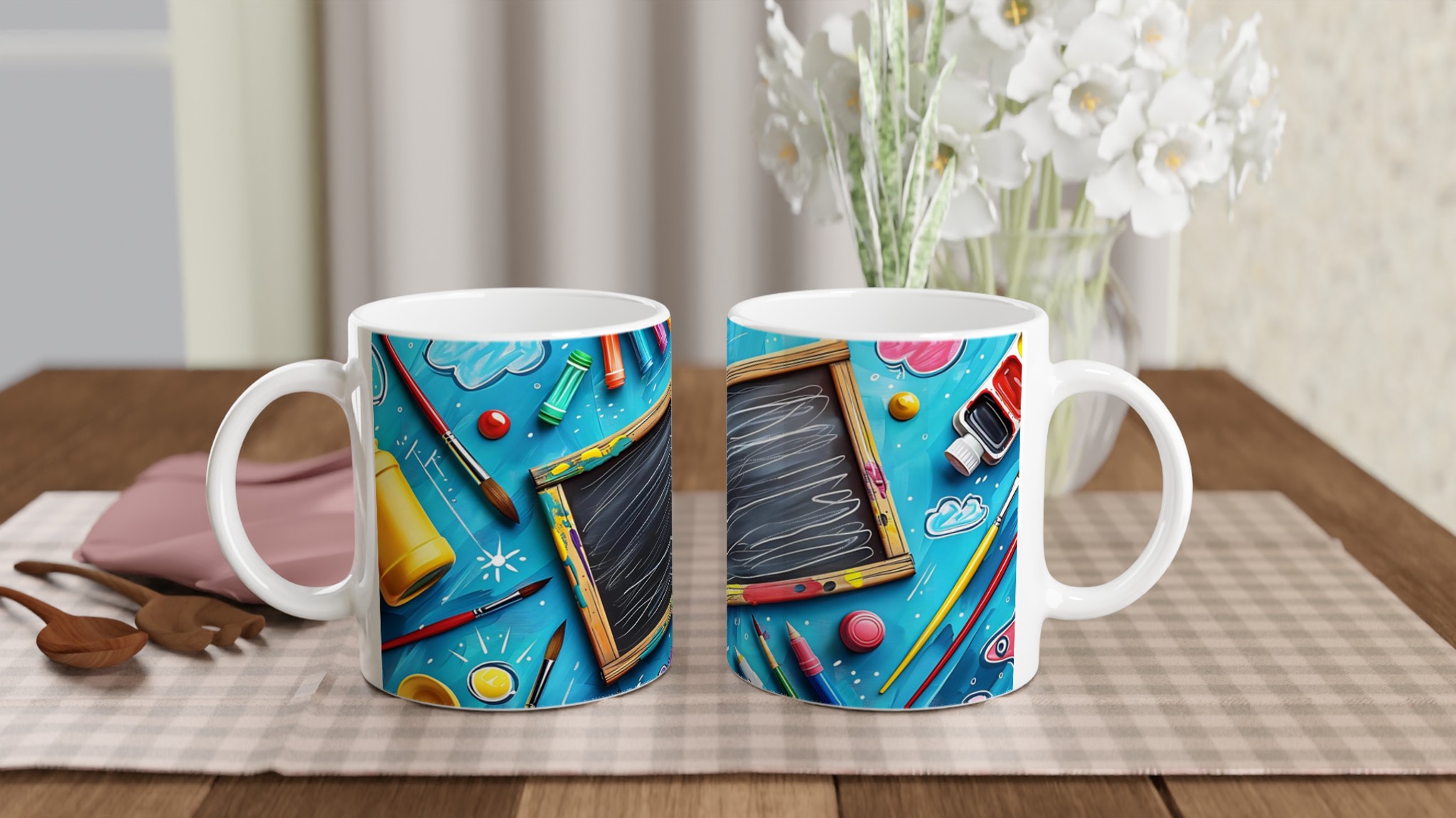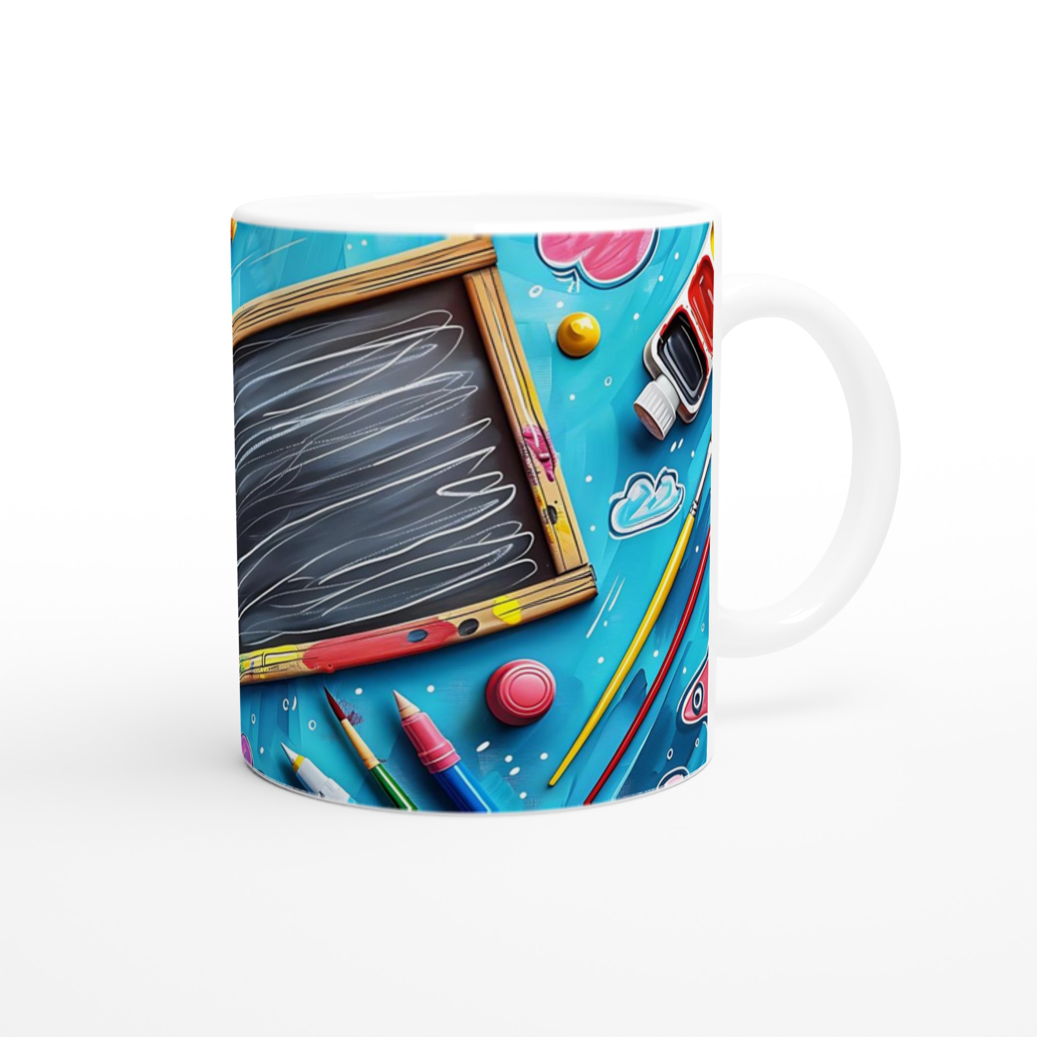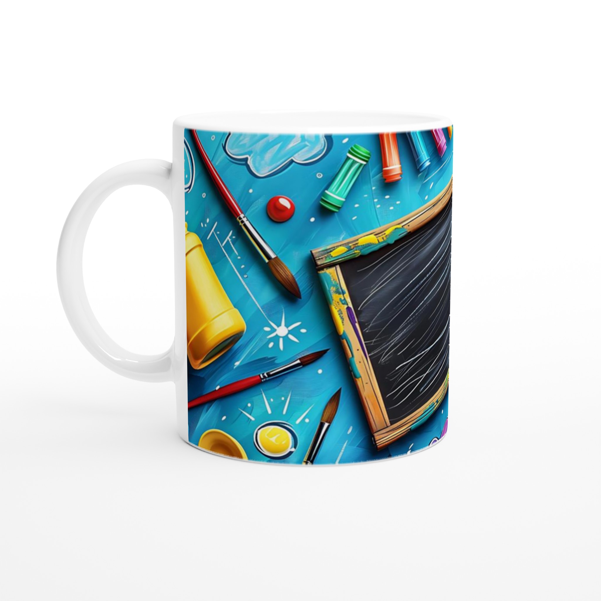 Väck din inre konstnär med vår livfulla keramiska mugg, en hyllning till färg och kreativitet som snabbt blir din nya vardagsfavorit! Inspirerad av en palett av glada färger och lekfulla penseldrag, är denna mugg perfekt för morgonkaffet, kvällens varma choklad eller när du bara vill njuta av en kopp te. Den blanka vita ytan framhäver tryckets klara och levande färger, som håller sig fina även efter många turer i mikron och diskmaskinen, vilket gör varje klunk till en liten konstupplevelse.