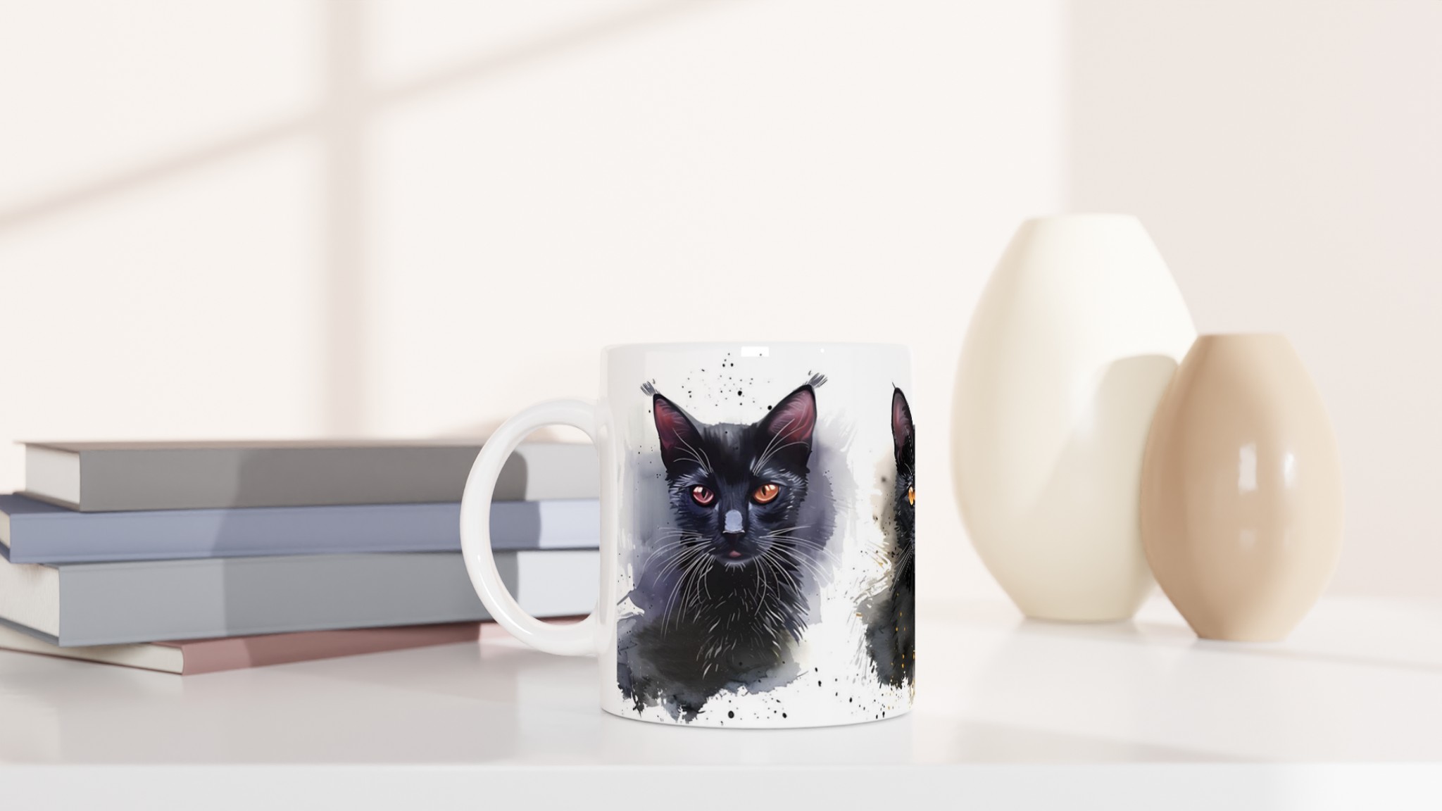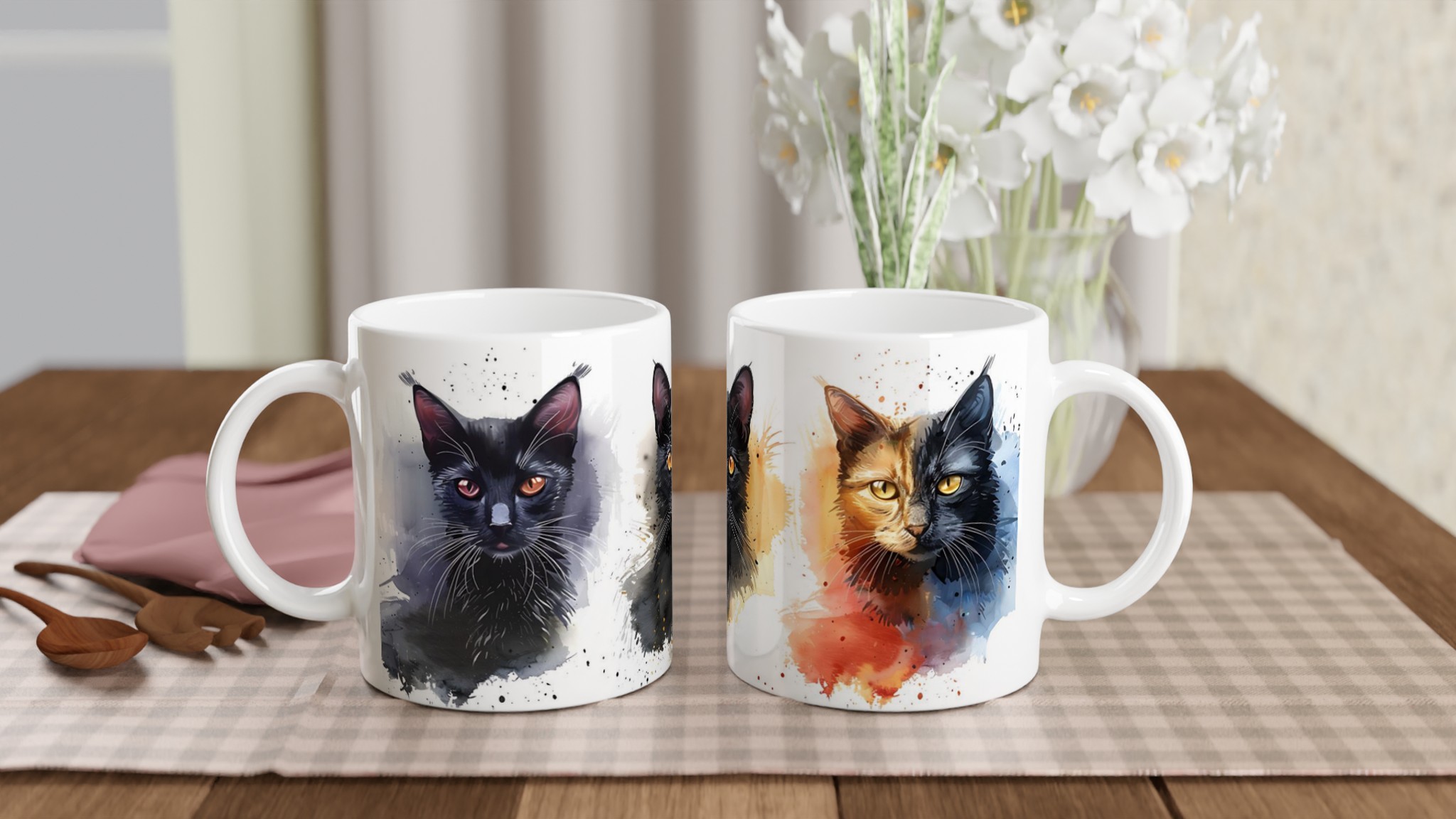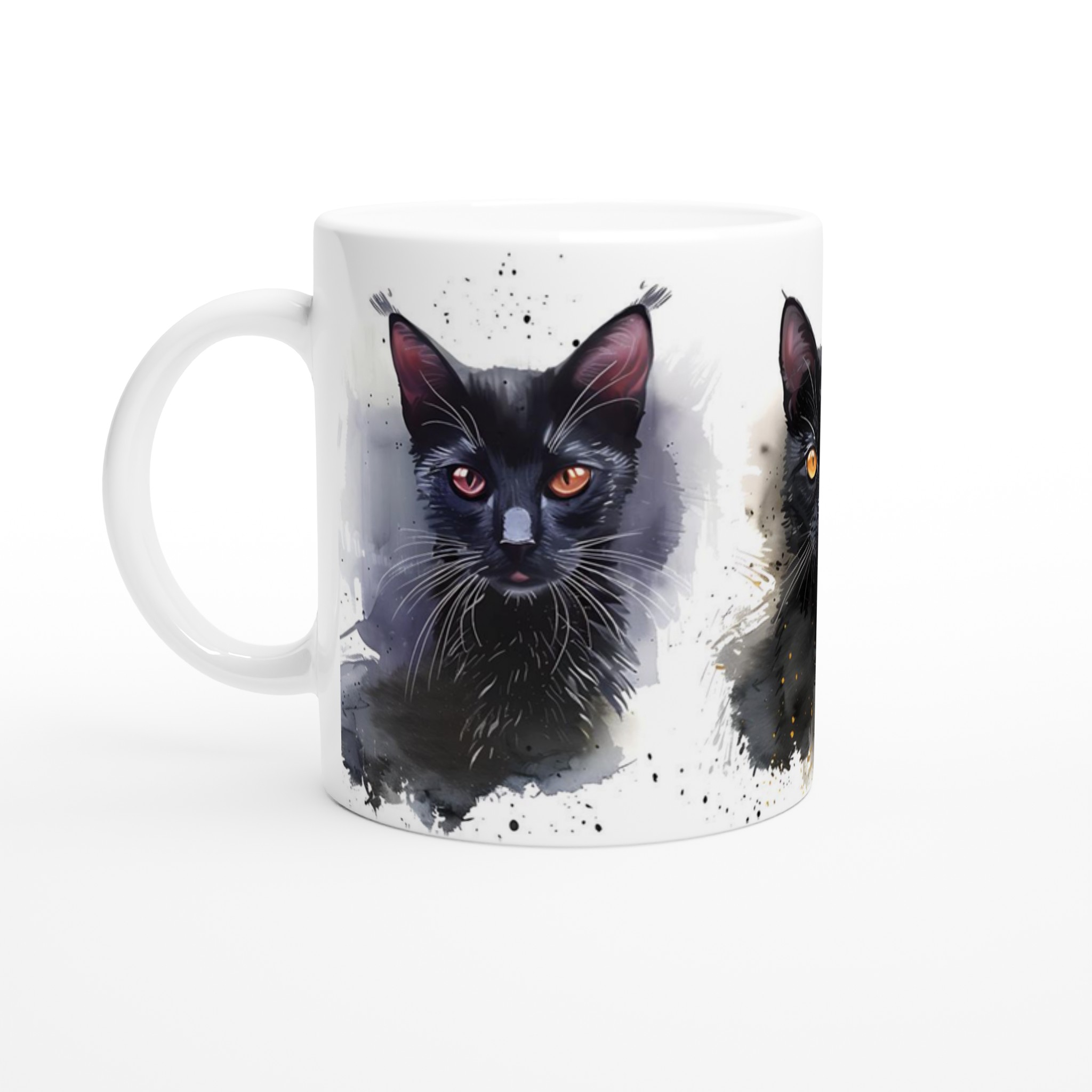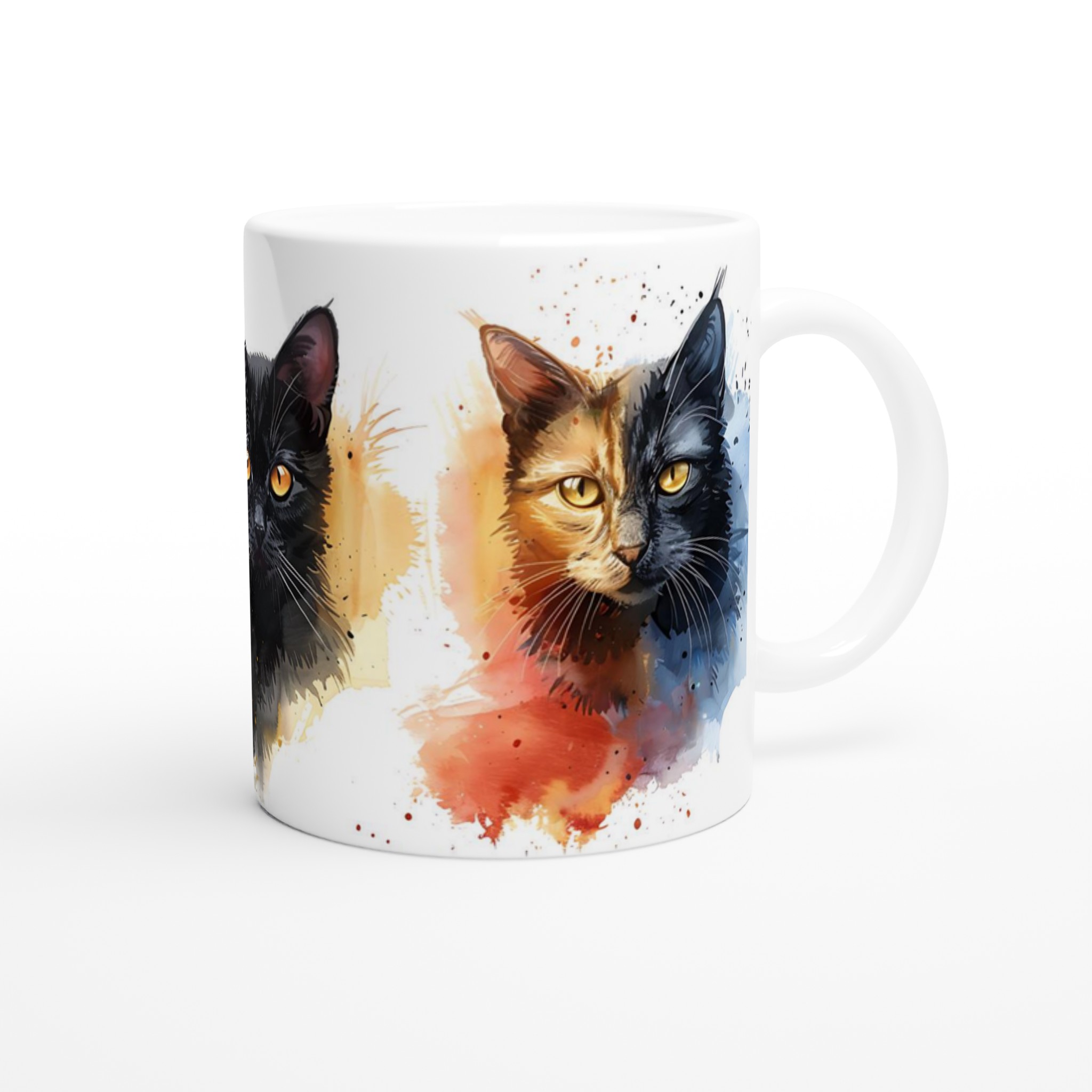 Låt din morgonkaffestund bli lite mer magisk med denna underbara keramiska mugg, prydd med livfulla akvarellillustrationer av charmiga katter. Varje klunk blir en hyllning till det konstnärliga och det mysiga, perfekt för dig som älskar katter och uppskattar en touch av färg i vardagen. Denna mugg är inte bara en fröjd för ögat, den är också otroligt praktisk och designad för att stå emot tidens tand.