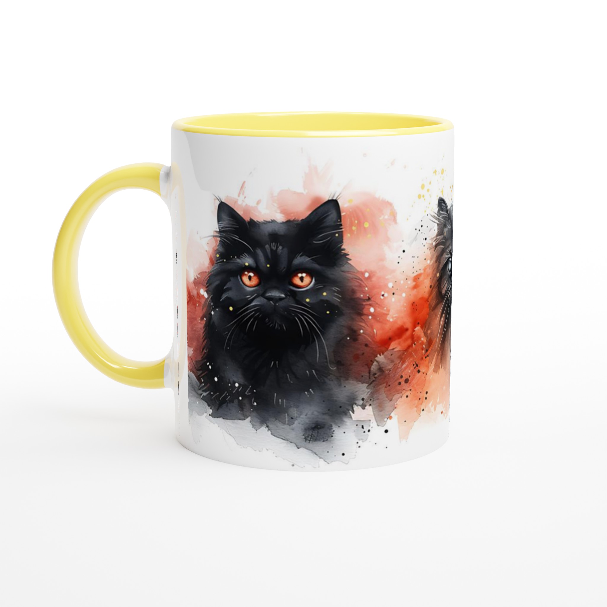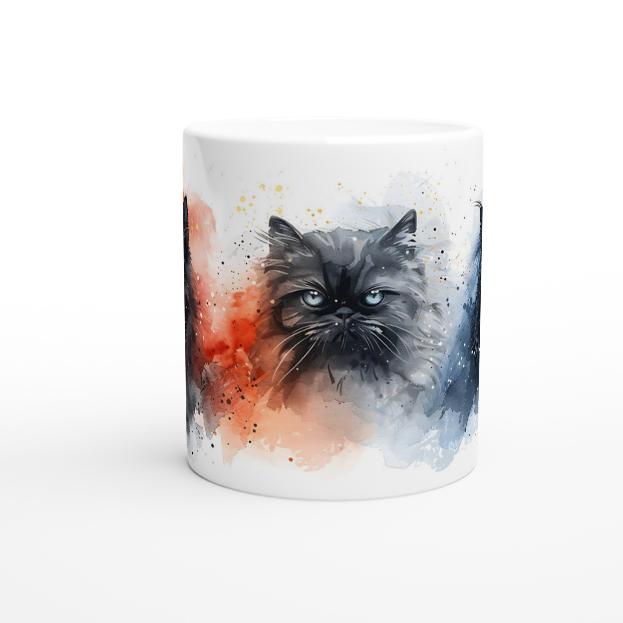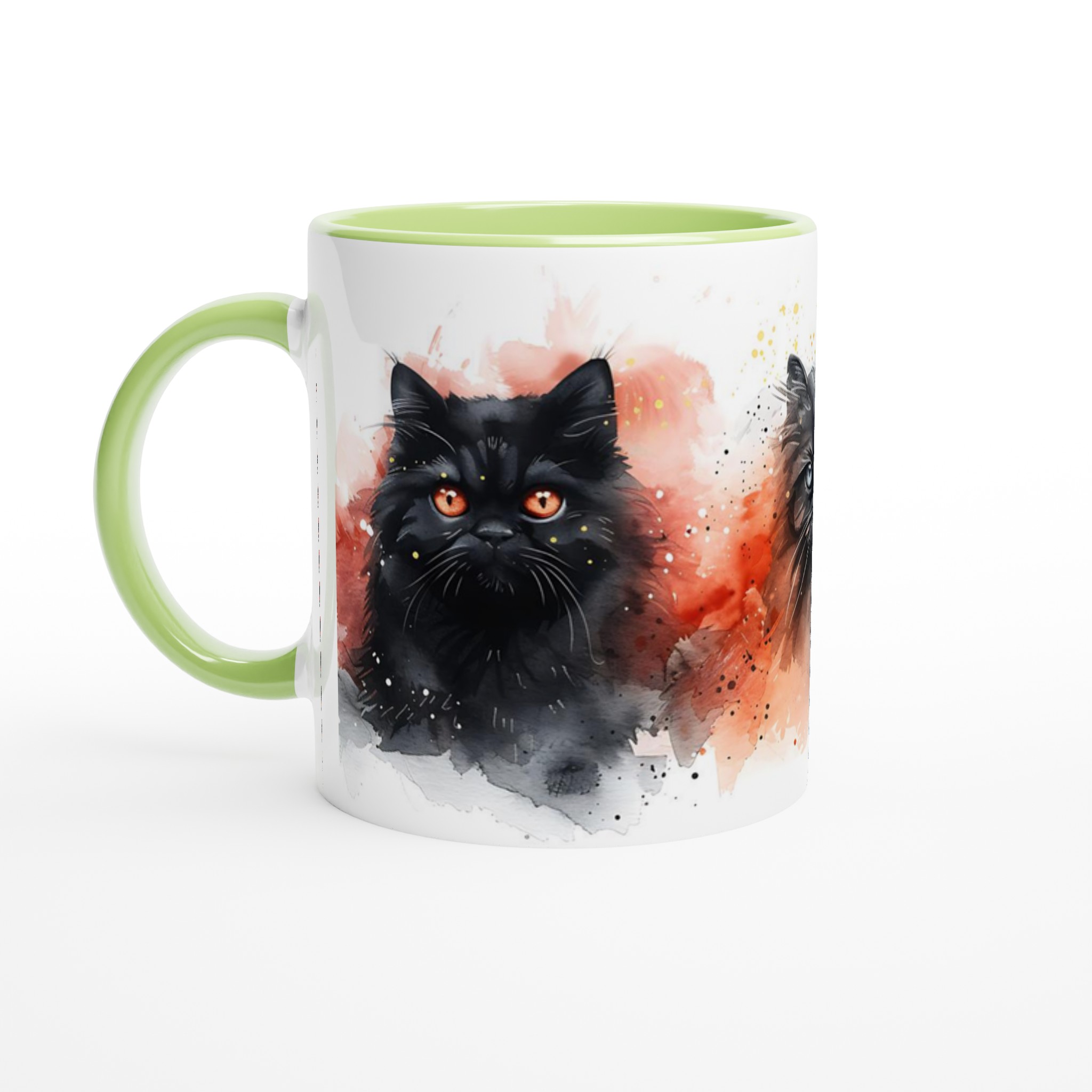Fånga magin i varje klunk med vår unika keramiska mugg, prydd med en fantastisk akvarellillustration av mystiska, lurviga katter. Denna stilrena mugg blir snabbt en vardagsfavorit, perfekt för morgonkaffet, kvällens varma choklad, eller när du bara vill njuta av en kopp te i gott sällskap av din nya favoritkatt.
