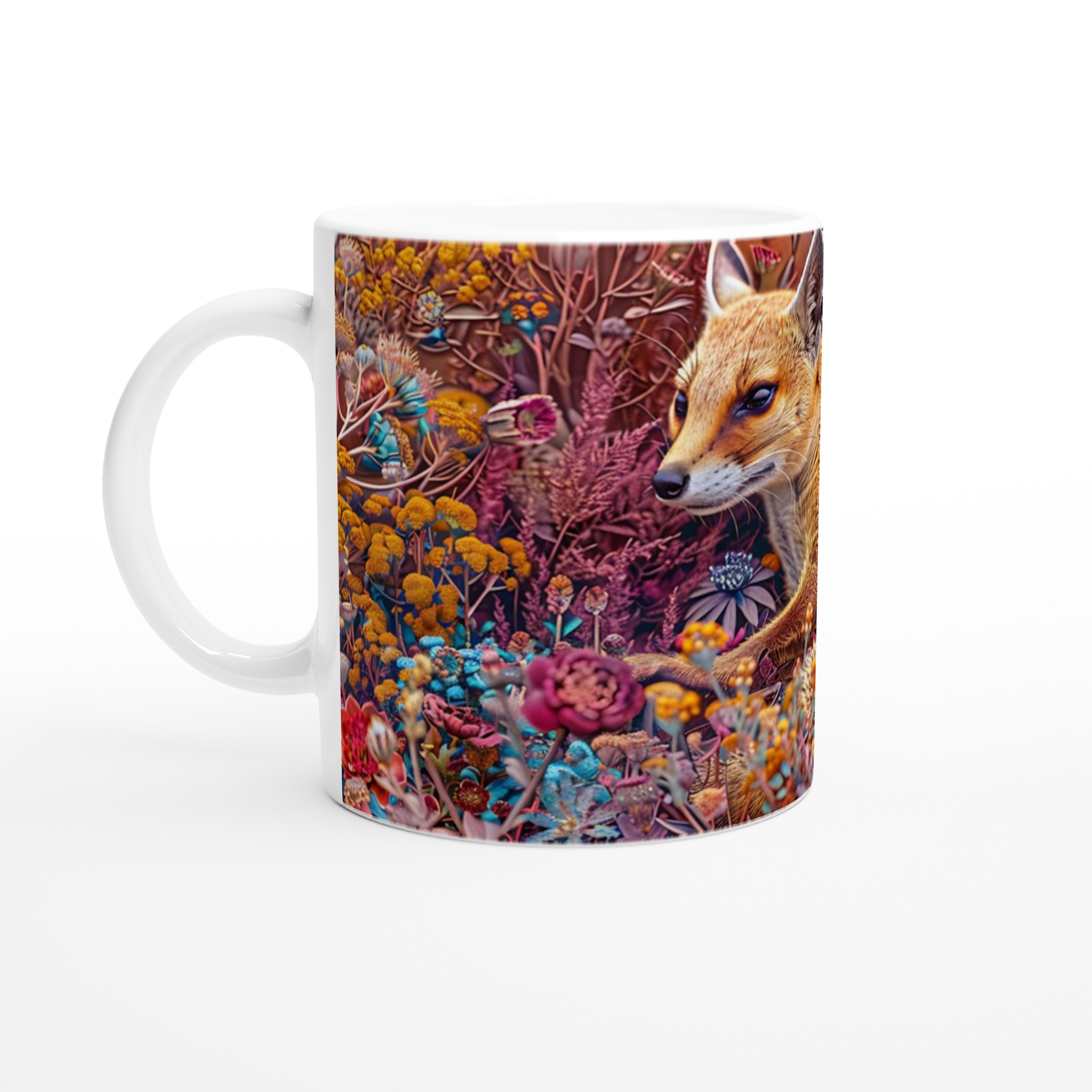 Inspirerad av naturens mystik och färgpalett, presenterar vi en mugg med en förtrollande illustration av en räv omgiven av livfulla blommor. Denna design fångar en känsla av lugn och vild skönhet, perfekt för naturälskaren eller den som uppskattar konstnärliga motiv. Den blanka vita ytan ger ett skarpt och levande tryck som verkligen sticker ut, oavsett om det är en personlig design, ett roligt citat eller en present till någon du tycker om.