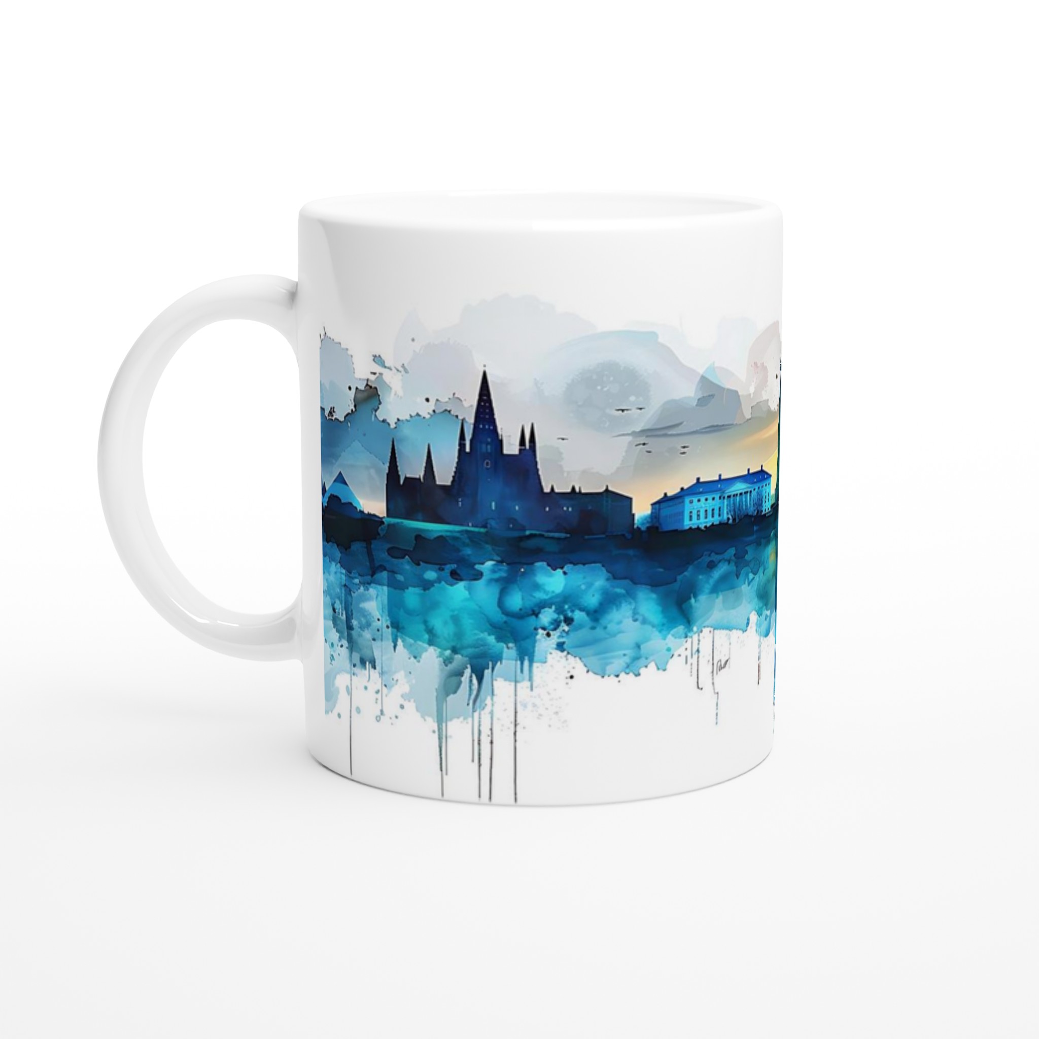 Denna unika mugg fångar essensen av stadens puls med en dynamisk akvarellsilhuett, där den svala lugnet av blå toner möter de varma, energiska nyanserna av rött och orange. Varje detalj, från ikoniska byggnader till abstrakta färgstänk, skapar en levande känsla som förvandlar din dryckesupplevelse till en konstnärlig stund. Den blanka vita ytan ger ett skarpt och levande tryck som verkligen sticker ut, oavsett om det är en personlig design, ett roligt citat eller en present till någon du tycker om.
