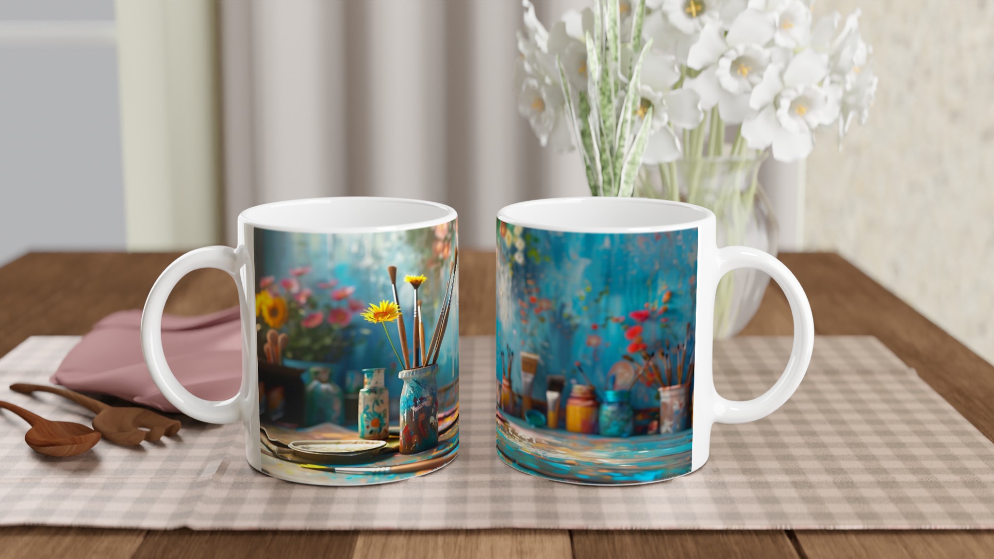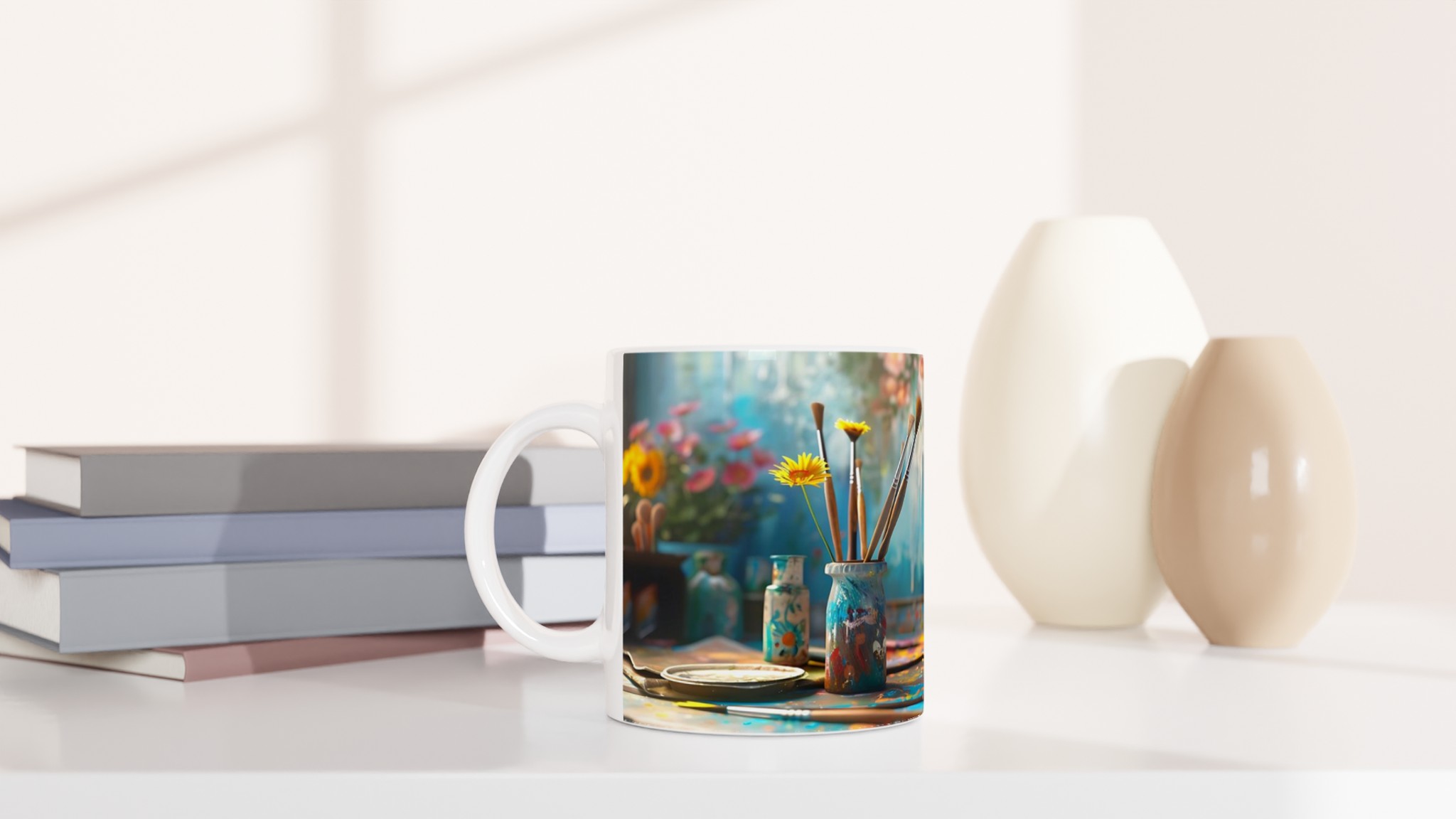 Vakna upp till inspiration varje dag med vår ”Konstnärsdrömmen” keramiska mugg. Föreställ dig en kreativ verkstad fylld med livfulla färger och penseldrag – den känslan har vi fångat i denna unika design. Perfekt för morgonkaffet, kvällens varma choklad eller när du bara vill njuta av en kopp te medan du drömmer om ditt nästa mästerverk.