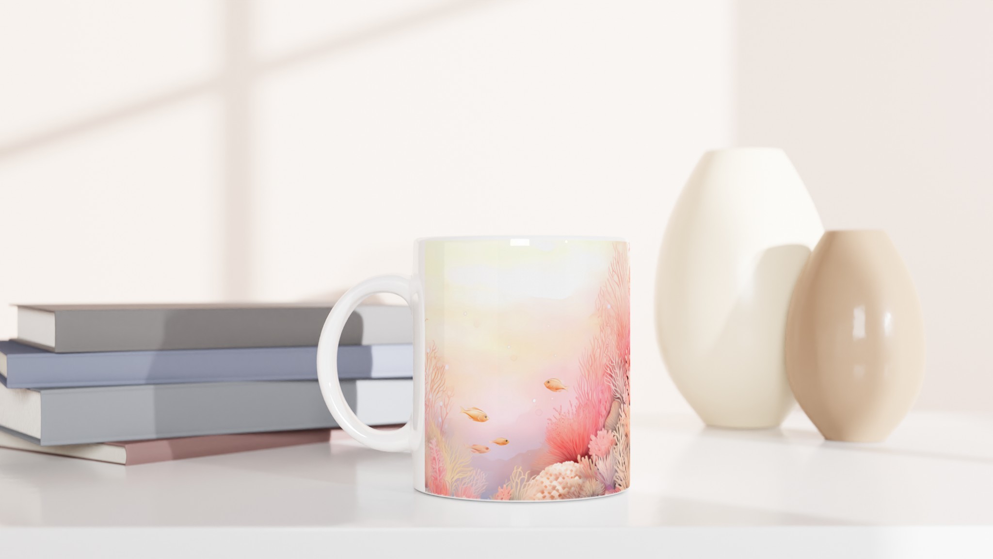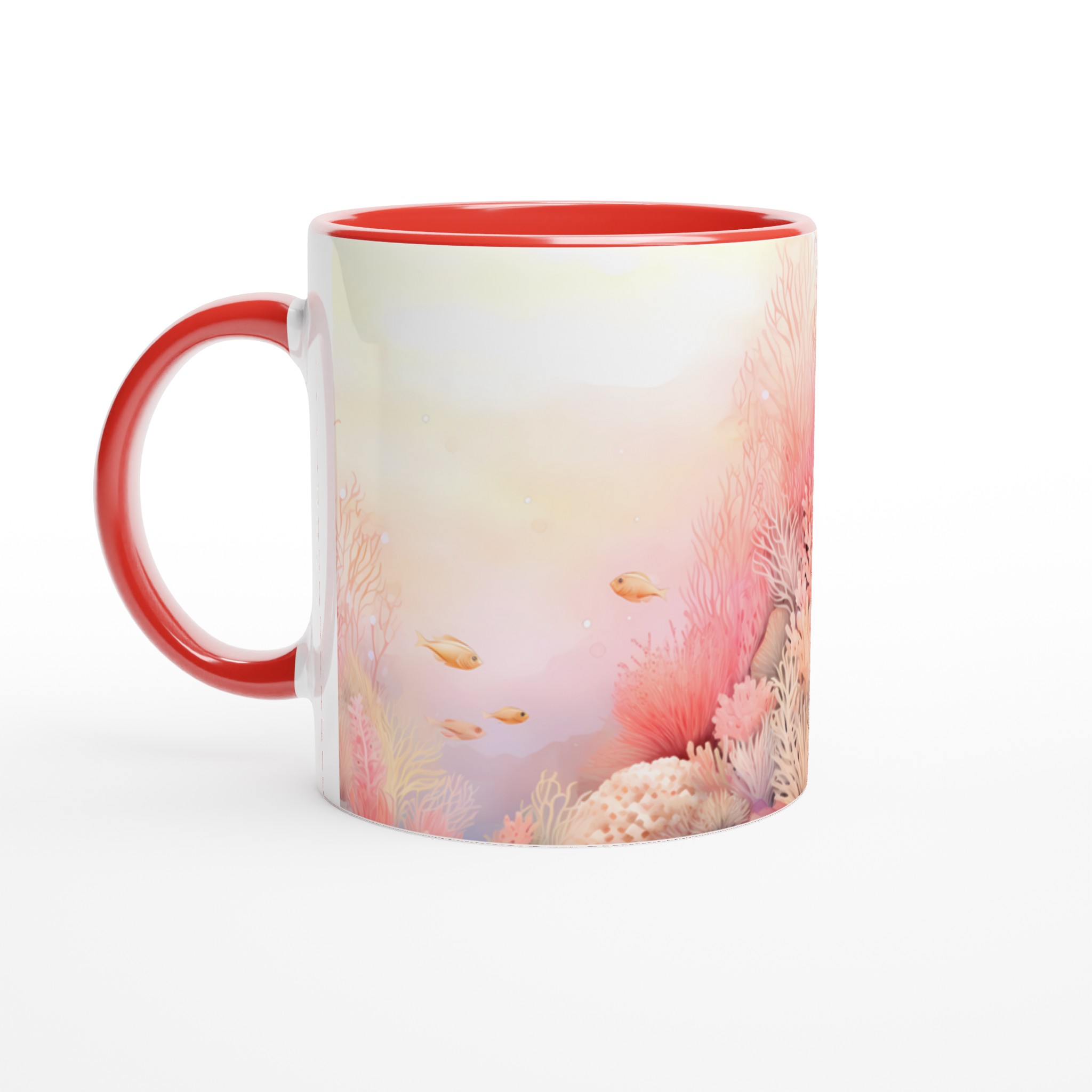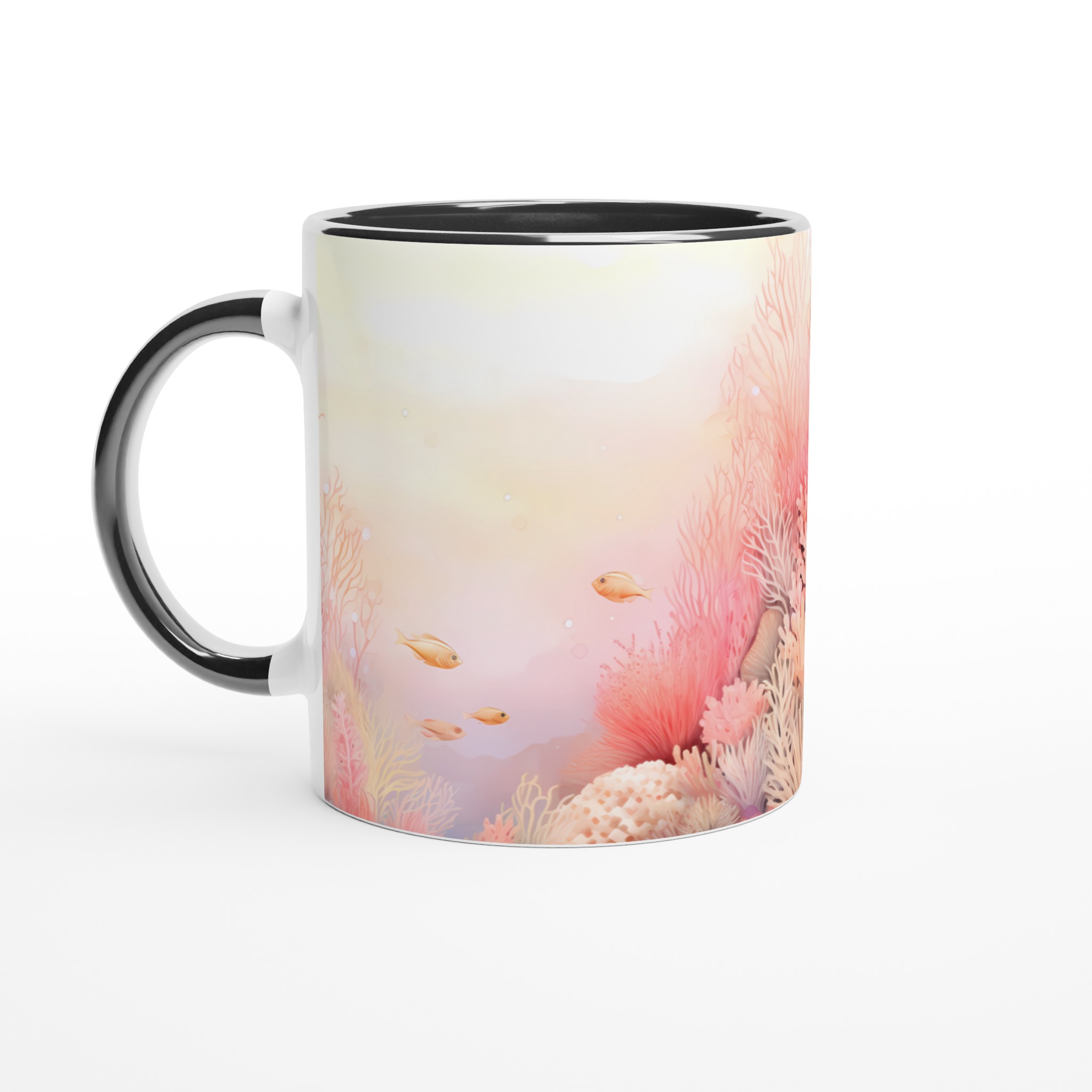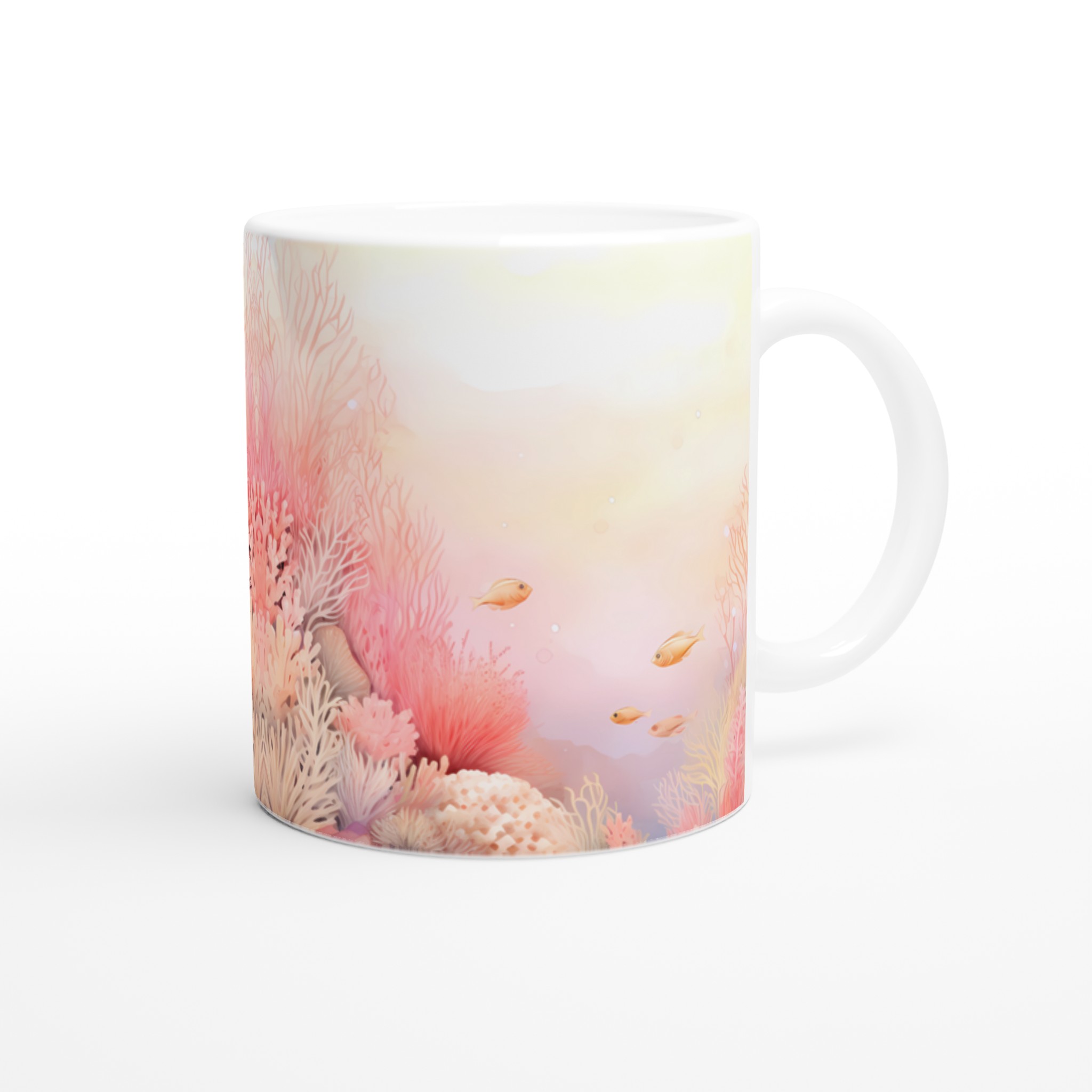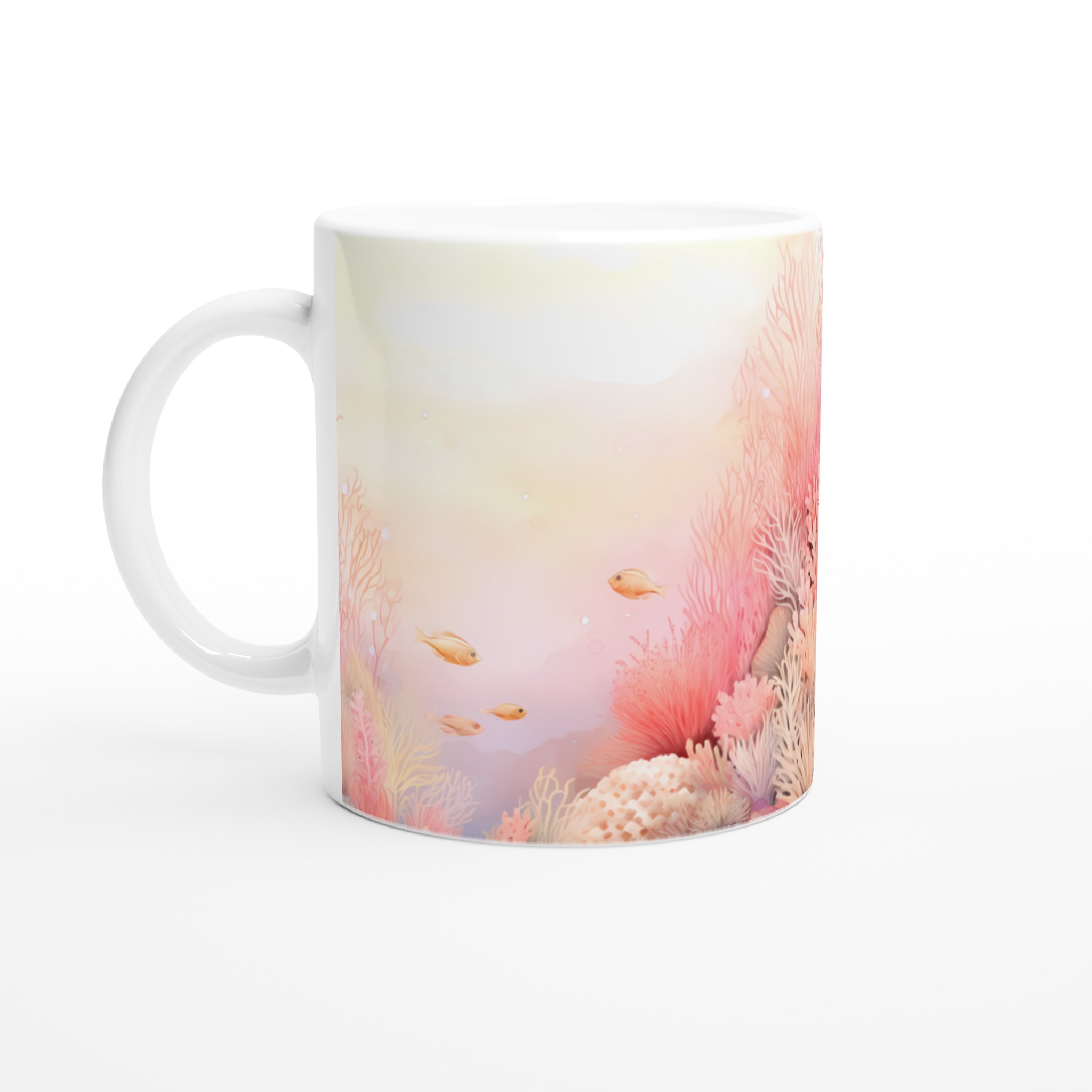 Låt dig svepas med till havets lugn med denna underbara keramiska mugg, prydd med ett drömskt akvarellmotiv av ett korallrev i varma, inbjudande toner. De mjuka rosa och persikofärgade korallerna, tillsammans med små simmande fiskar, skapar en känsla av ro och harmoni som är perfekt för att starta eller avsluta dagen. Den här stilrena muggen blir snabbt en vardagsfavorit. Perfekt för morgonkaffet, kvällens varma choklad eller när du bara vill njuta av en kopp te.