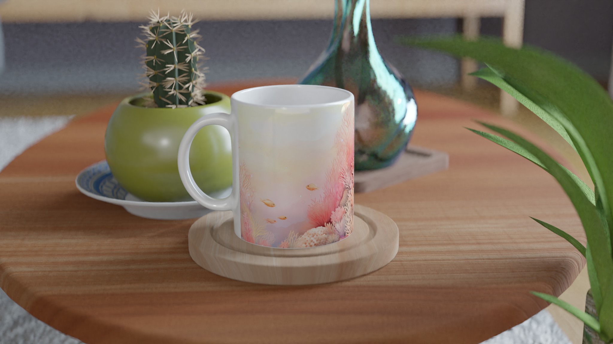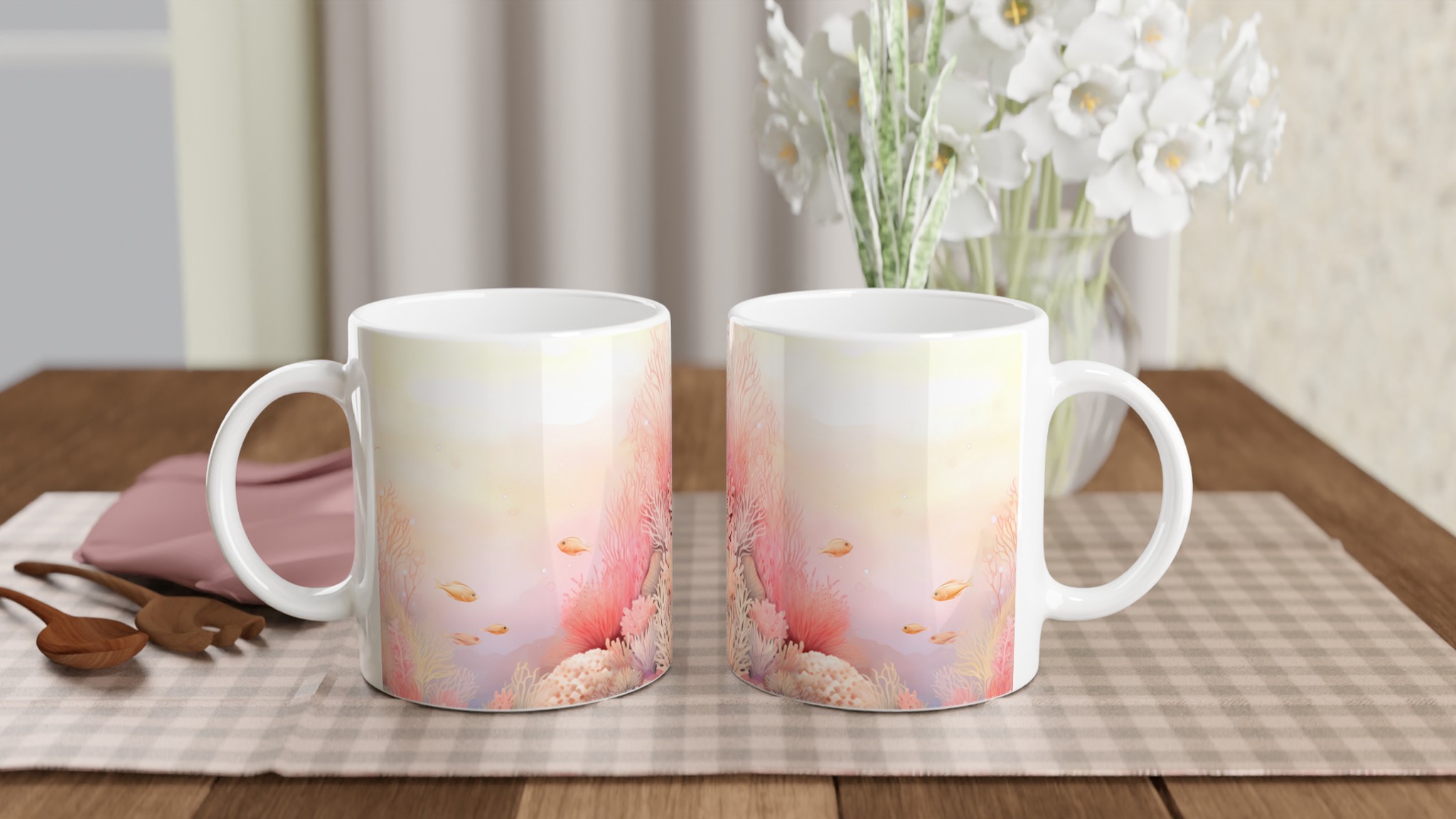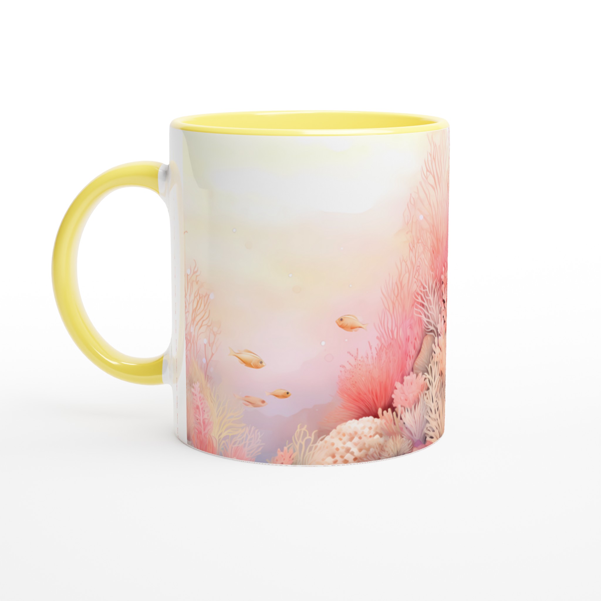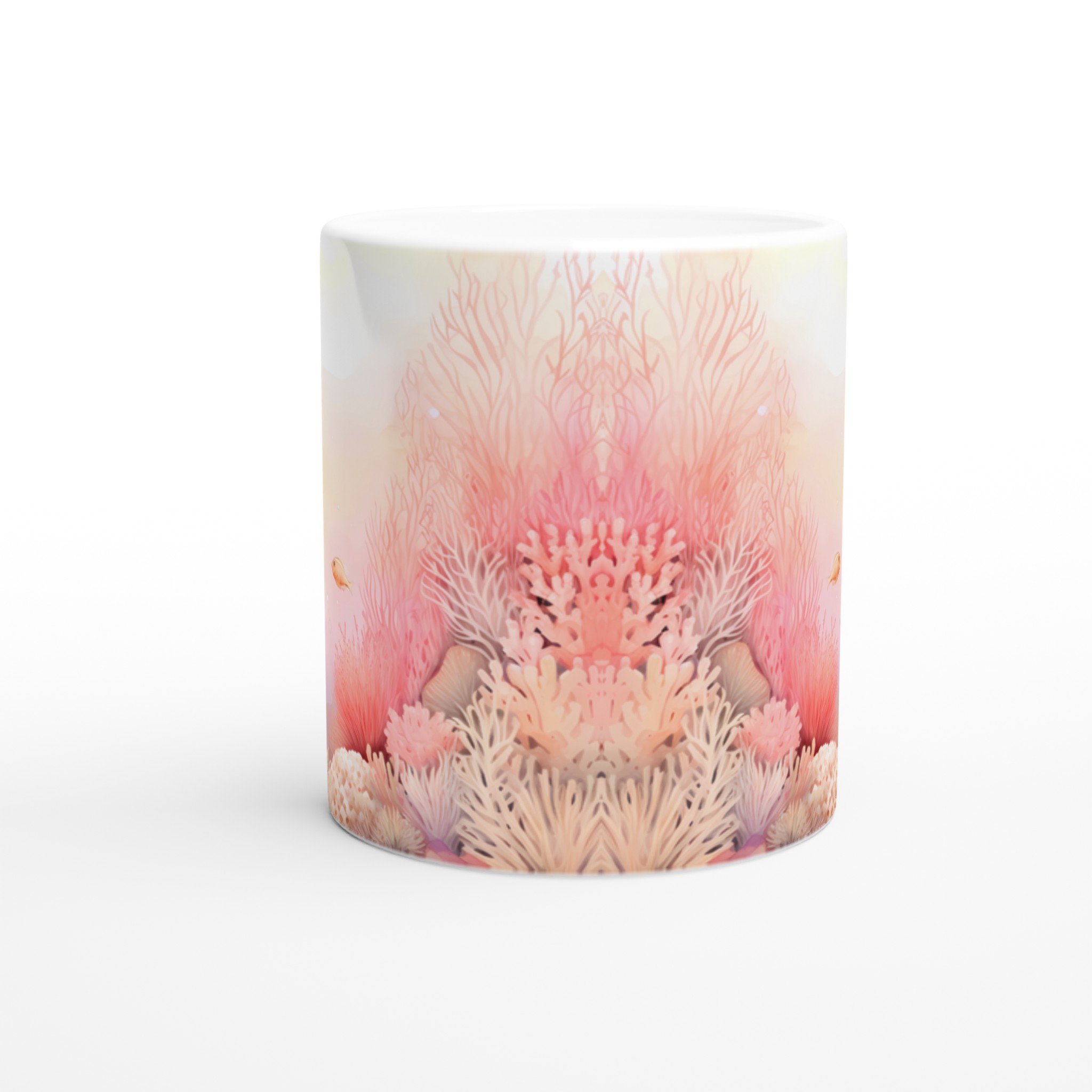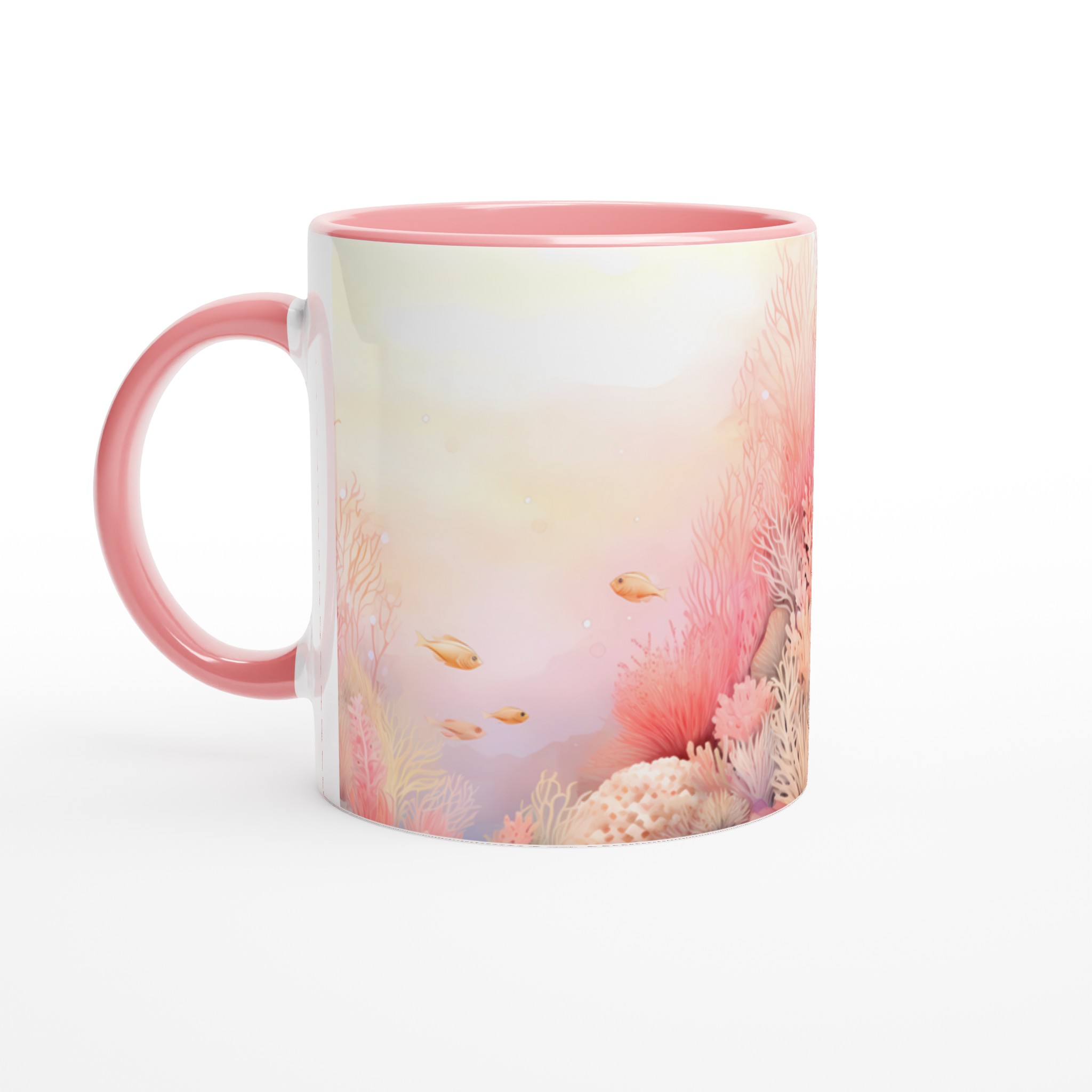 Låt dig svepas med till havets lugn med denna underbara keramiska mugg, prydd med ett drömskt akvarellmotiv av ett korallrev i varma, inbjudande toner. De mjuka rosa och persikofärgade korallerna, tillsammans med små simmande fiskar, skapar en känsla av ro och harmoni som är perfekt för att starta eller avsluta dagen. Den här stilrena muggen blir snabbt en vardagsfavorit. Perfekt för morgonkaffet, kvällens varma choklad eller när du bara vill njuta av en kopp te.