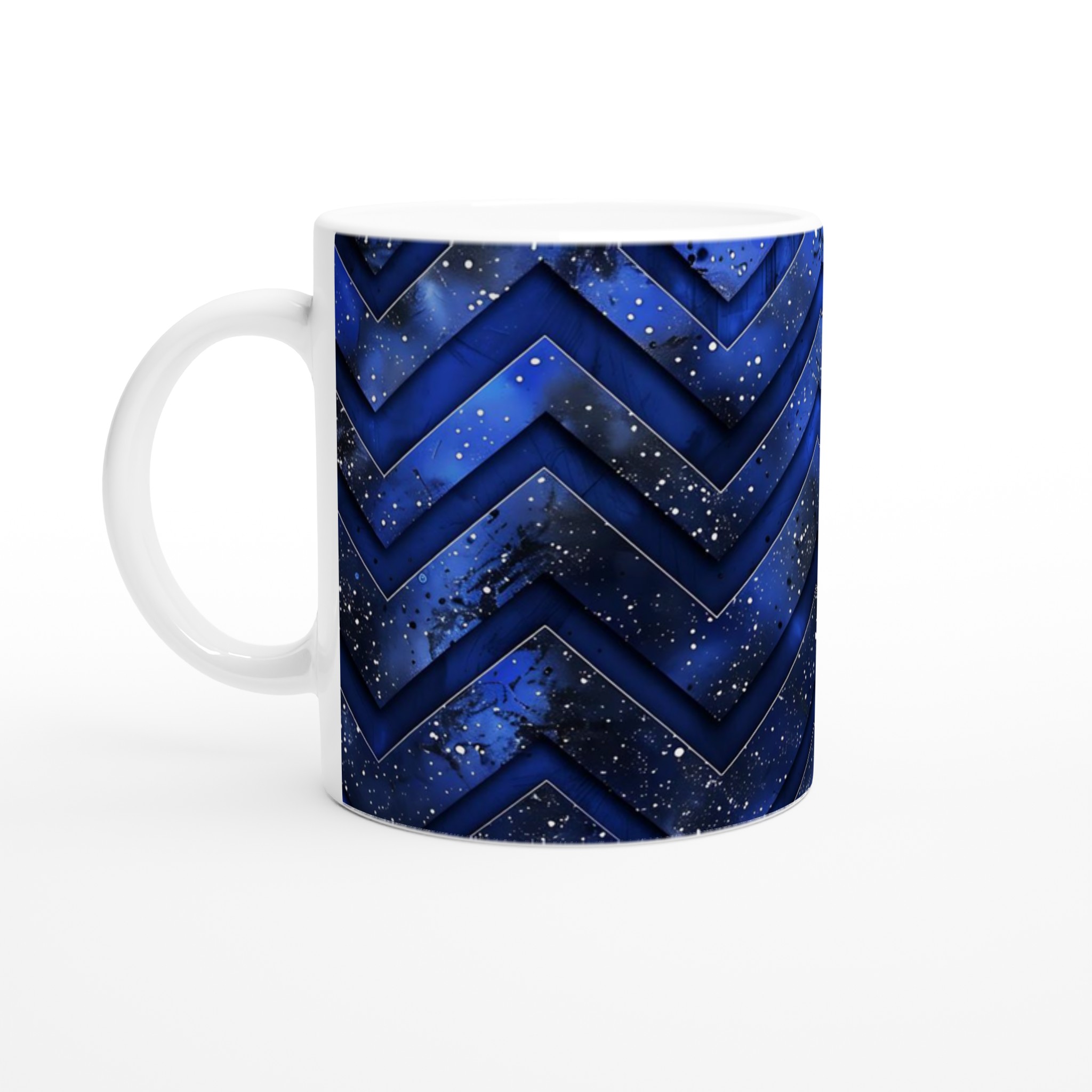 Inspirerad av den djupa, mystiska rymden med sina stjärnklara nätter och abstrakta chevronmönster, ger denna mugg en touch av kosmiskt under till din vardag. Den blanka vita ytan ger ett skarpt och levande tryck som verkligen sticker ut, oavsett om det är en personlig design, ett roligt citat eller en present till någon du tycker om.