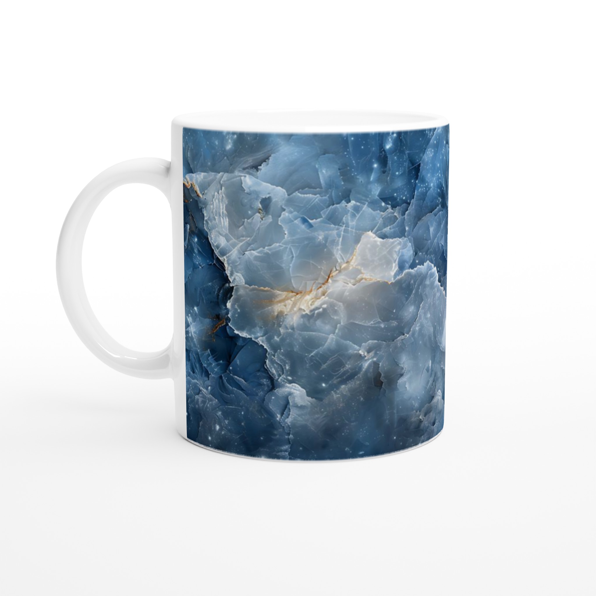 Inspirerad av djupet och mystiken i kosmiska blå nyanser med gnistrande stjärneffekter, tar denna mugg din dryckesupplevelse till en ny dimension. Den blanka ytan ger ett skarpt och levande tryck som verkligen sticker ut, oavsett om det är en personlig design, ett roligt citat eller en present till någon du tycker om.