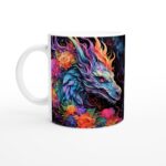 Låt din vardag blomstra med denna fängslande keramiska mugg, prydd med ett intrikat konstverk inspirerat av den djupaste natthimlen och dess mystiska blommor. Den livfulla färgpaletten av lysande rosa, djupblått, gyllene gult och orange förvandlar varje sipp till en stund av magi och ro. Den här stilrena keramiska muggen blir snabbt en vardagsfavorit. Perfekt för morgonkaffet, kvällens varma choklad eller när du bara vill njuta av en kopp te.