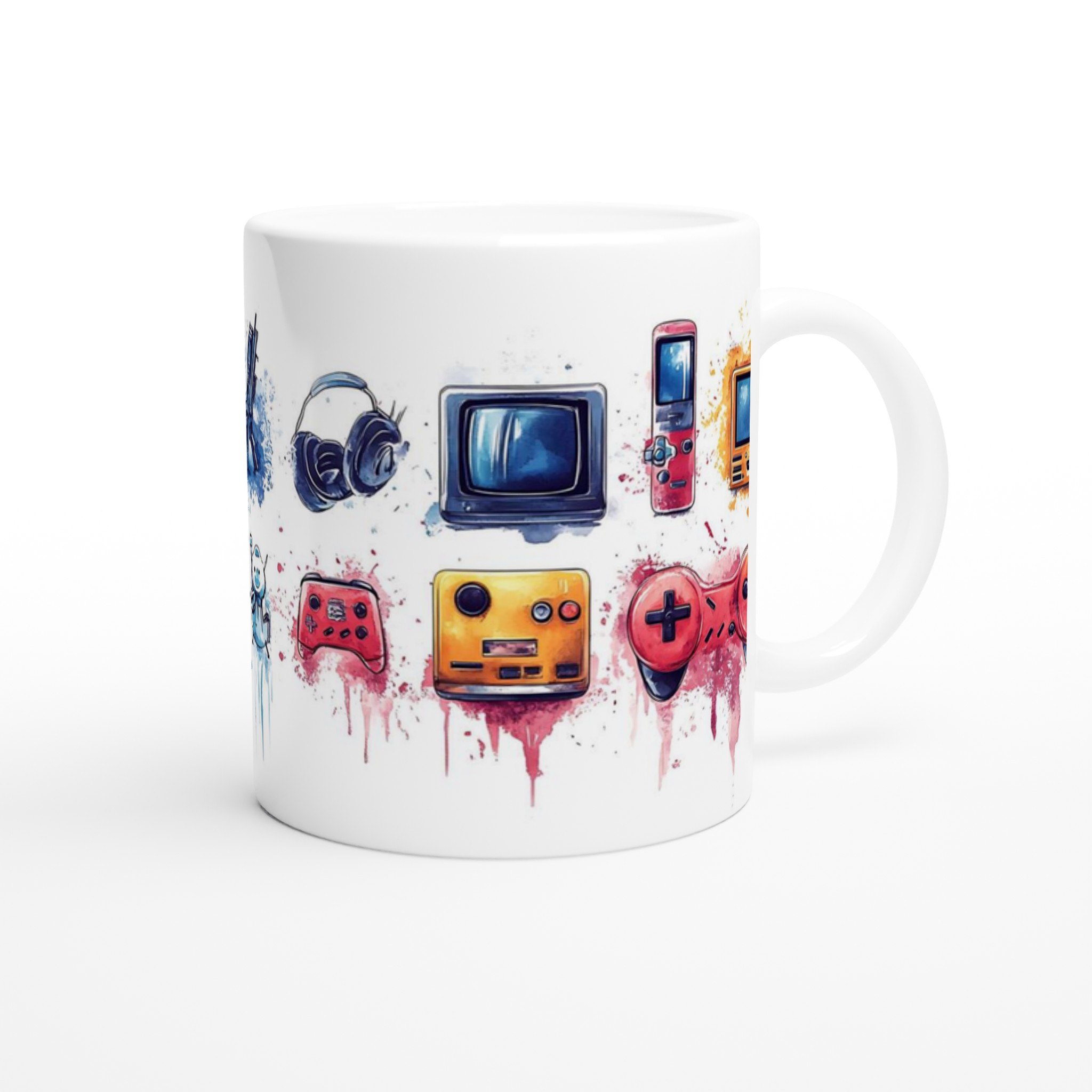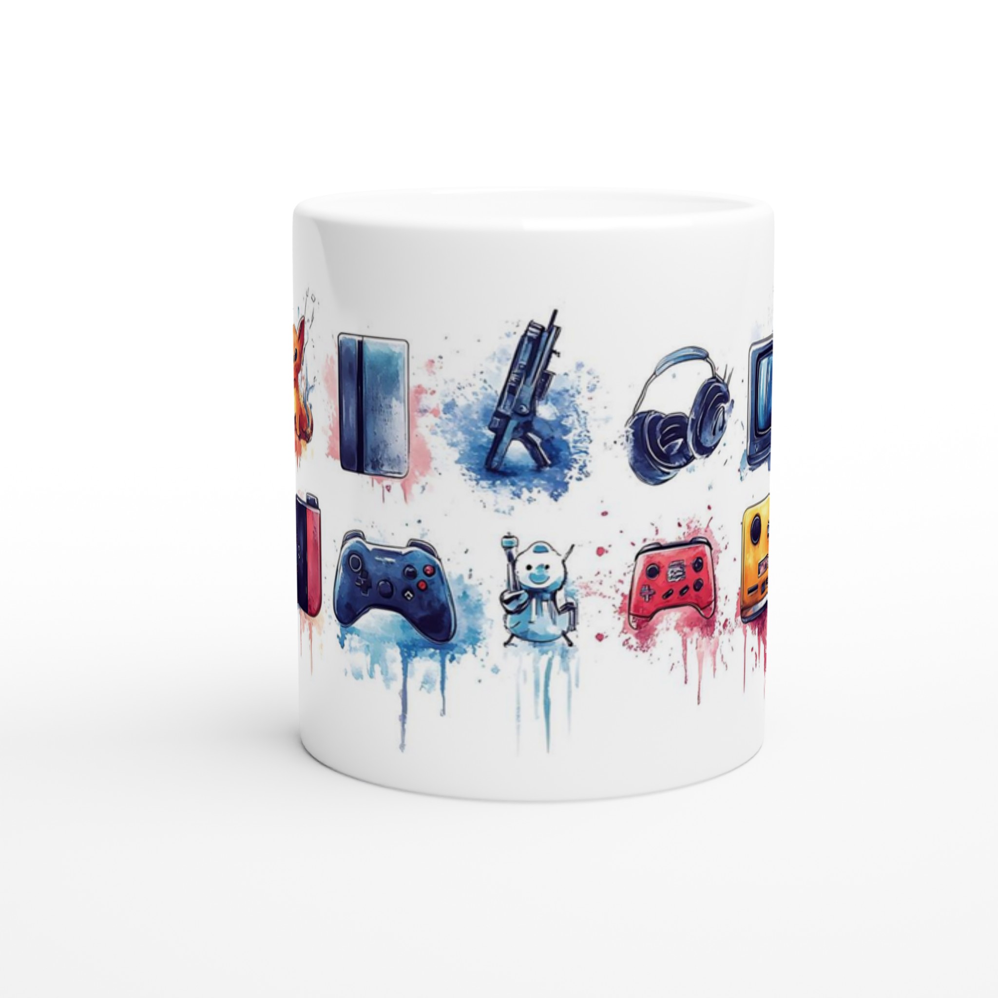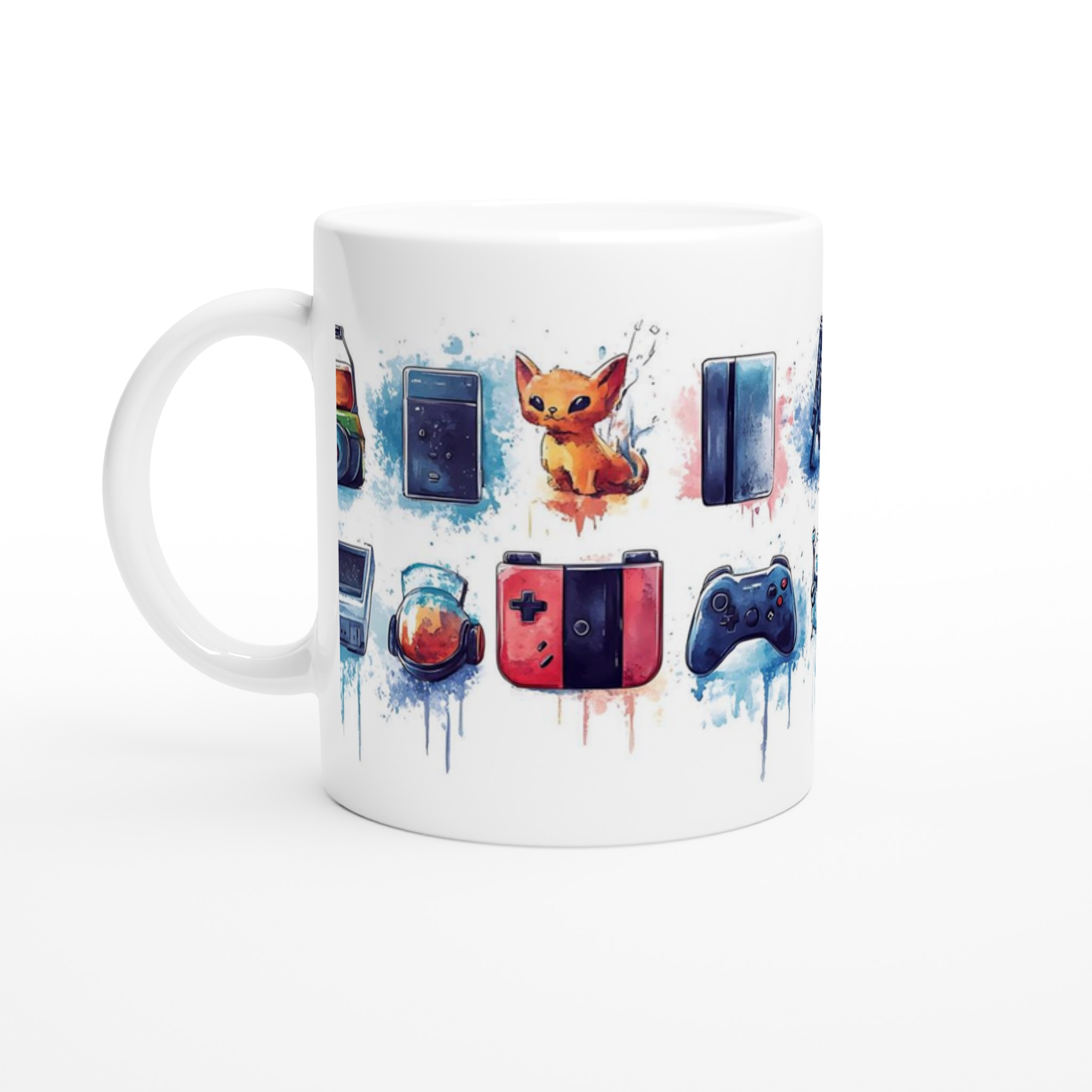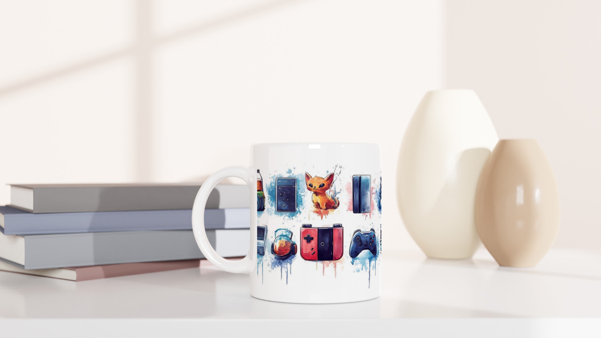 Inspirerad av den lekfulla och konstnärliga charmen hos vattenfärgsmålningar, fångar denna mugg essensen av kreativa uttryck och din passion för gaming eller unika prylar. Varje sip blir en upplevelse med din favoritdesign som poppar mot den högblanka ytan. Med en kapacitet på 11 oz (ca 3,25 dl) är den perfekt för morgonkaffe, te, varm choklad eller din favoritdryck på jobbet. En idealisk storlek för både hem och kontor.