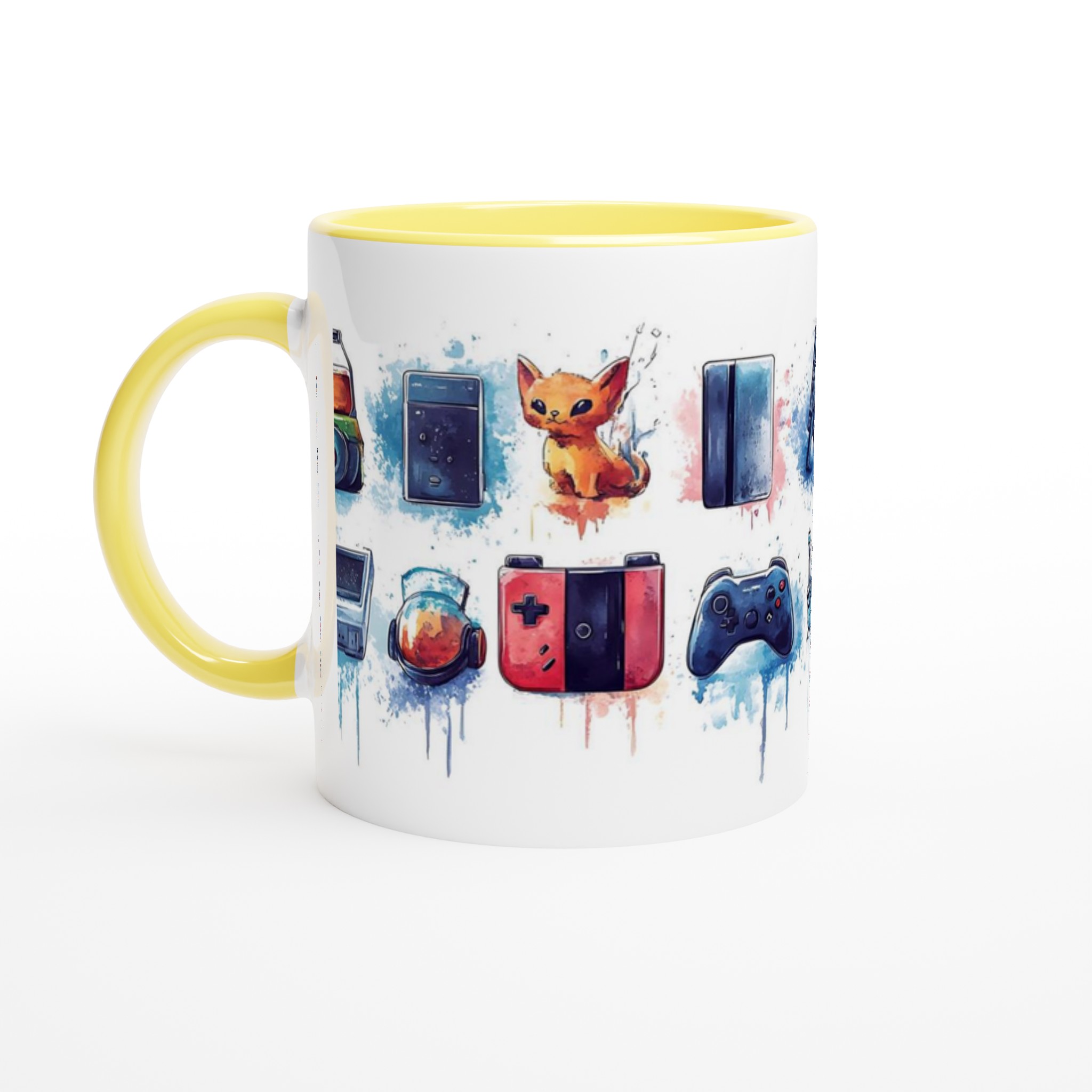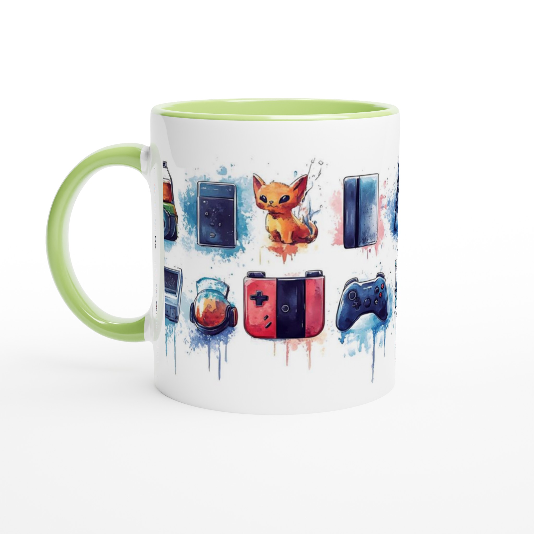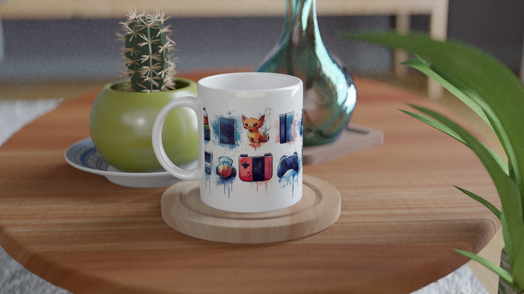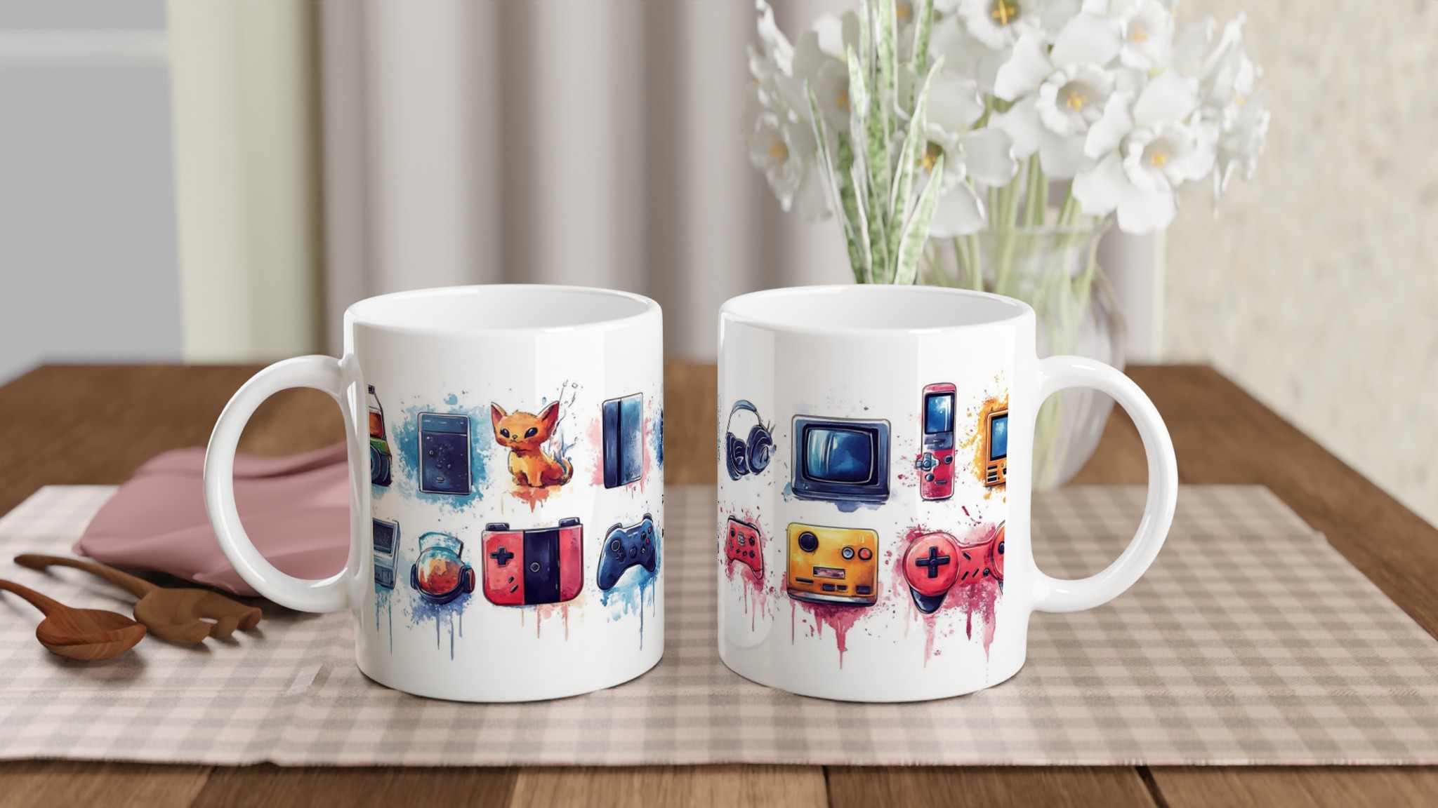 Inspirerad av den lekfulla och konstnärliga charmen hos vattenfärgsmålningar, fångar denna mugg essensen av kreativa uttryck och din passion för gaming eller unika prylar. Varje sip blir en upplevelse med din favoritdesign som poppar mot den högblanka ytan. Med en kapacitet på 11 oz (ca 3,25 dl) är den perfekt för morgonkaffe, te, varm choklad eller din favoritdryck på jobbet. En idealisk storlek för både hem och kontor.