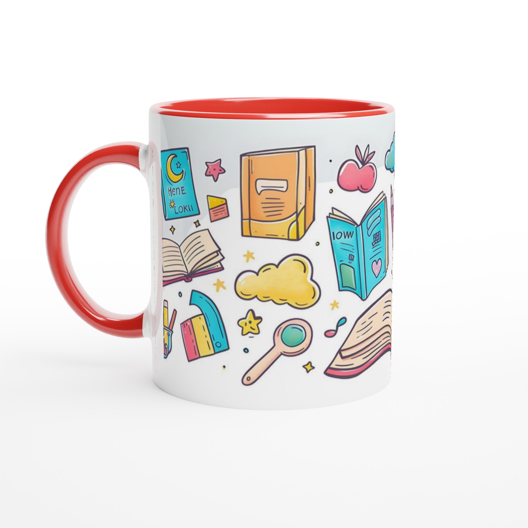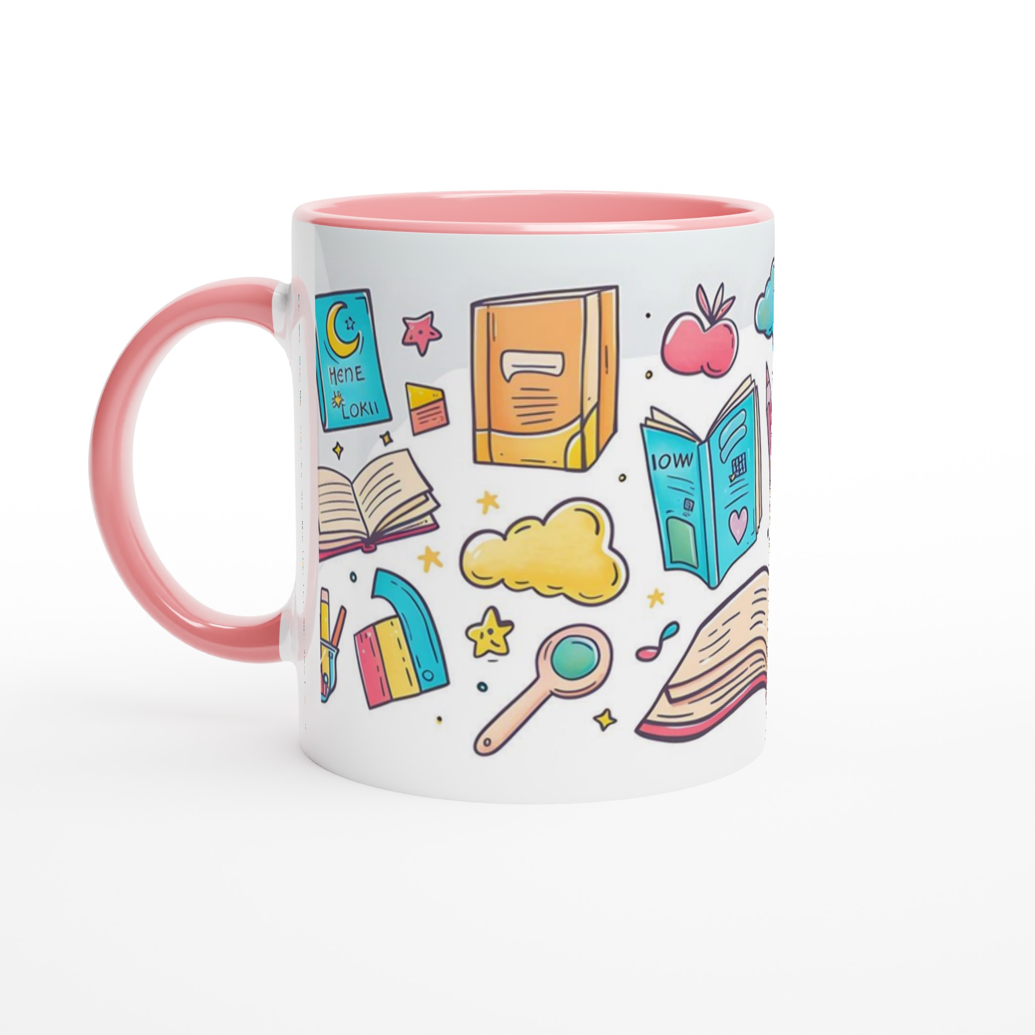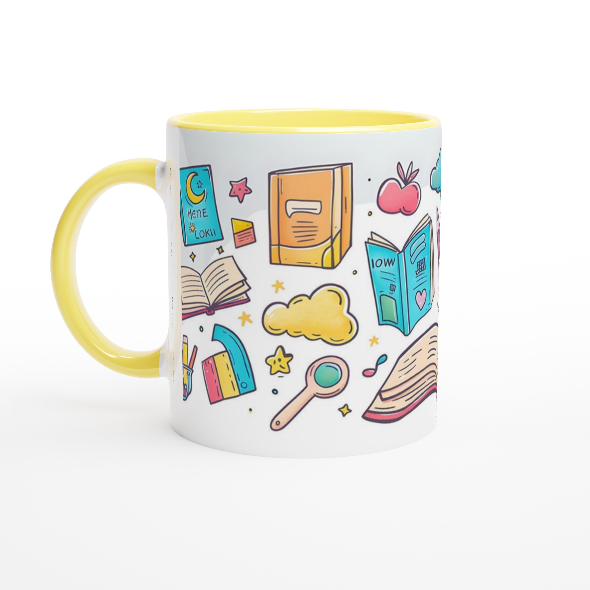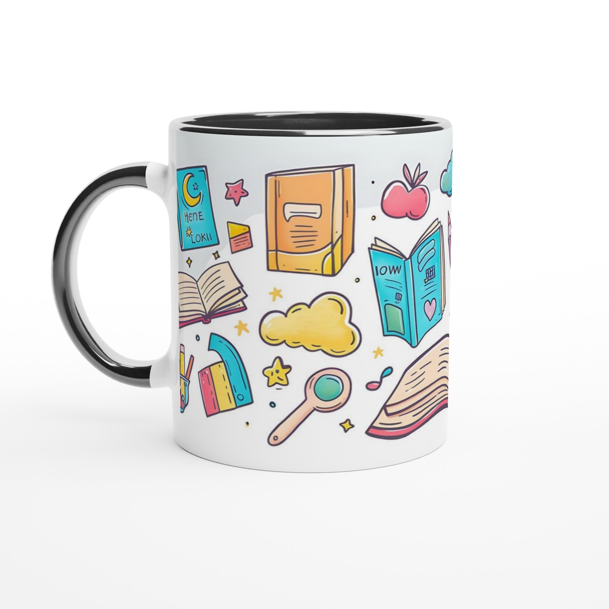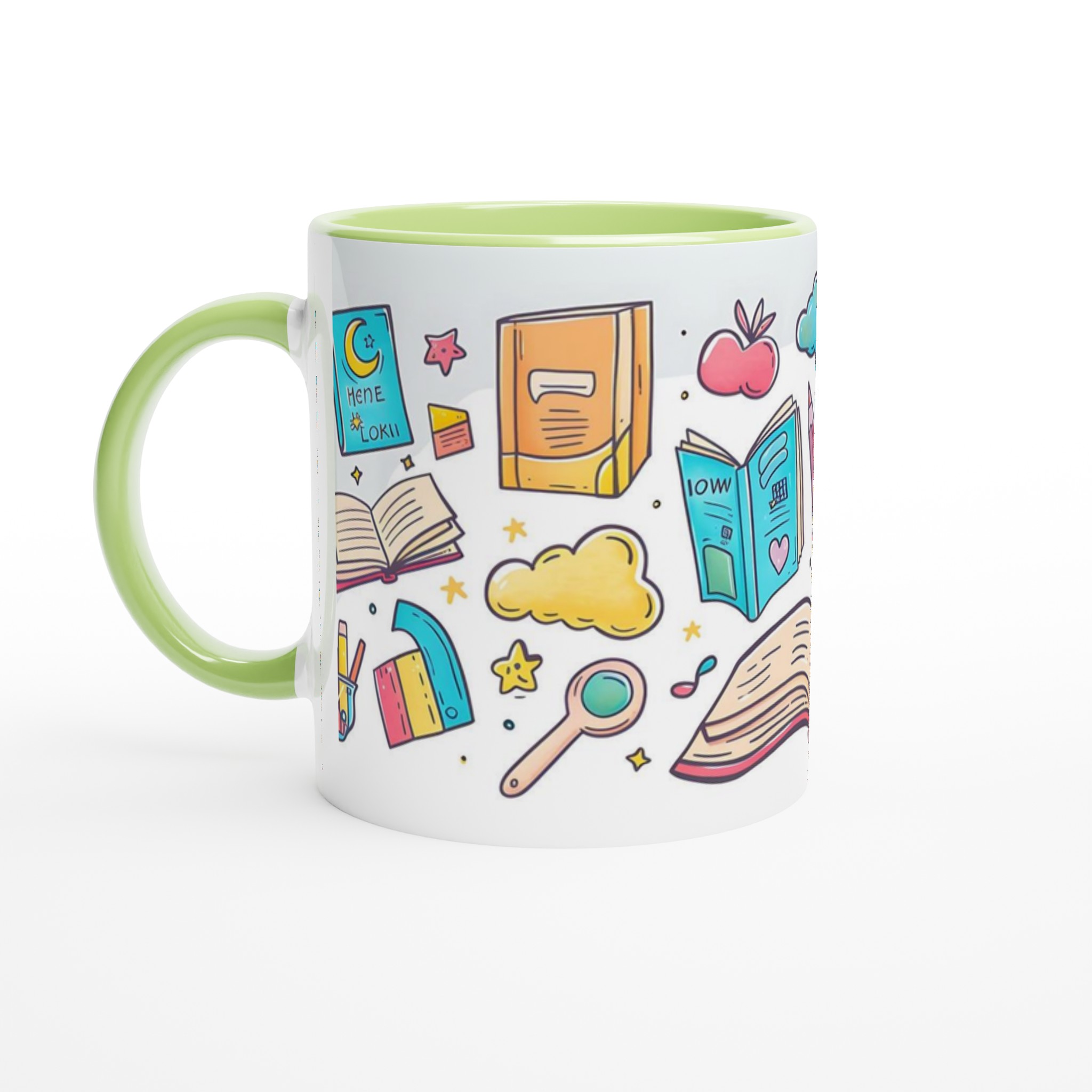 Väck din inre konstnär och drömmare med denna charmiga keramiska mugg, prydd med en lekfull illustration av böcker, pennor och stjärnor som lyfter fram fantasins kraft. Denna stilrena mugg blir snabbt en vardagsfavorit, perfekt för morgonkaffet, kvällens varma choklad eller när du bara vill njuta av en kopp te medan du förlorar dig i en god bok. Den blanka ytan gör att trycken framhävs med klara och levande färger, som håller sig fina även efter många turer i mikron och diskmaskinen.