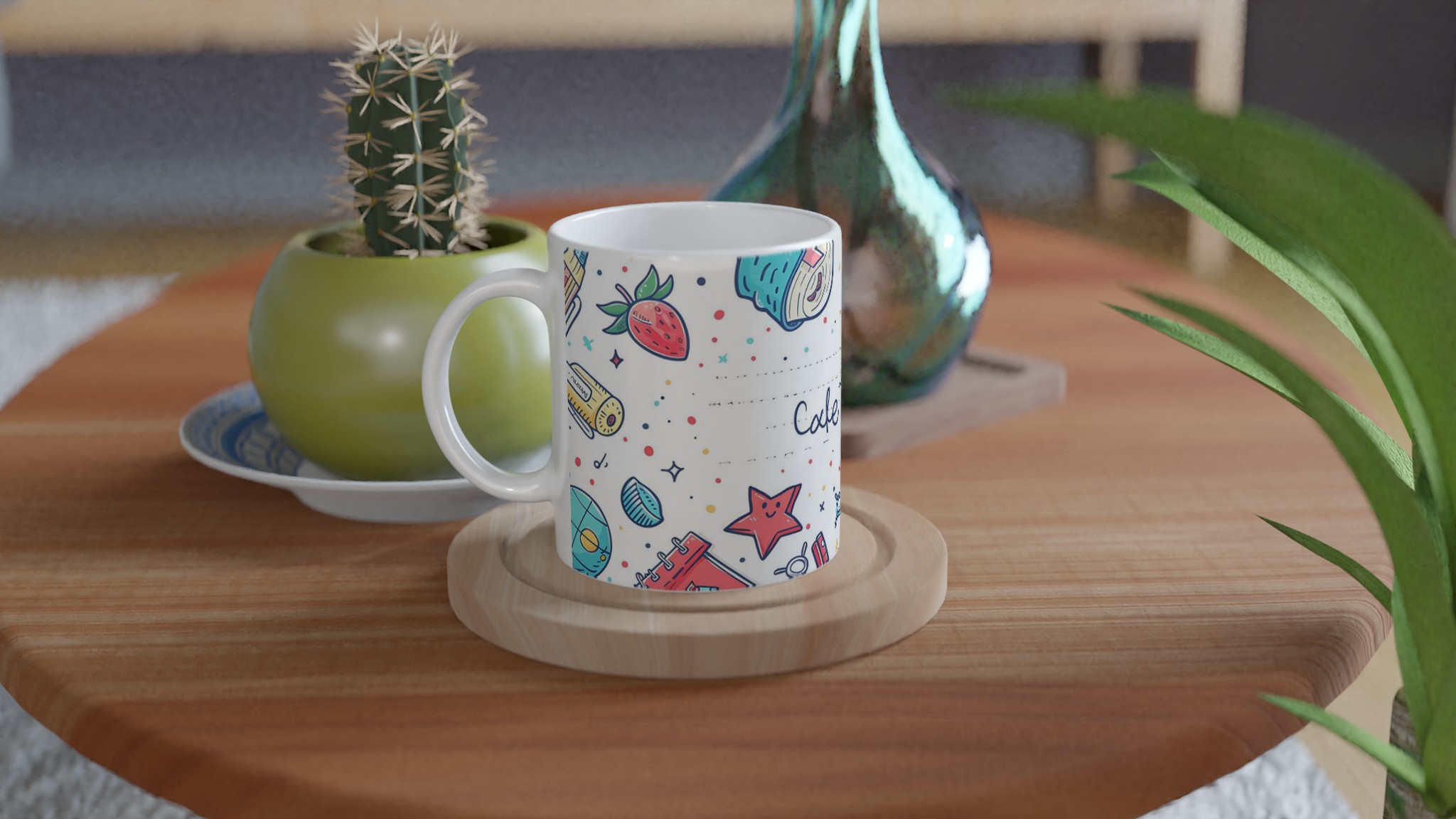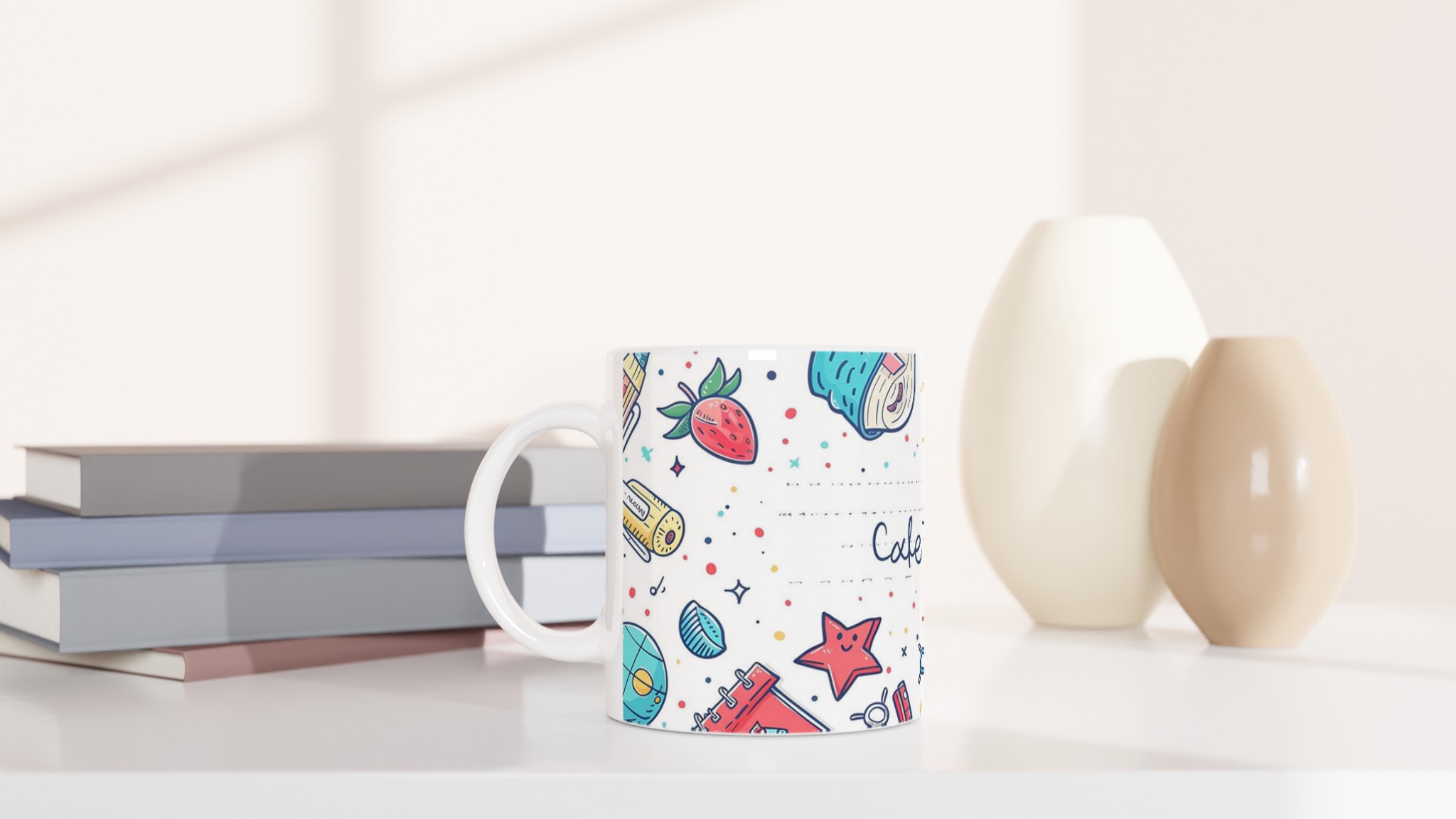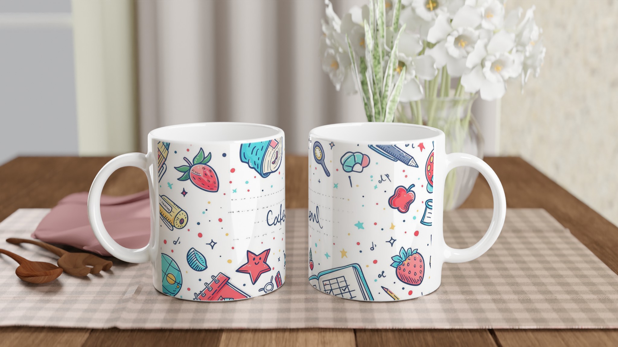 Den här stilrena keramiska muggen blir snabbt en vardagsfavorit. Perfekt för morgonkaffet, kvällens varma choklad eller när du bara vill njuta av en kopp te. Den blanka vita ytan gör att trycken framhävs med klara och levande färger, som håller sig fina även efter många turer i mikron och diskmaskinen.