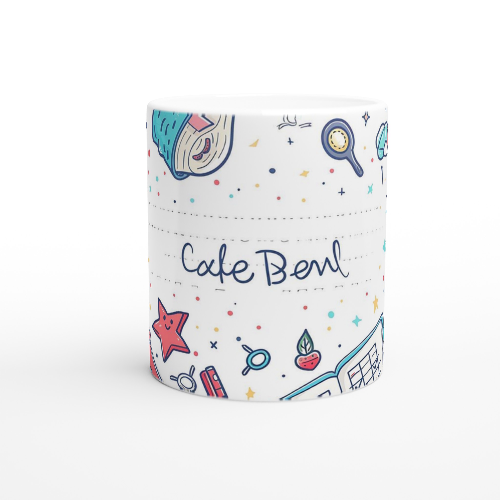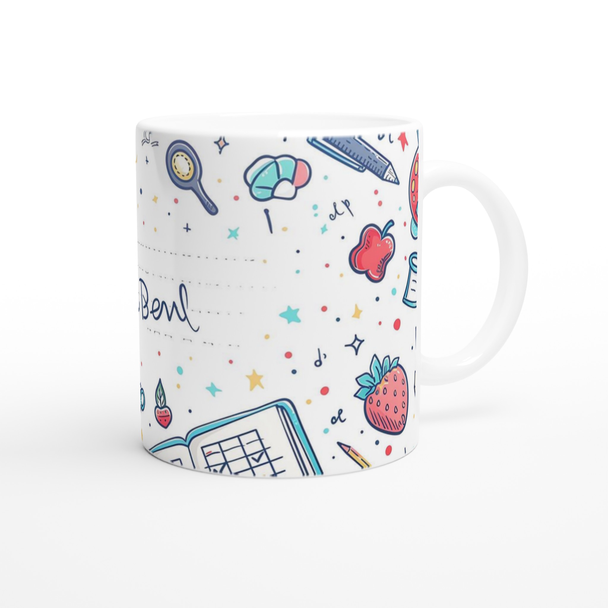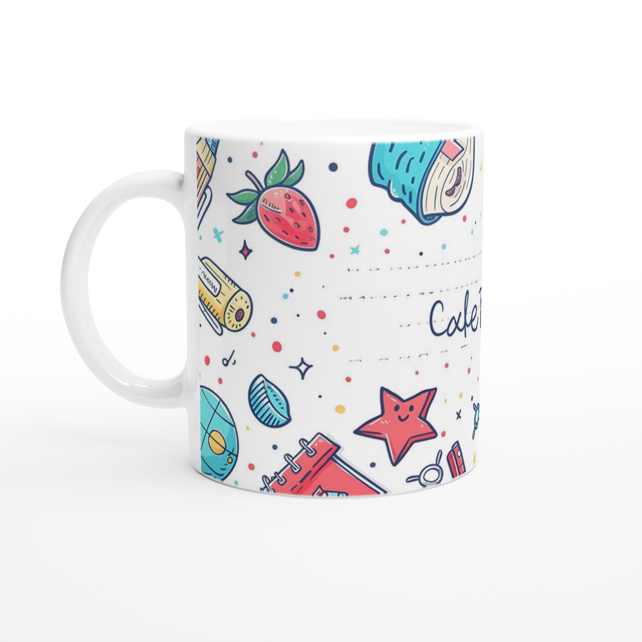 Den här stilrena keramiska muggen blir snabbt en vardagsfavorit. Perfekt för morgonkaffet, kvällens varma choklad eller när du bara vill njuta av en kopp te. Den blanka vita ytan gör att trycken framhävs med klara och levande färger, som håller sig fina även efter många turer i mikron och diskmaskinen.
