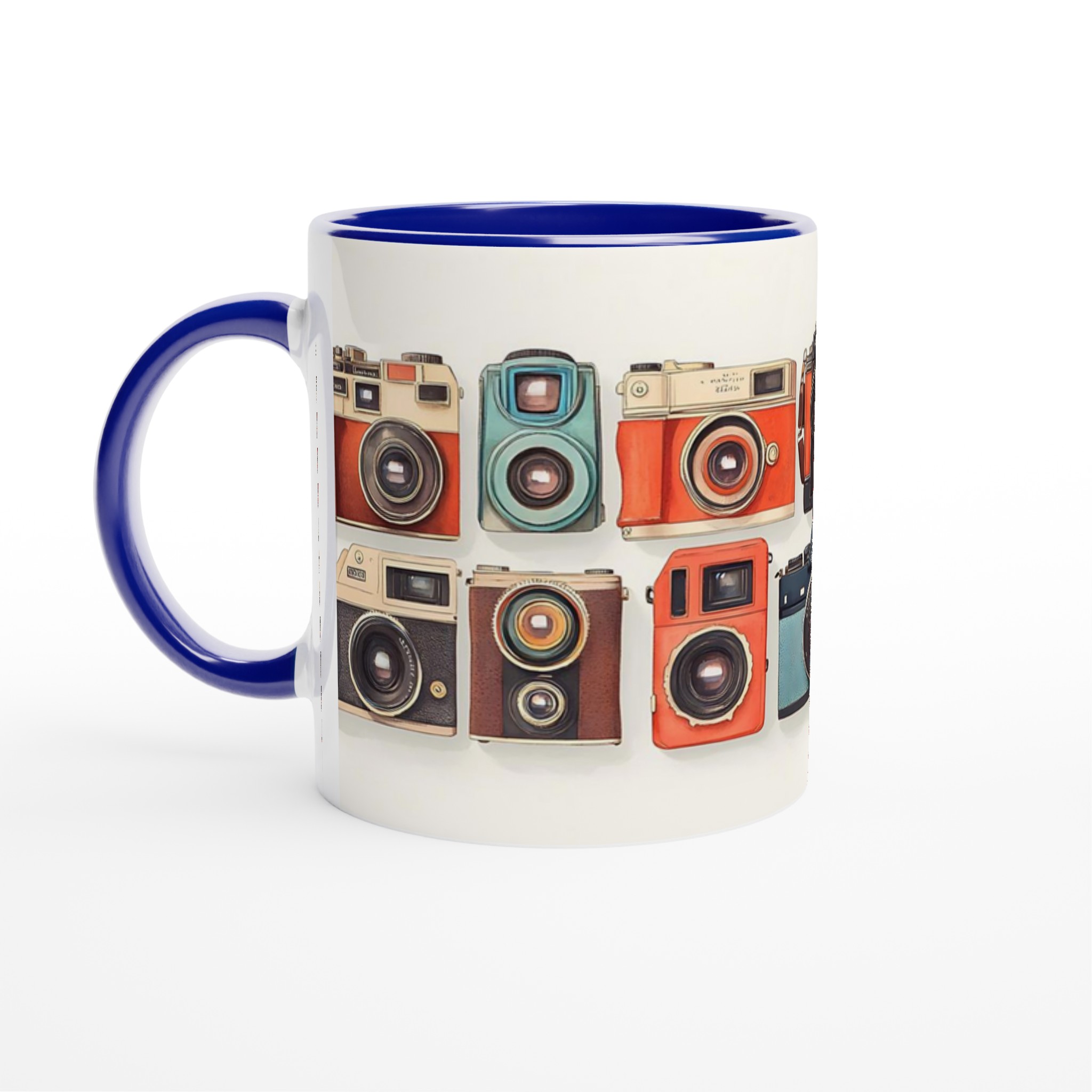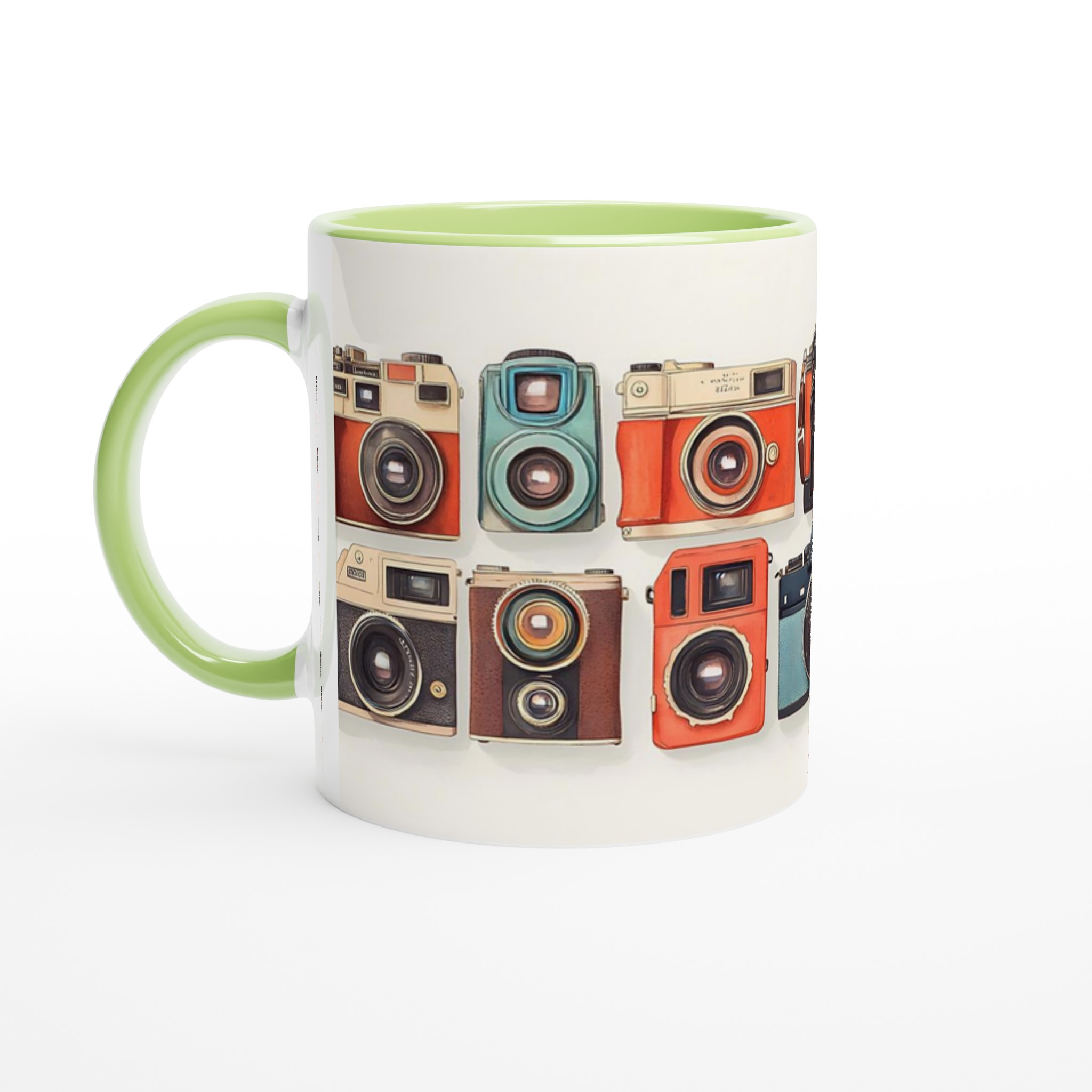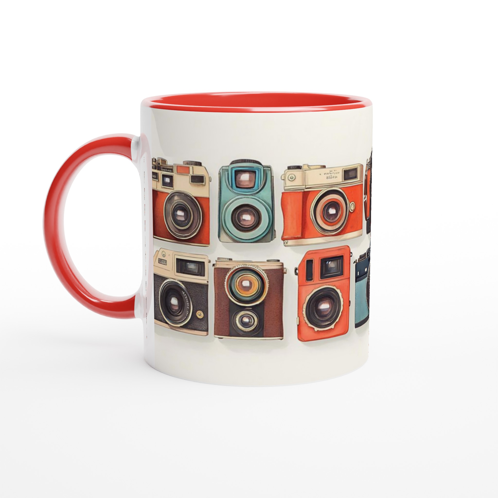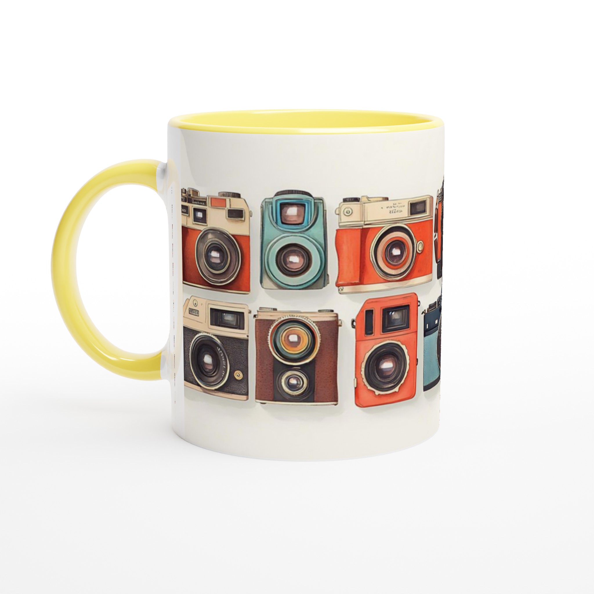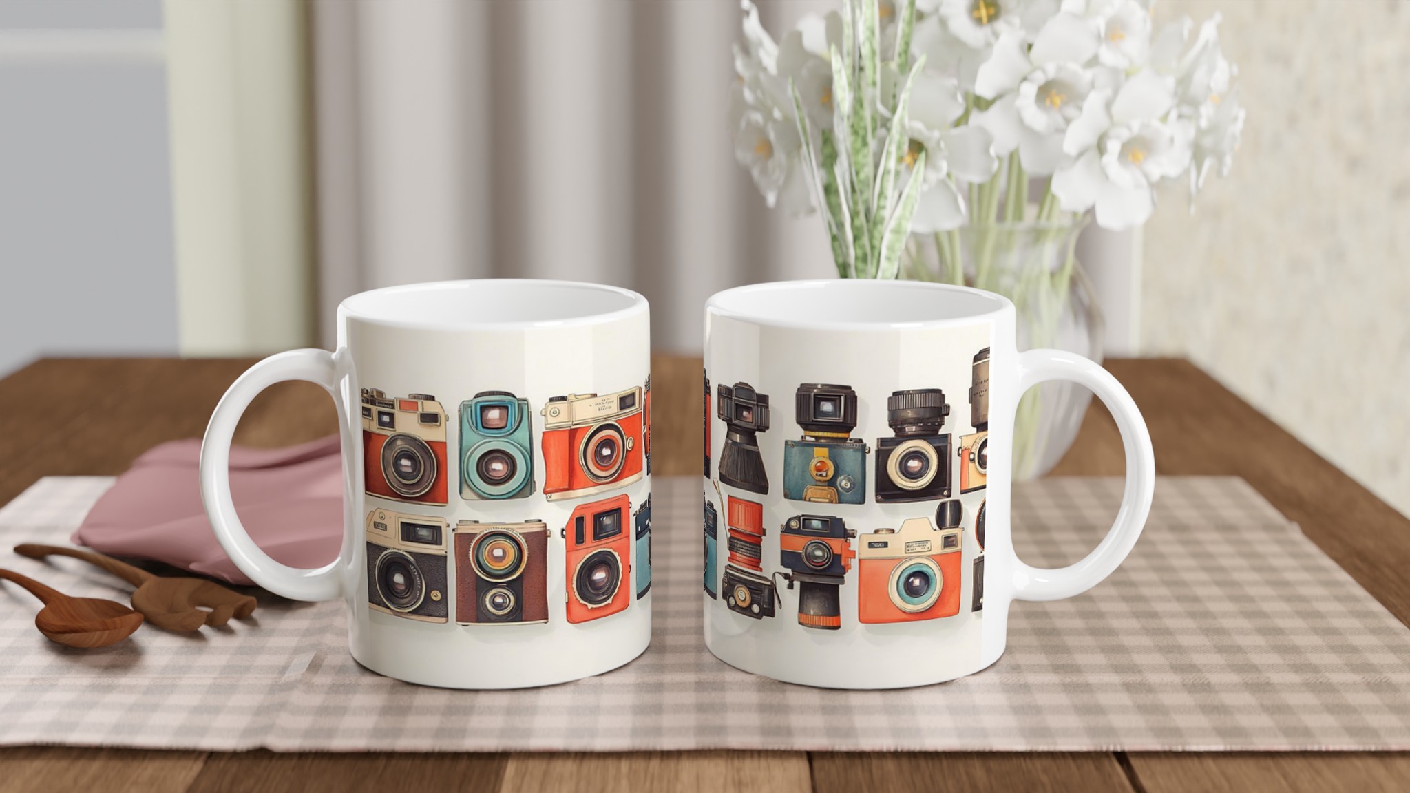 Den här stilrena keramiska muggen blir snabbt en vardagsfavorit. Perfekt för morgonkaffet, kvällens varma choklad eller när du bara vill njuta av en kopp te. Med sitt charmiga retrokamera-motiv, i en palett av livfulla färger, är denna mugg mer än bara en kopp – den är en hyllning till den tidlösa konsten att fånga ögonblick. Den blanka vita ytan gör att trycken framhävs med klara och levande färger, som håller sig fina även efter många turer i mikron och diskmaskinen.