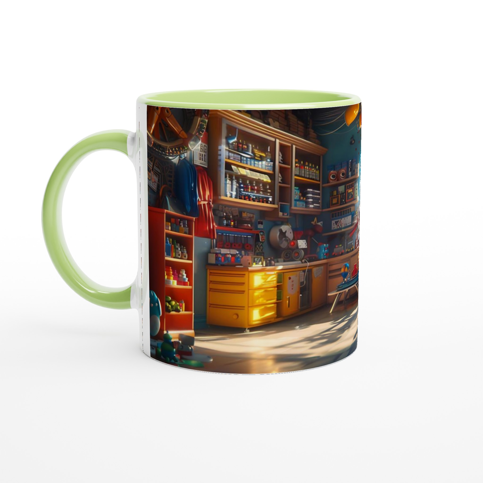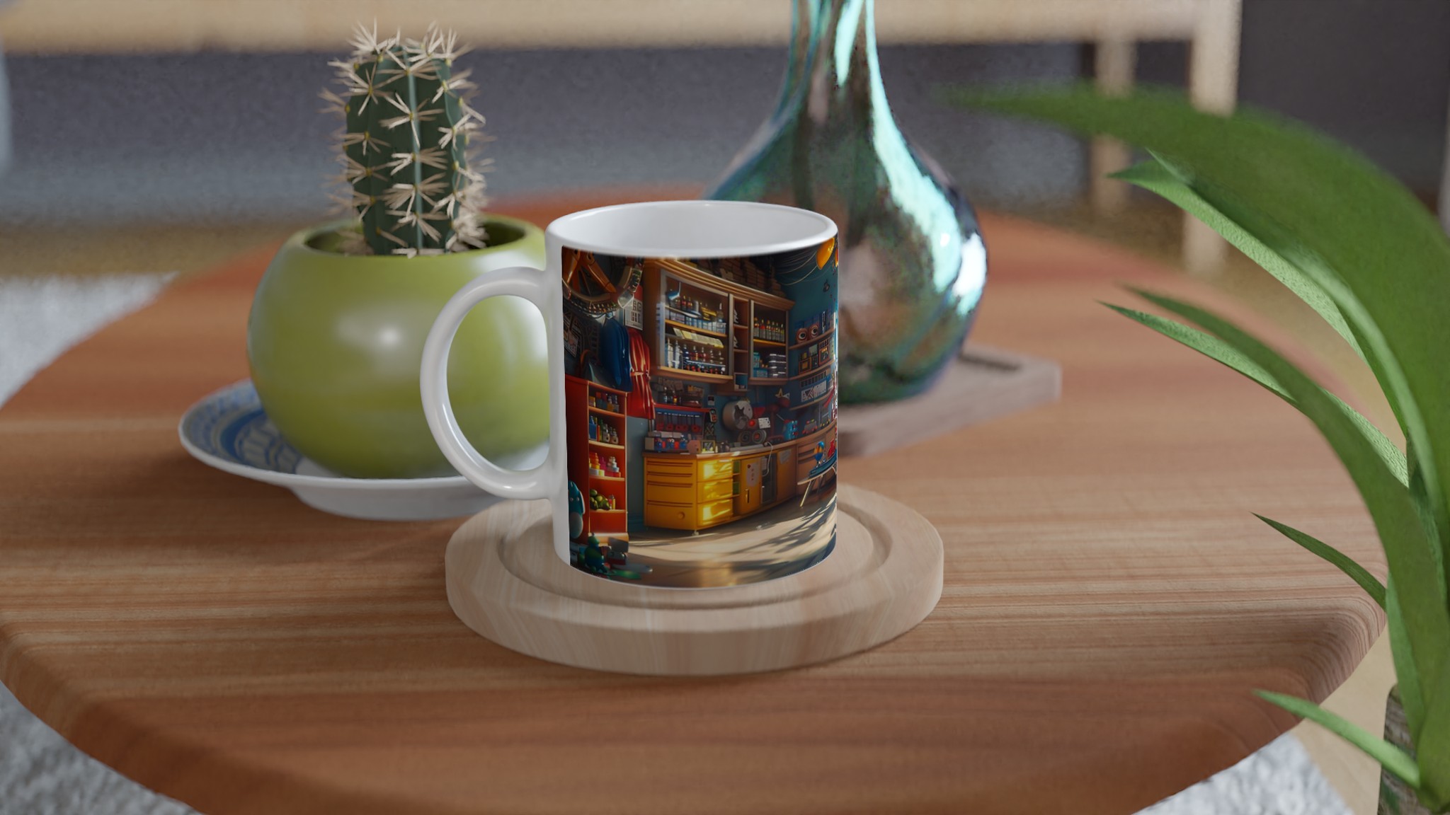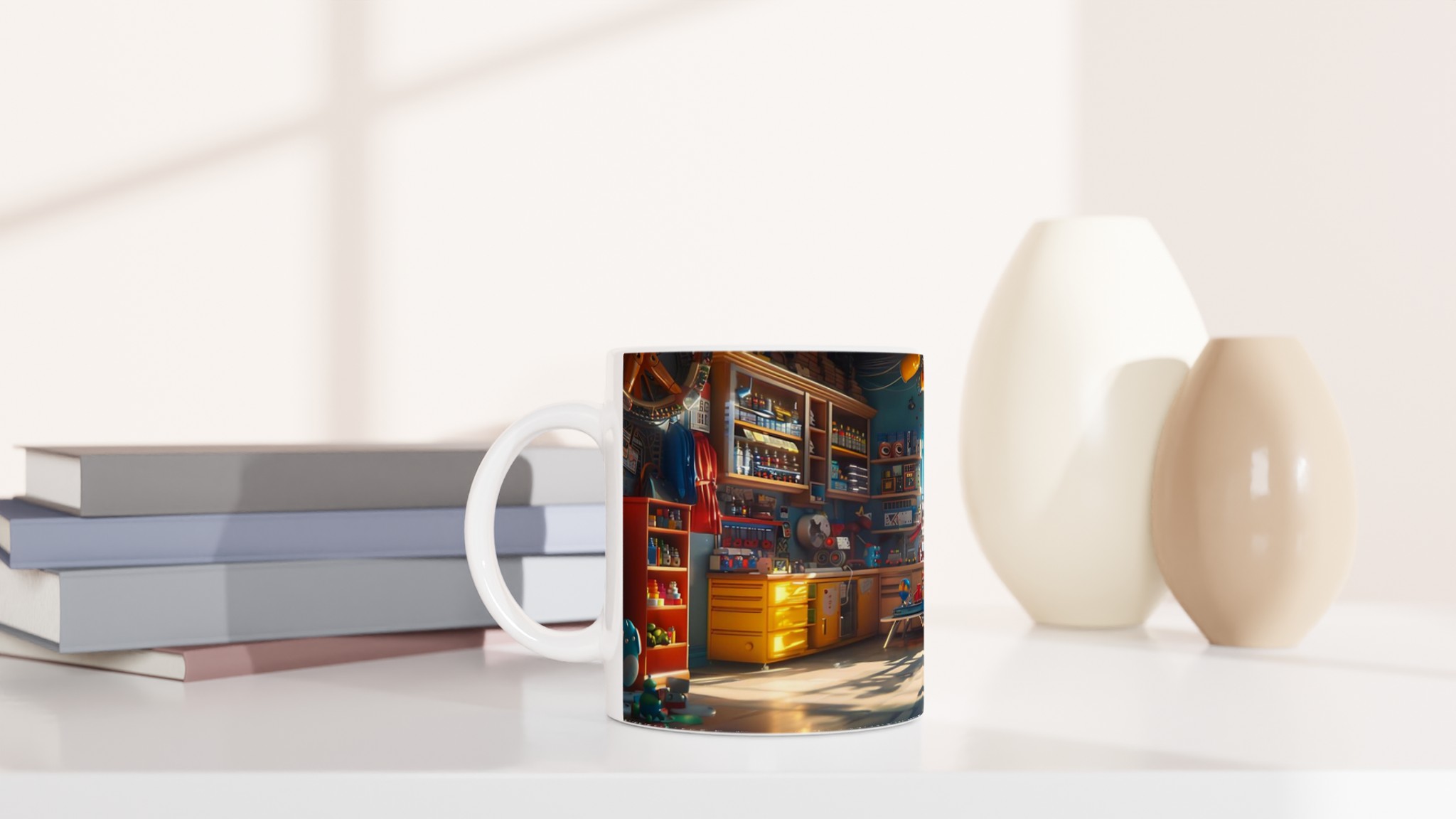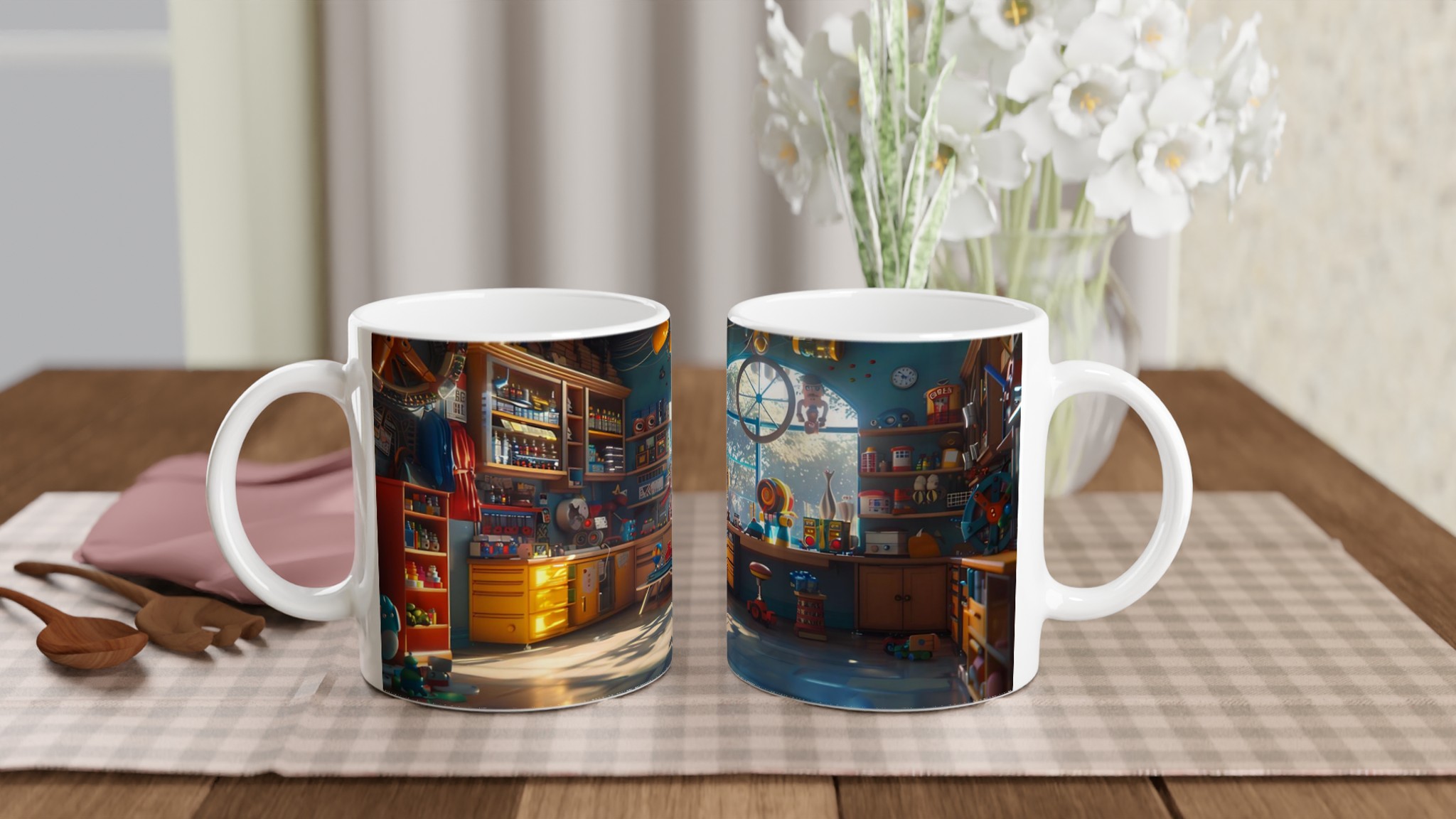 Väck din inre uppfinnare med vår Keramiska Mugg i Kreativ Verkstad-design! Inspirerad av en fantasifull och färgsprakande ateljé, blir den här stilrena muggen snabbt en vardagsfavorit. Perfekt för morgonkaffet, kvällens varma choklad eller när du bara vill njuta av en kopp te. Den blanka vita ytan gör att trycken framhävs med klara och levande färger, som håller sig fina även efter många turer i mikron och diskmaskinen.