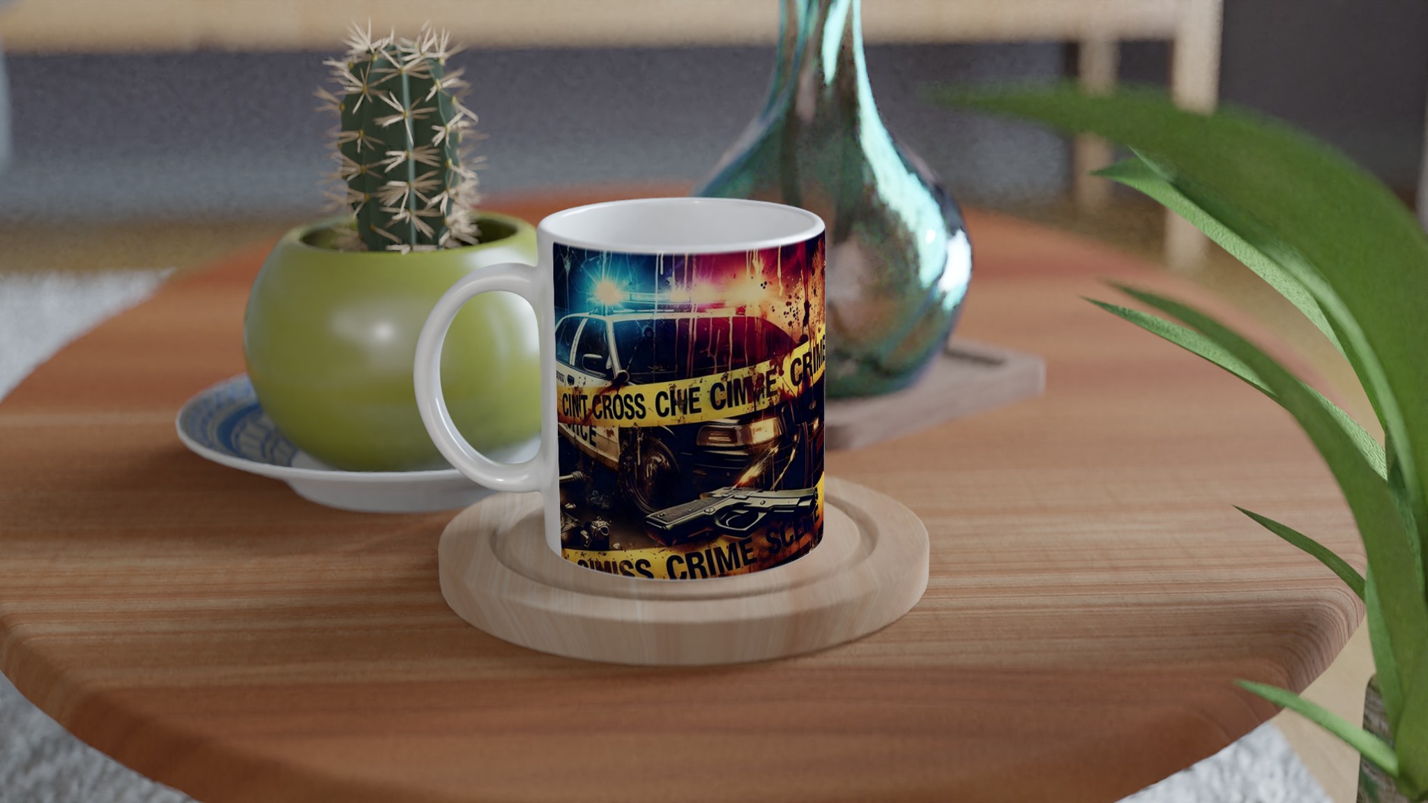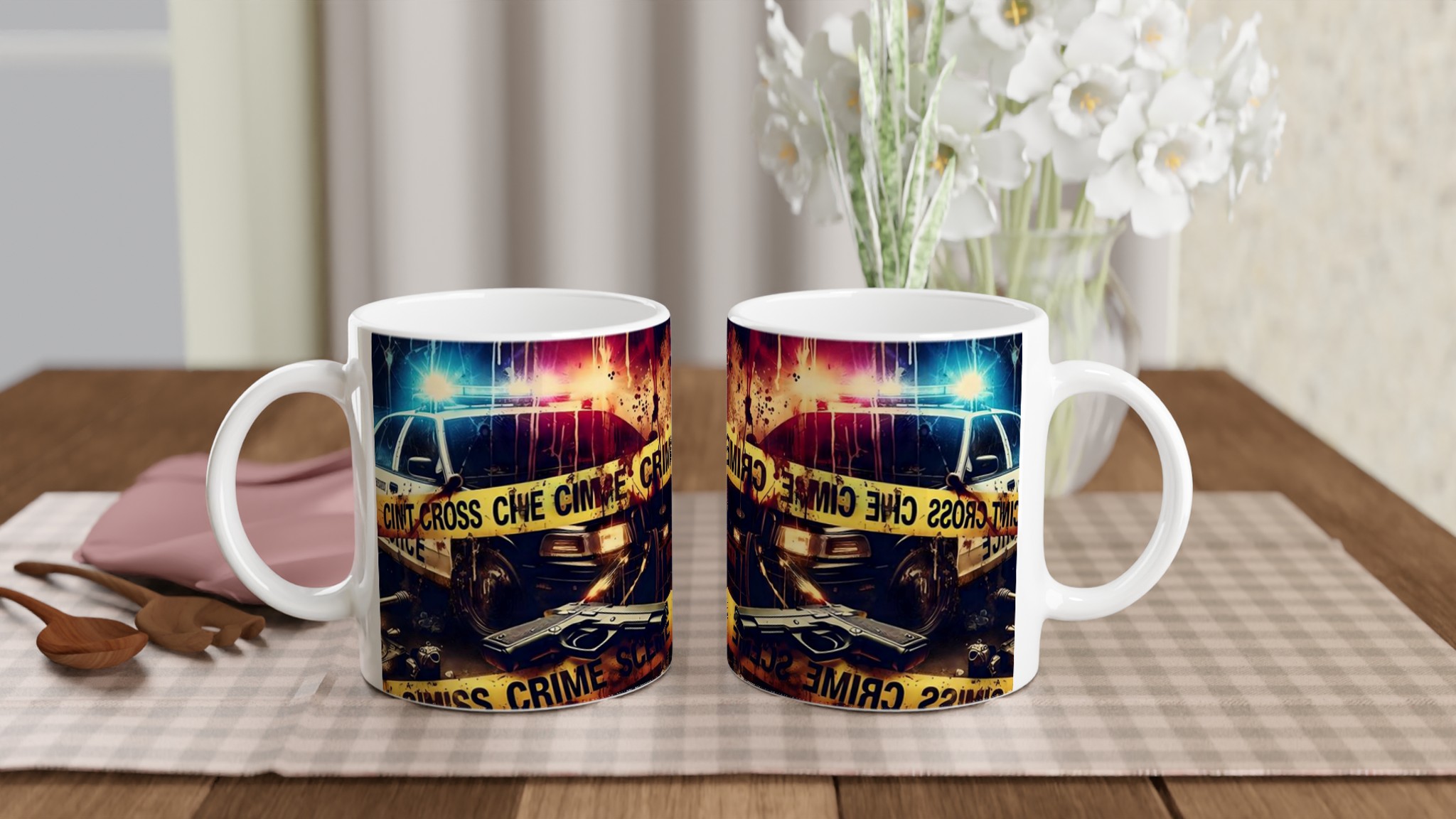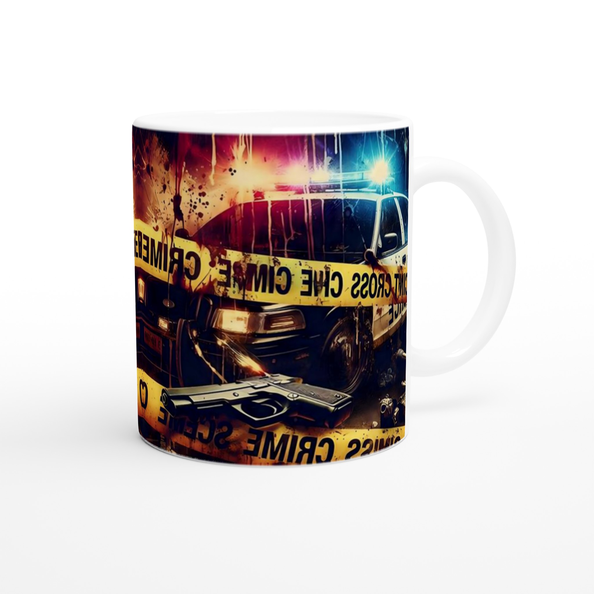 Sätt spänning i din vardag med denna unika keramiska mugg, som fångar den dramatiska atmosfären av en brottsplats med polisbilar, vapen och ”CRIME SCENE”-band. Denna stilrena mugg blir snabbt en favorit, perfekt för morgonkaffet, kvällens varma choklad, eller när du bara vill njuta av en kopp te med en nervkittlande touch.