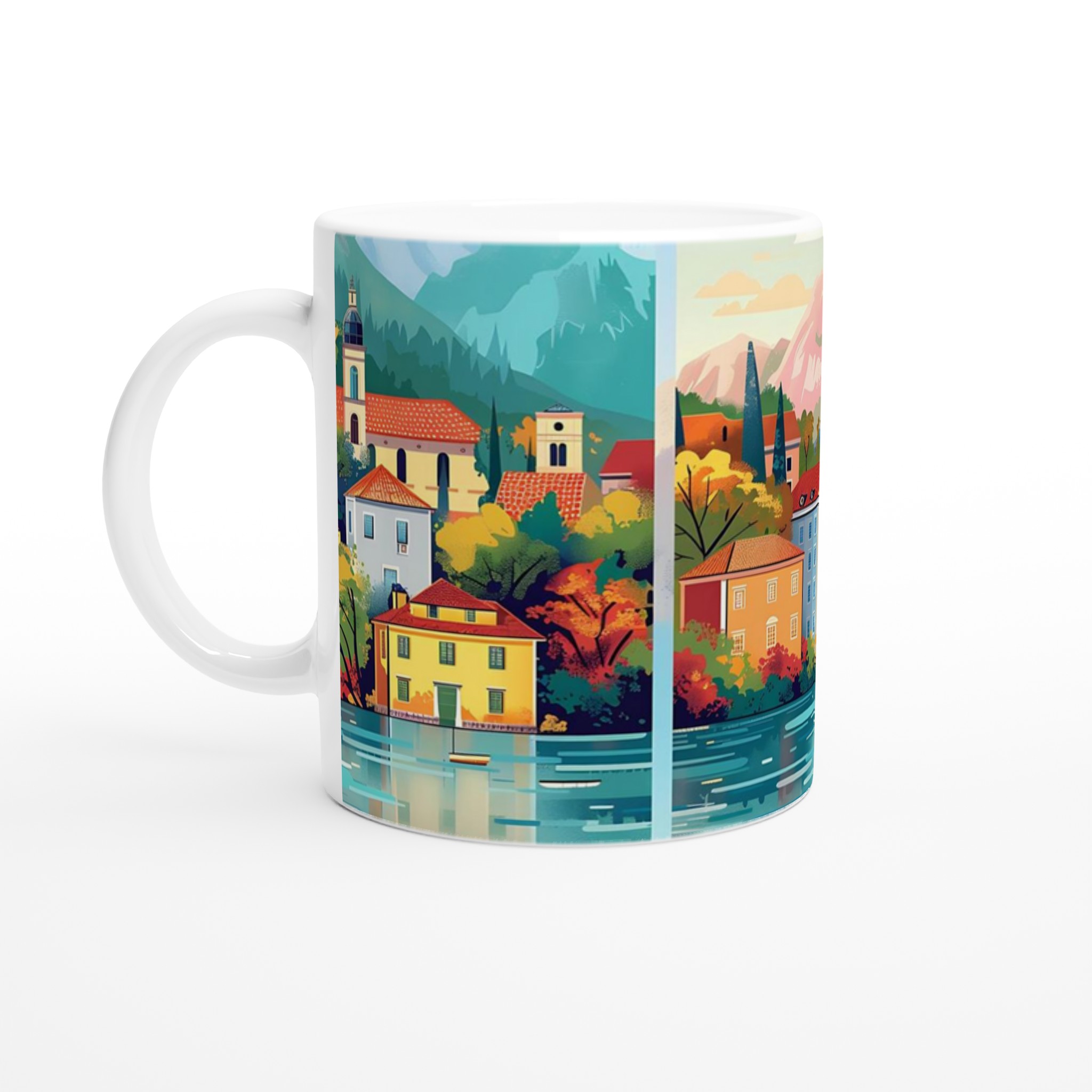 Inspirerad av de pittoreska kuststädernas tidlösa charm, med dess färgglada hus, grönskande träd och fridfulla vatten, förvandlar denna mugg varje sipp till en konstnärlig upplevelse. Den blanka vita ytan ger ett skarpt och levande tryck som verkligen sticker ut, oavsett om det är en personlig design, ett roligt citat eller en present till någon du tycker om.